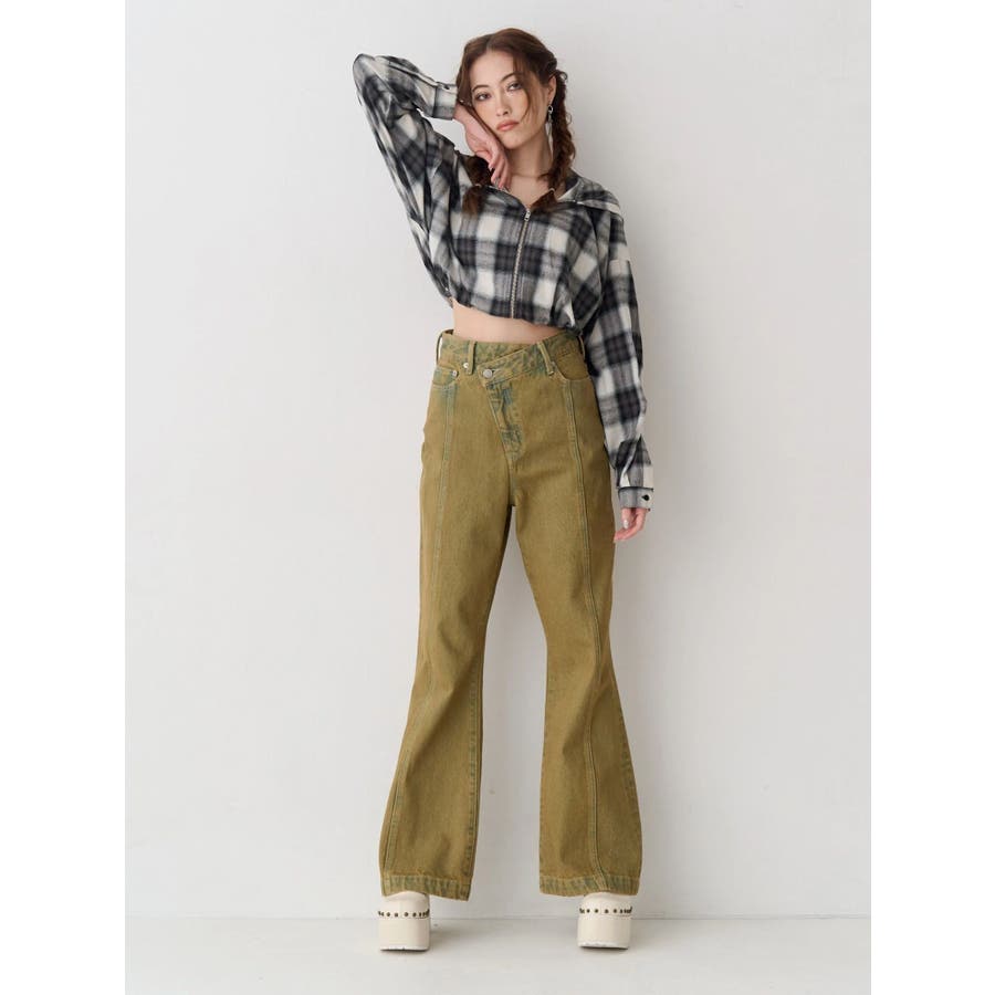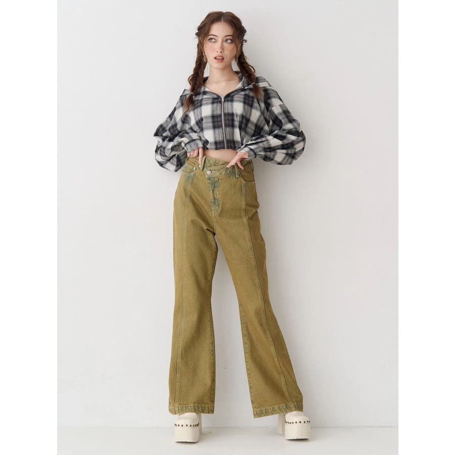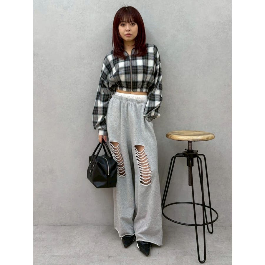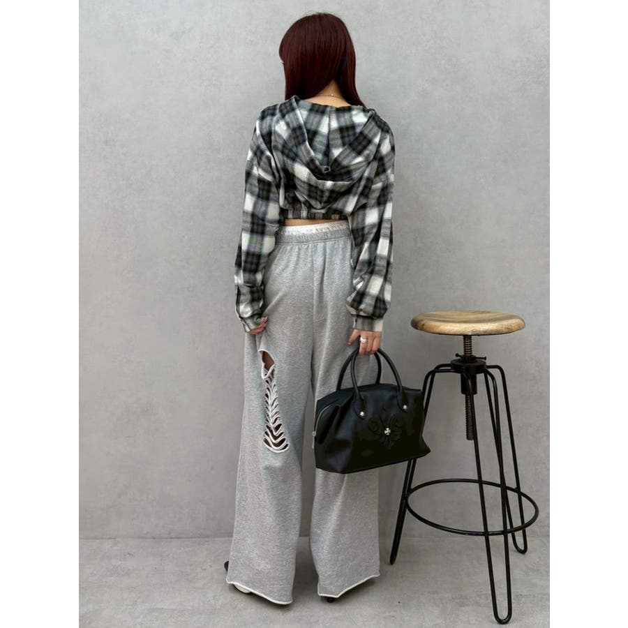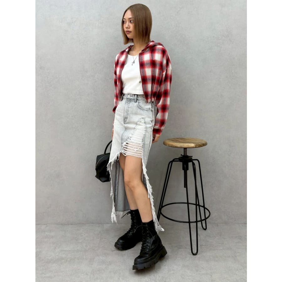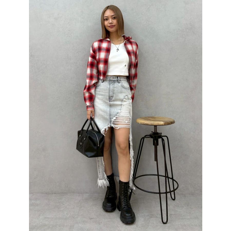薄っすらとした水色が入ったチェックカラーが可愛いオンブレチェックのフード付きショートシャツです。裾が絞られたメリハリのあるデザインで、EVRIS(エヴリス)で人気のワイドデニム合わせがおすすめです。ジップアップなので、羽織としても着用できます。