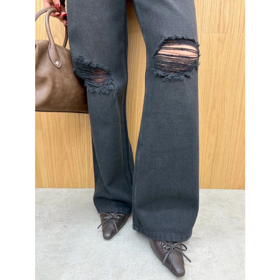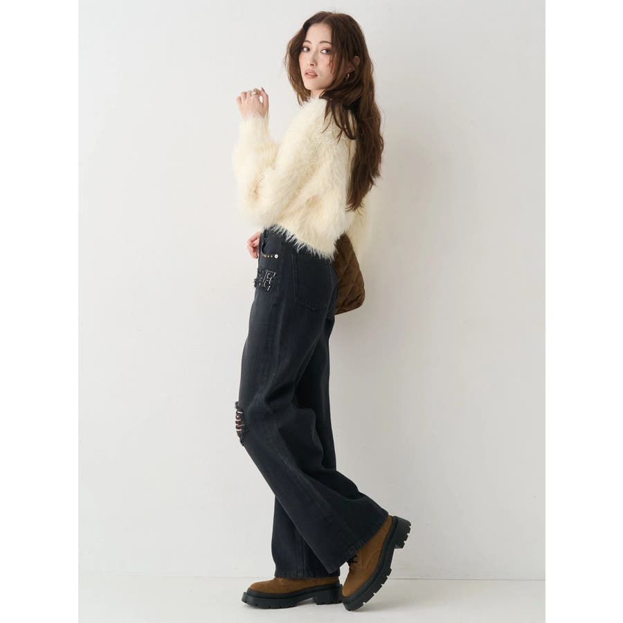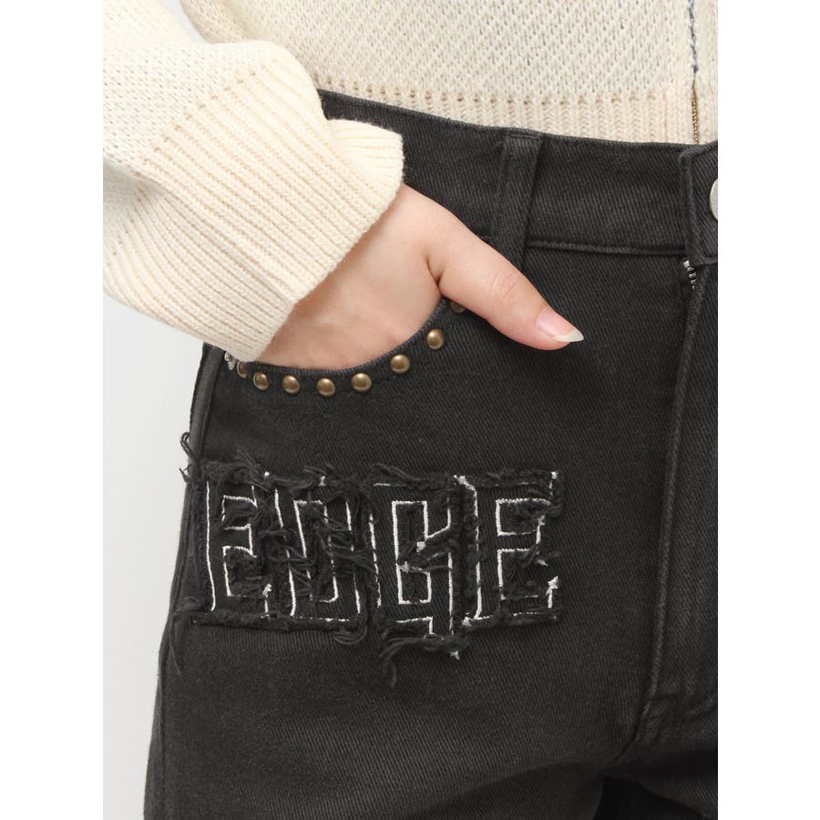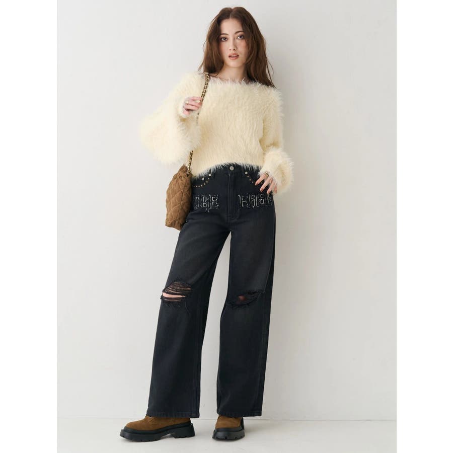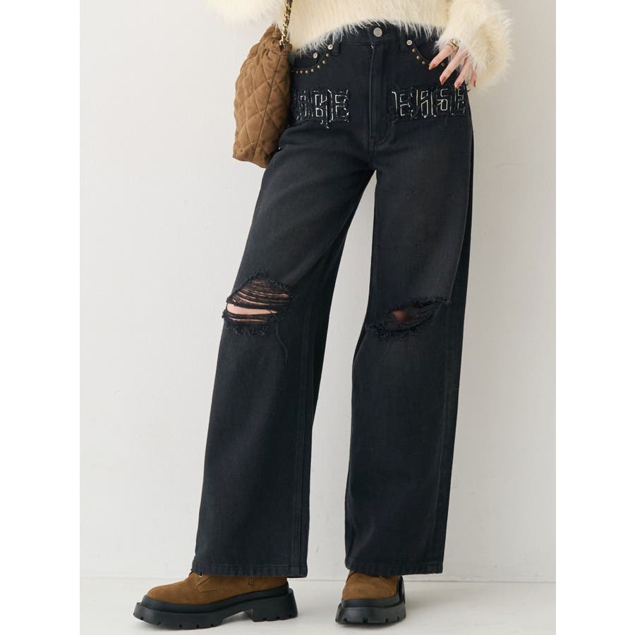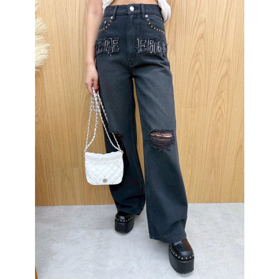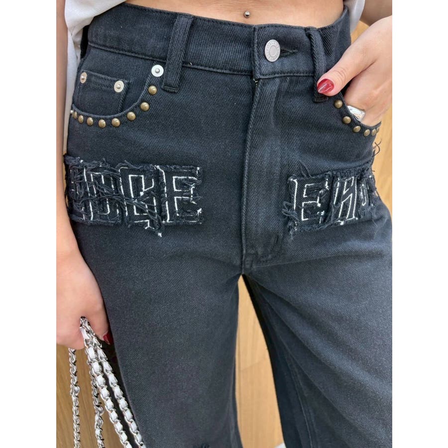 ダメージやフリンジ、スタッズでよりカジュアルな印象に仕上がっています。