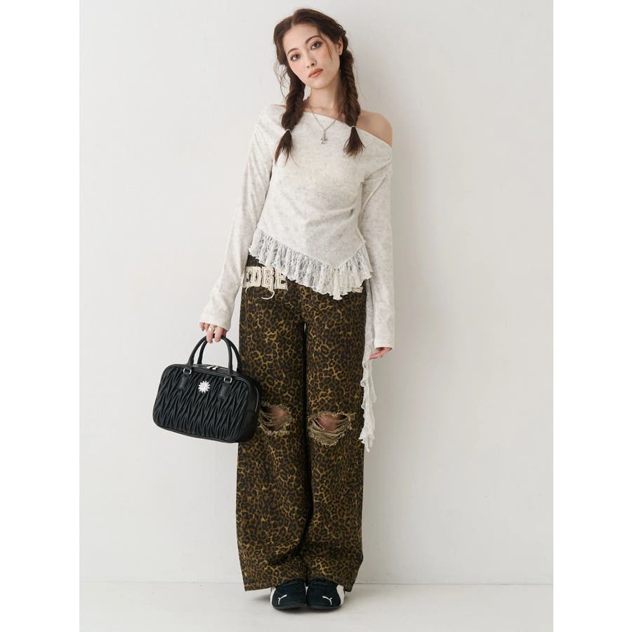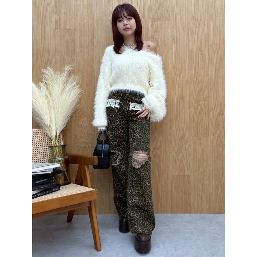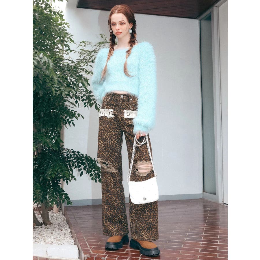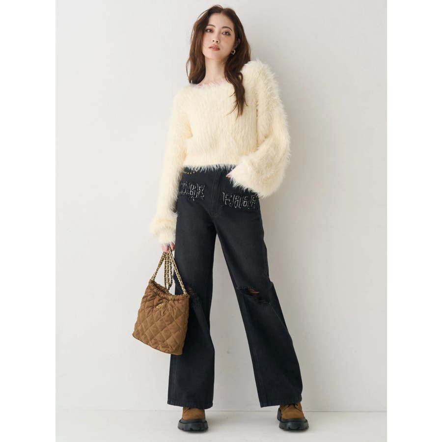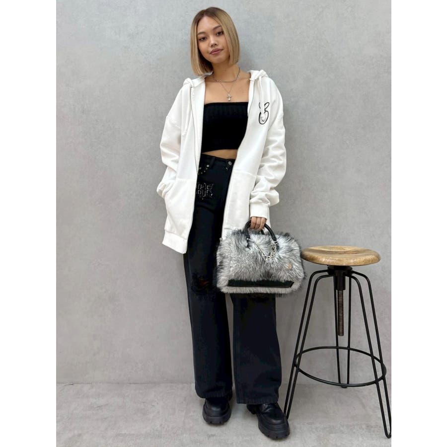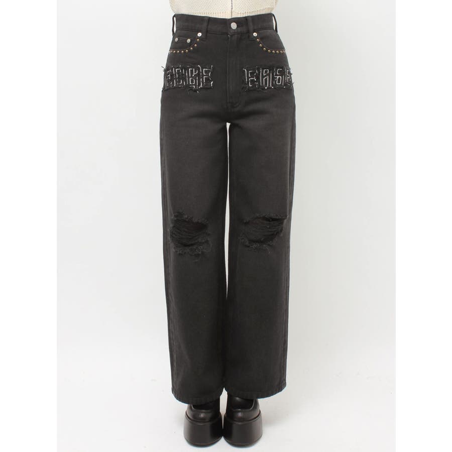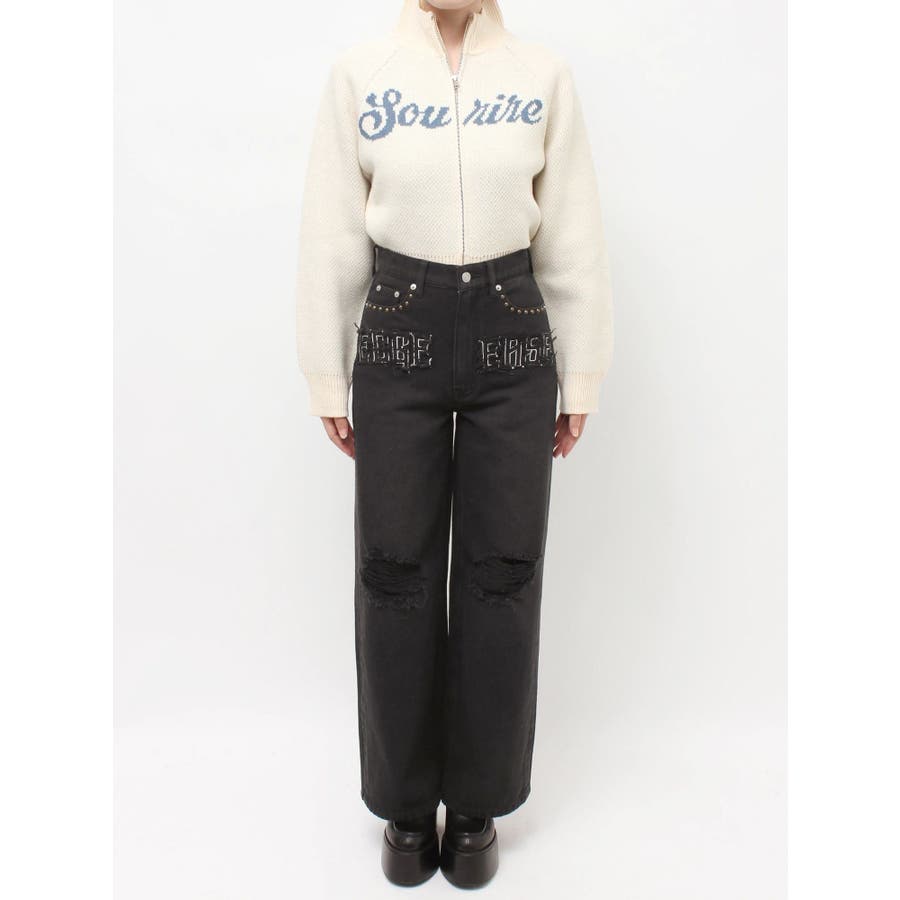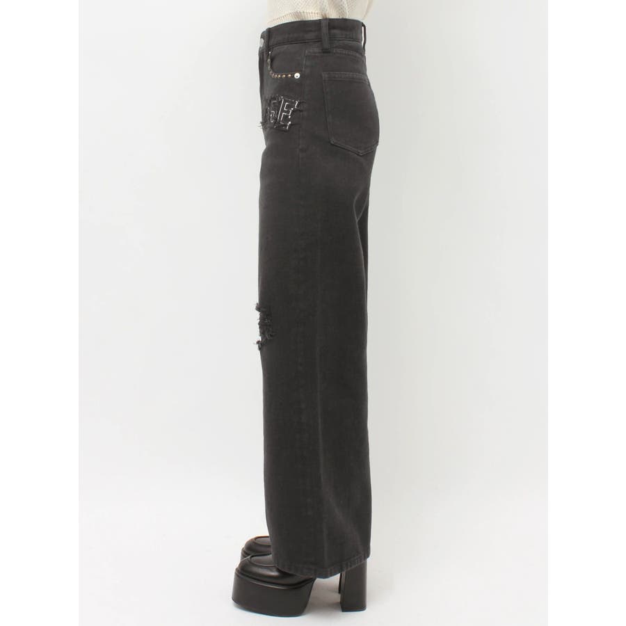 ダメージやフリンジ、スタッズでよりカジュアルな印象に仕上がっています。