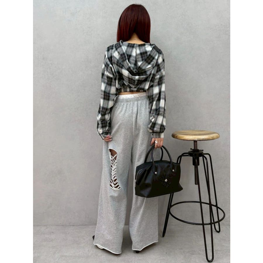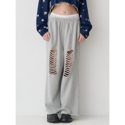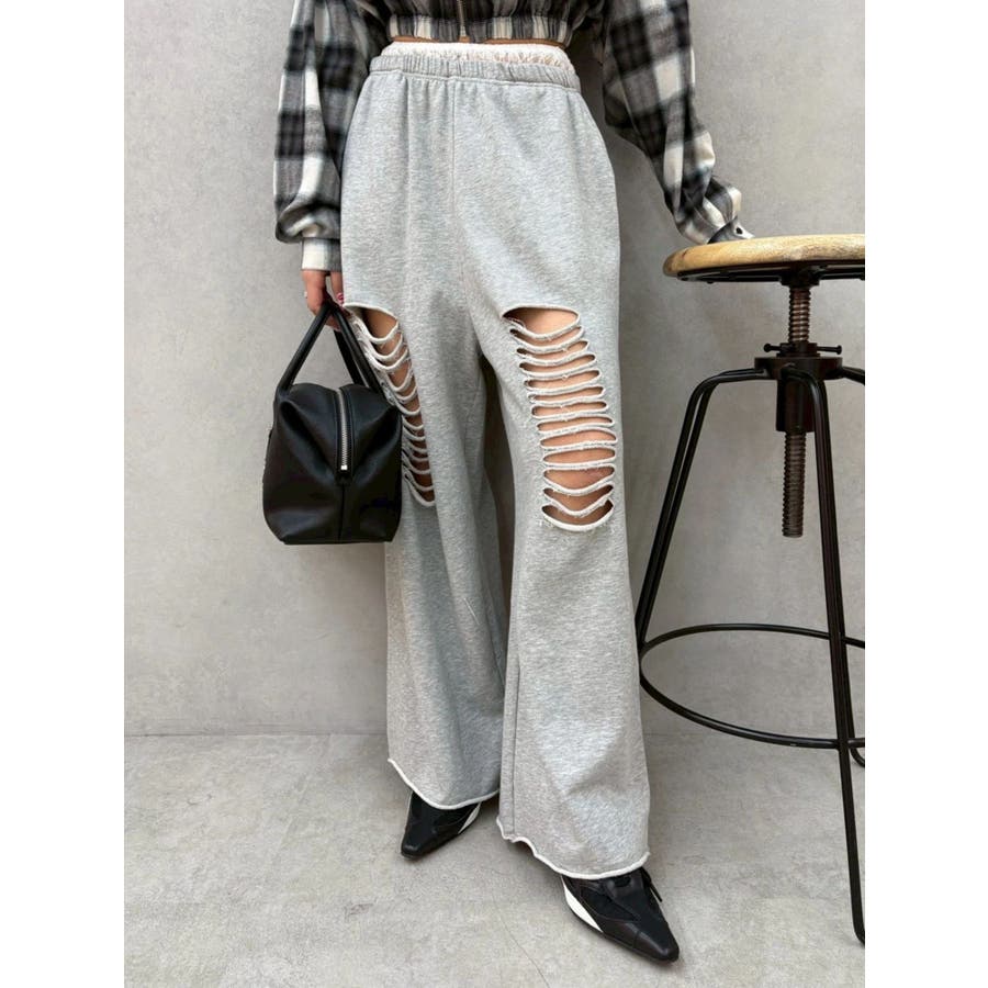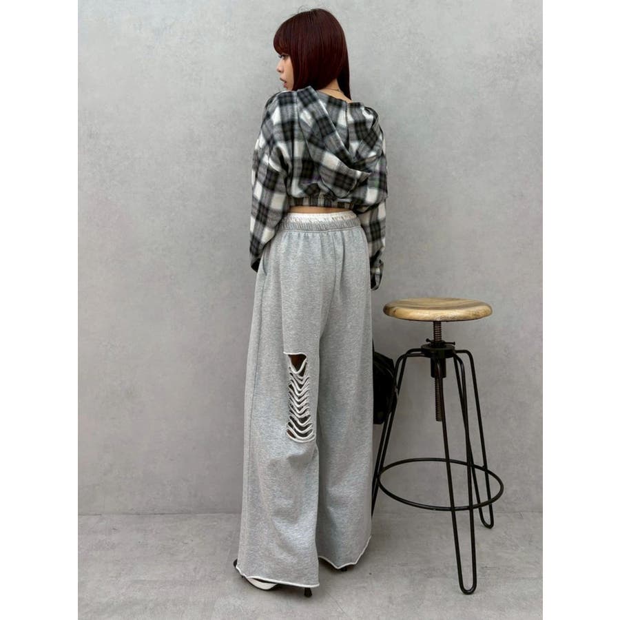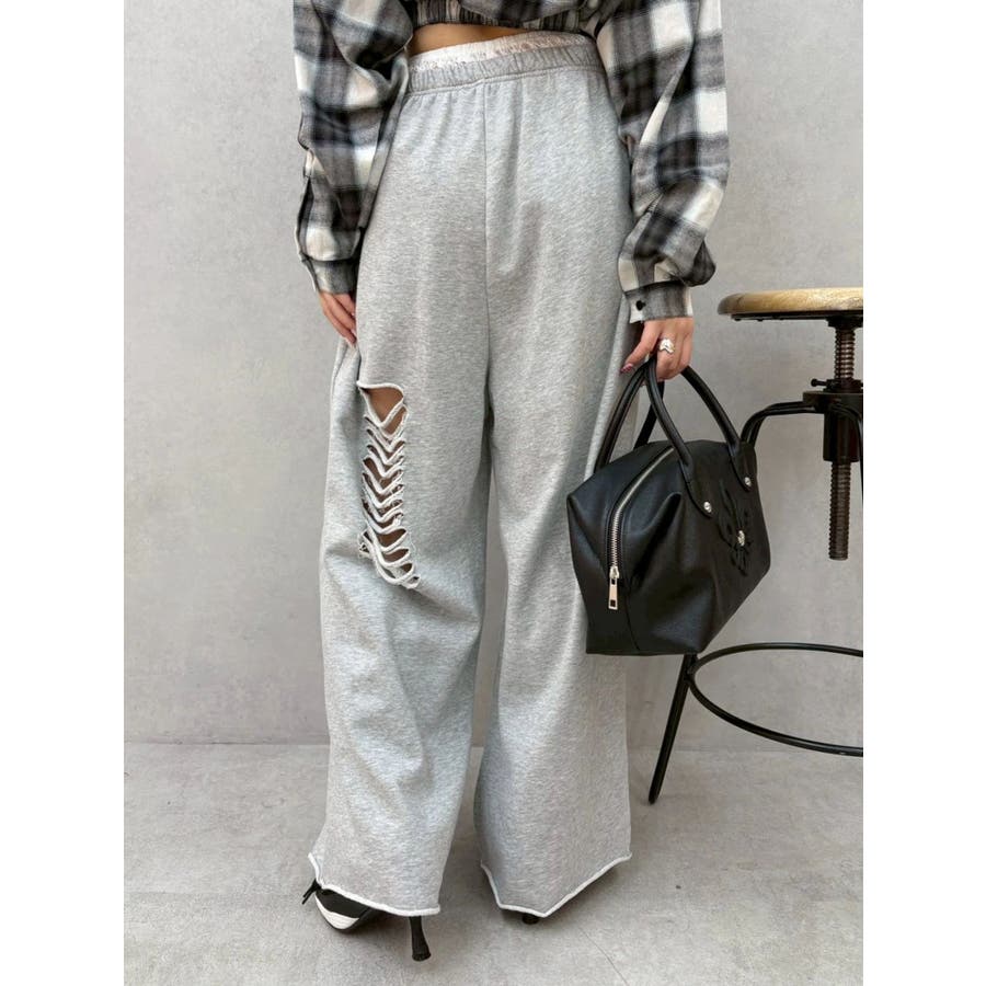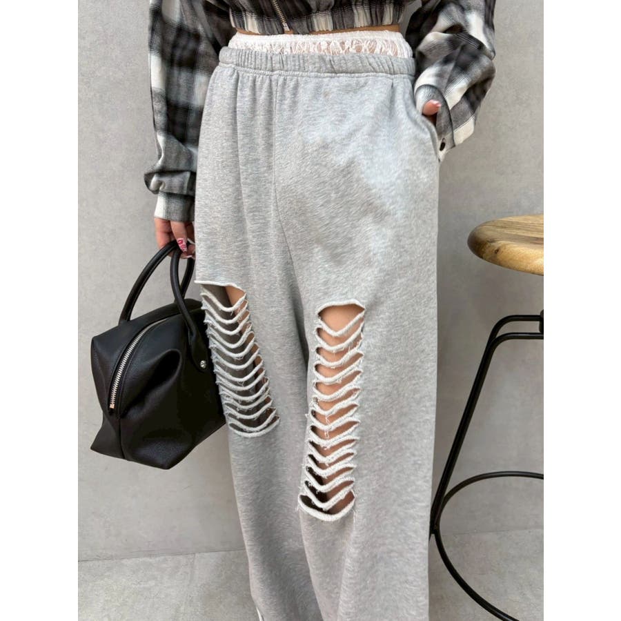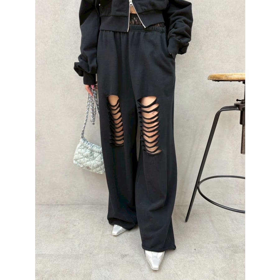 レースドッキングダメージスウェットワイドパンツ【セットアップ着用可能】