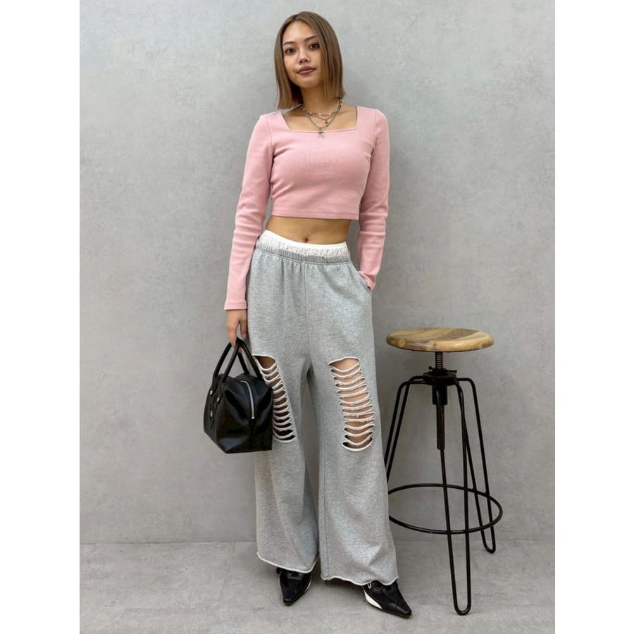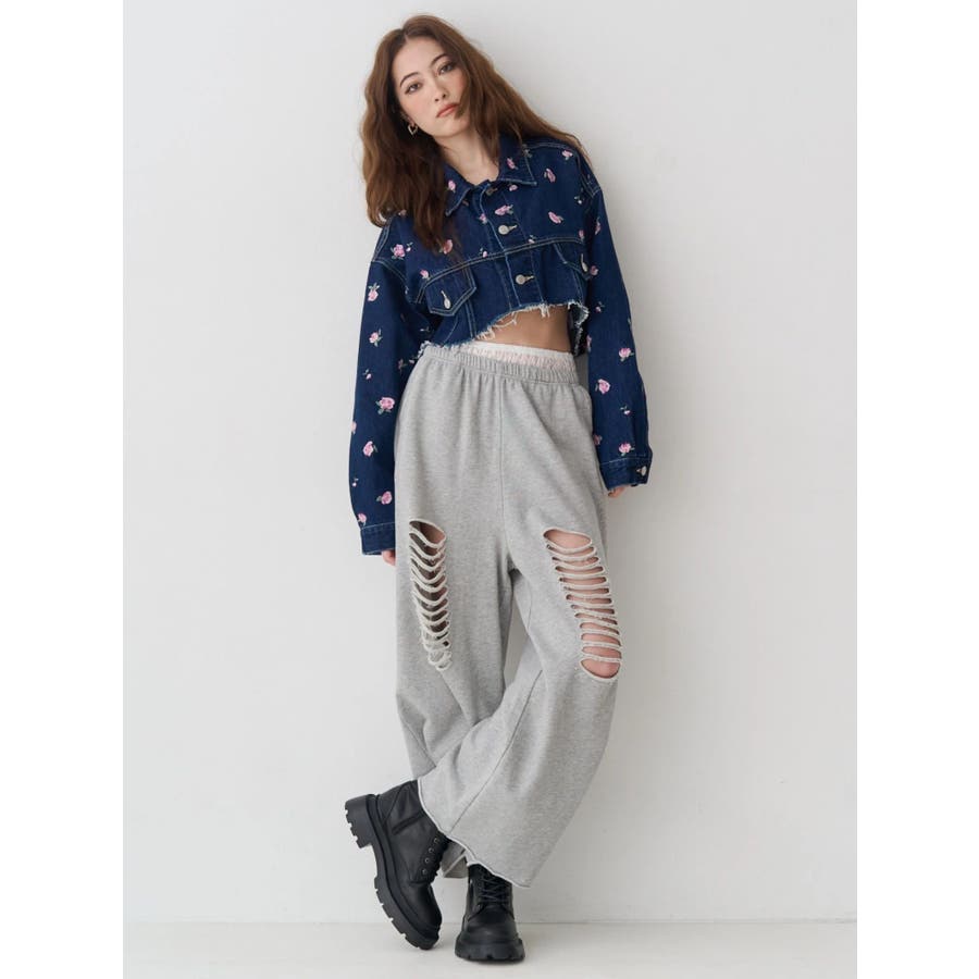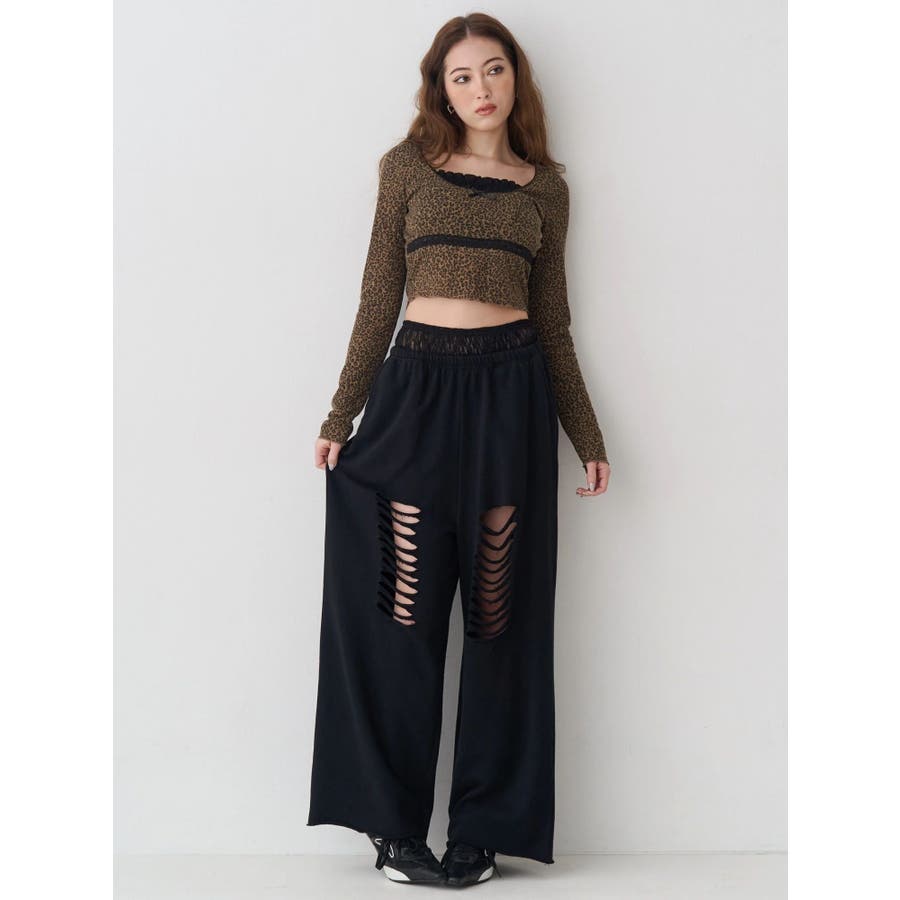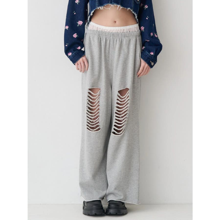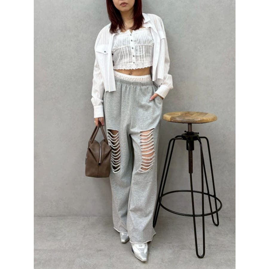 レースドッキングダメージスウェットワイドパンツ【セットアップ着用可能】