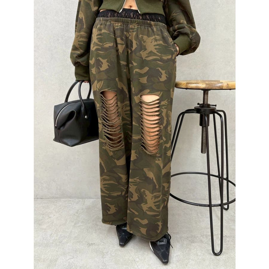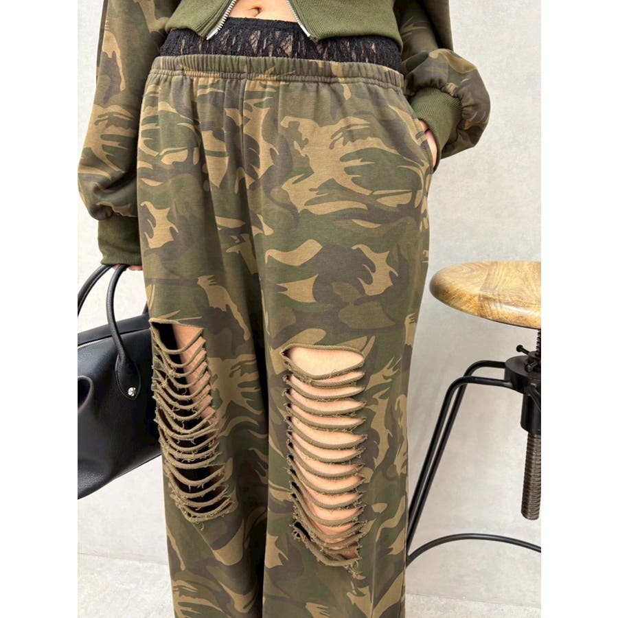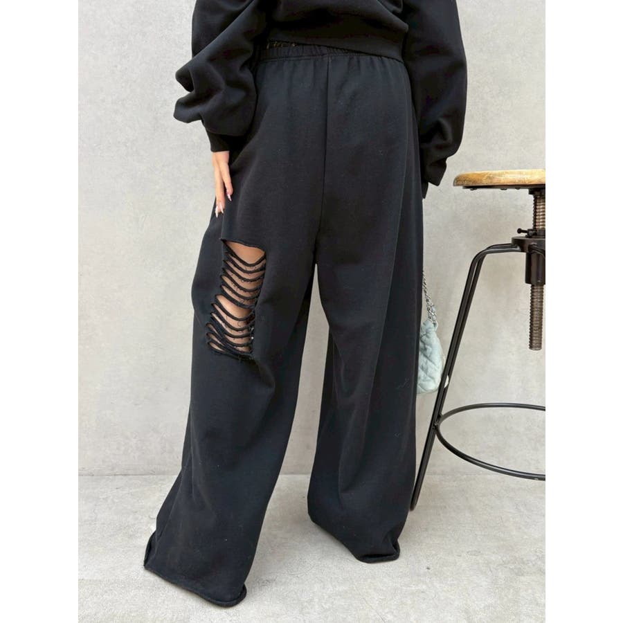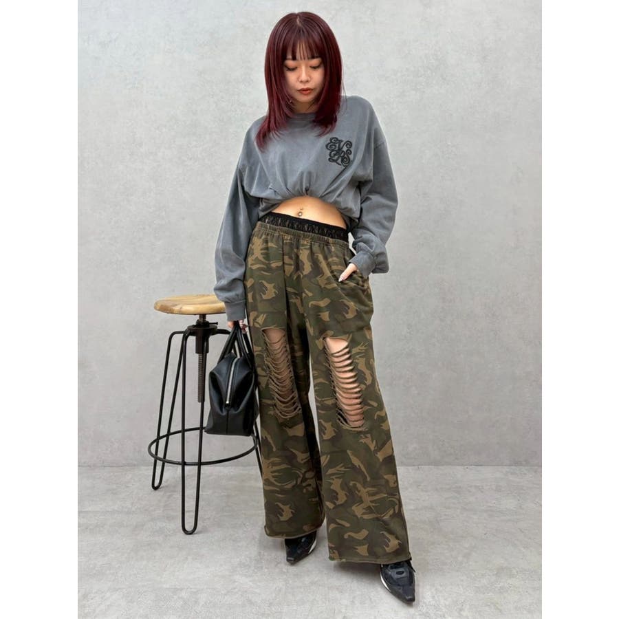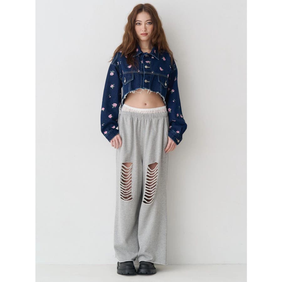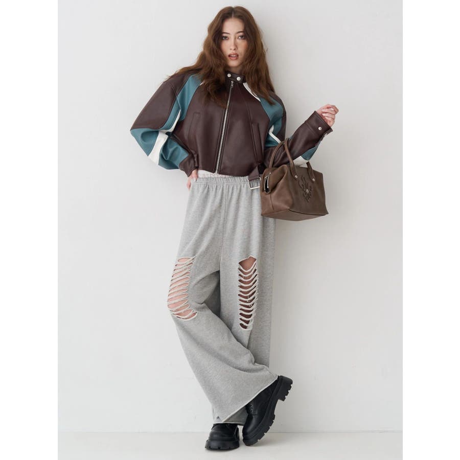 レースドッキングダメージスウェットワイドパンツ【セットアップ着用可能】