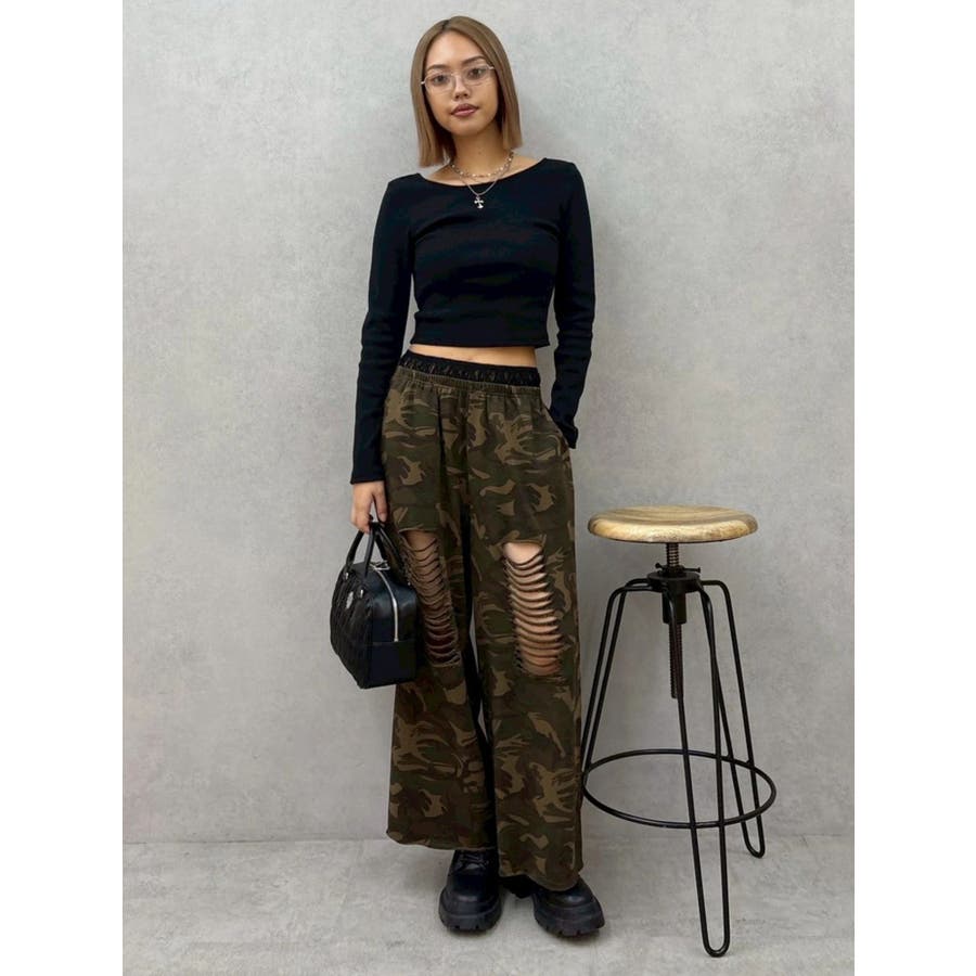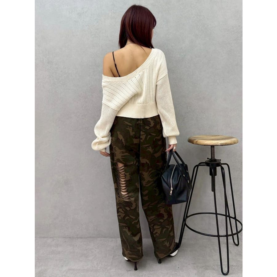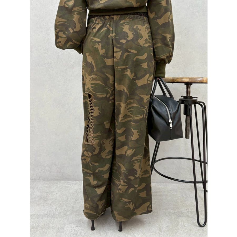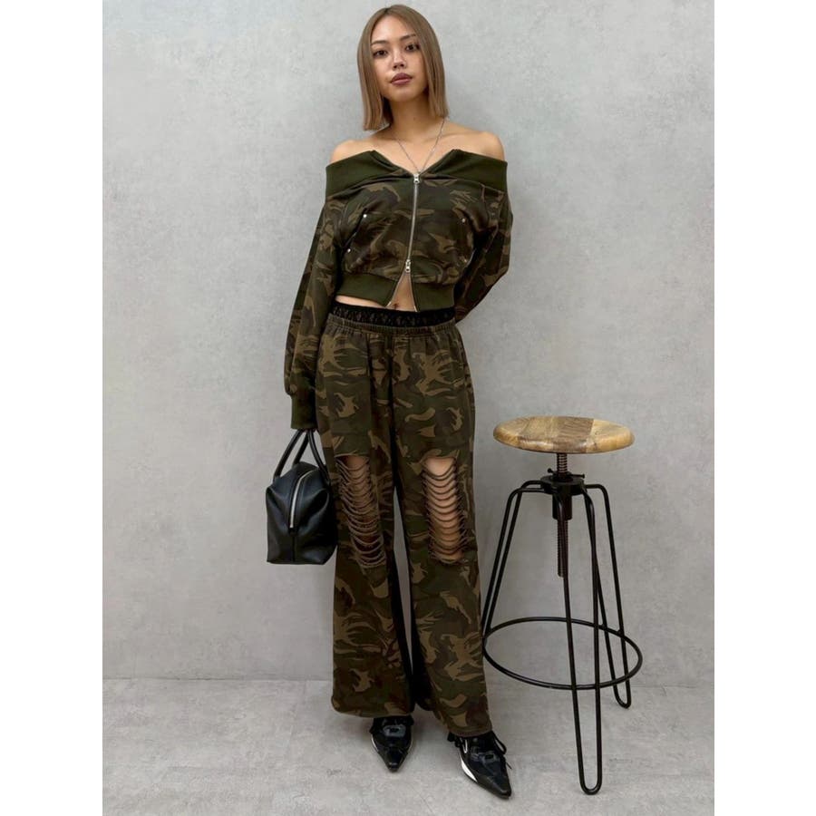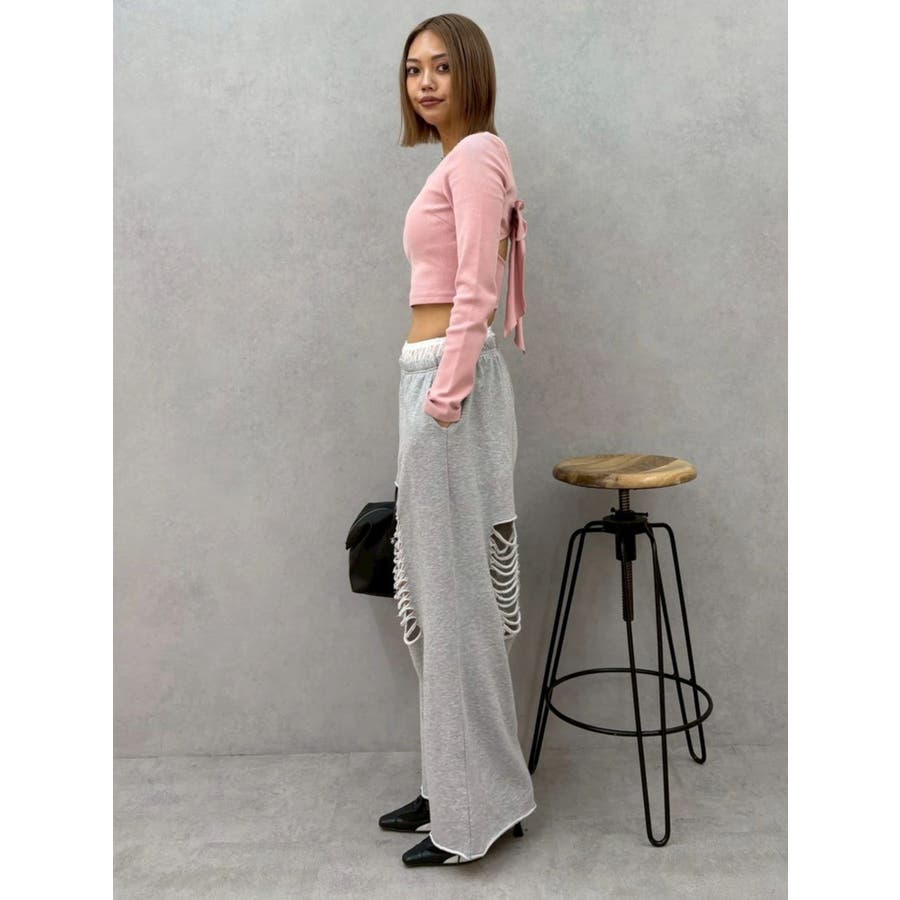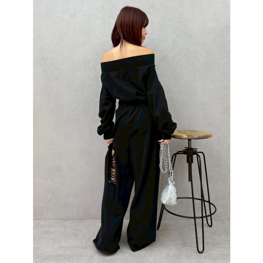 レースドッキングダメージスウェットワイドパンツ【セットアップ着用可能】