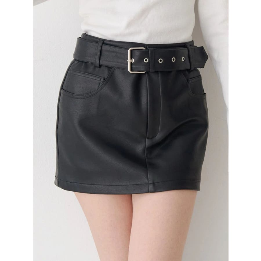 フェイクレザーベルトミニスカート【セットアップ着用可能】