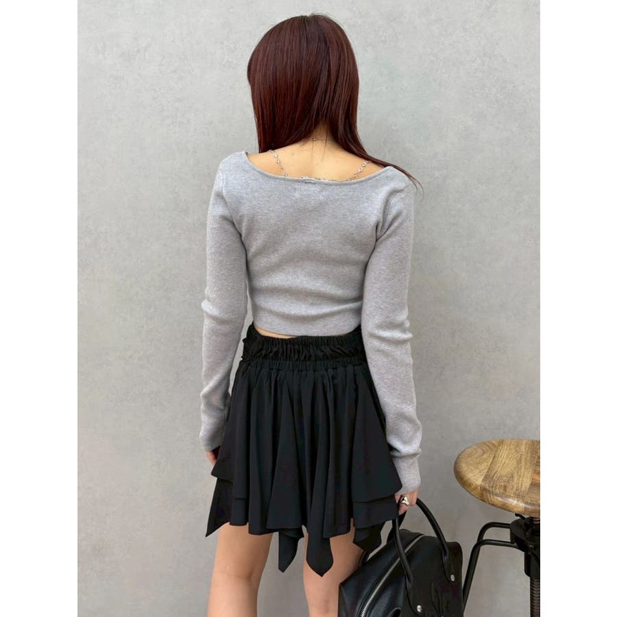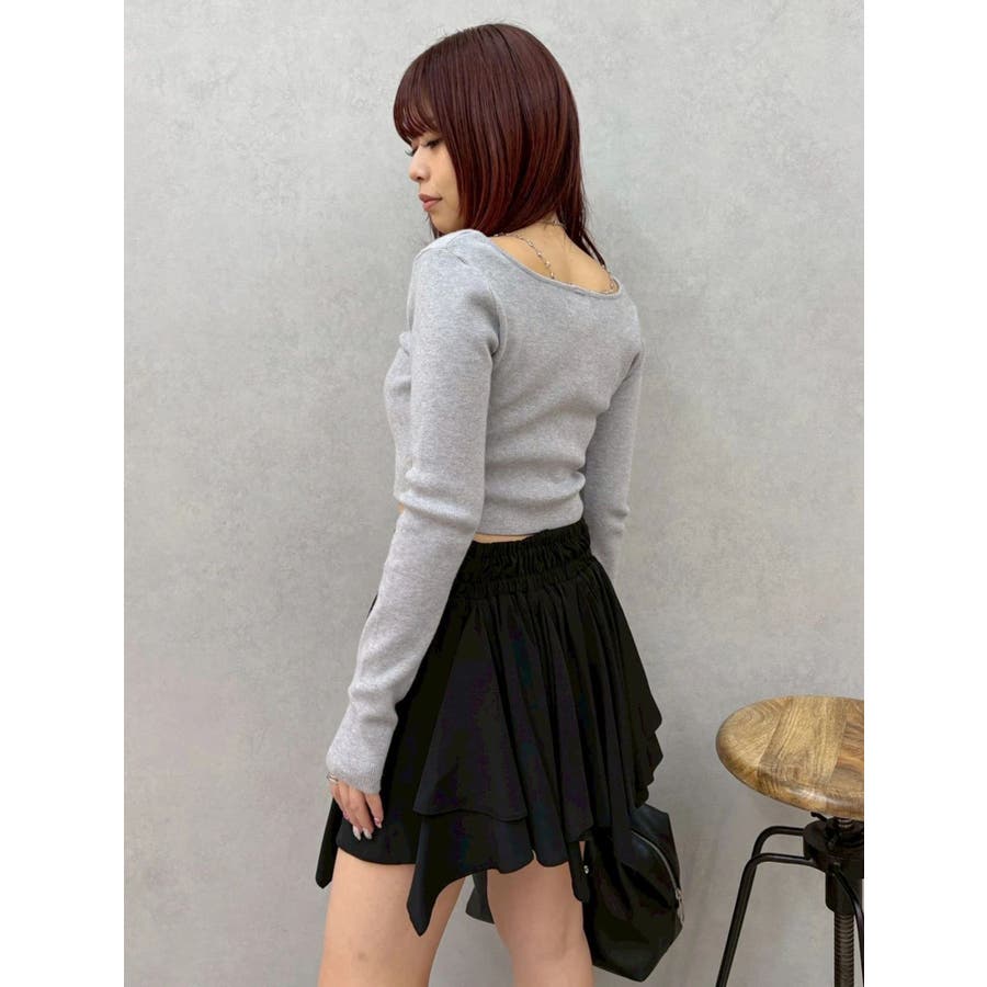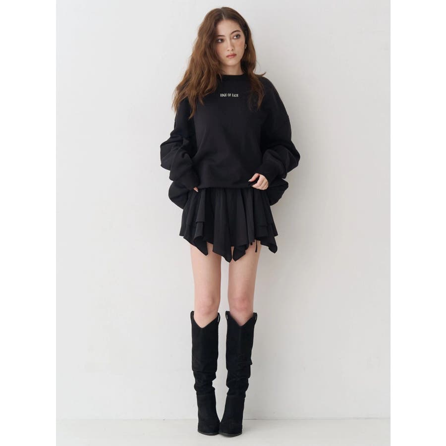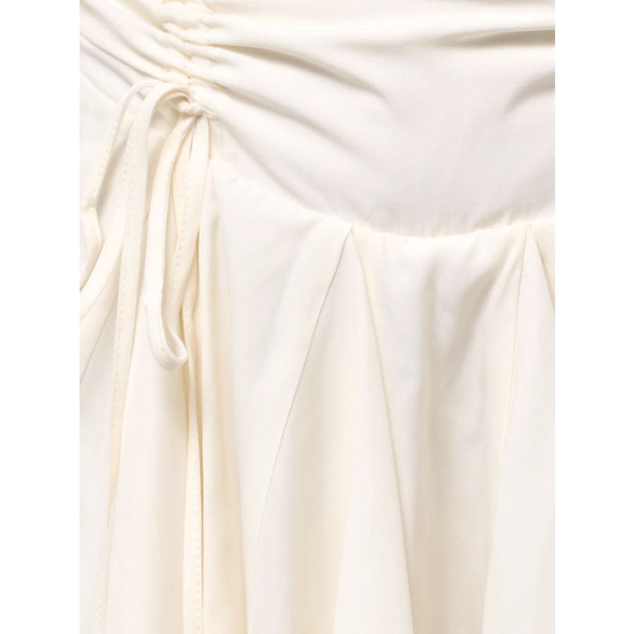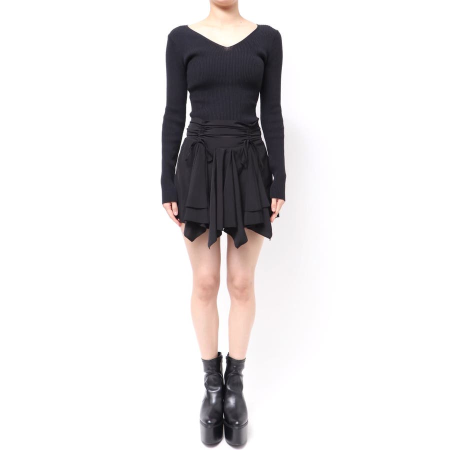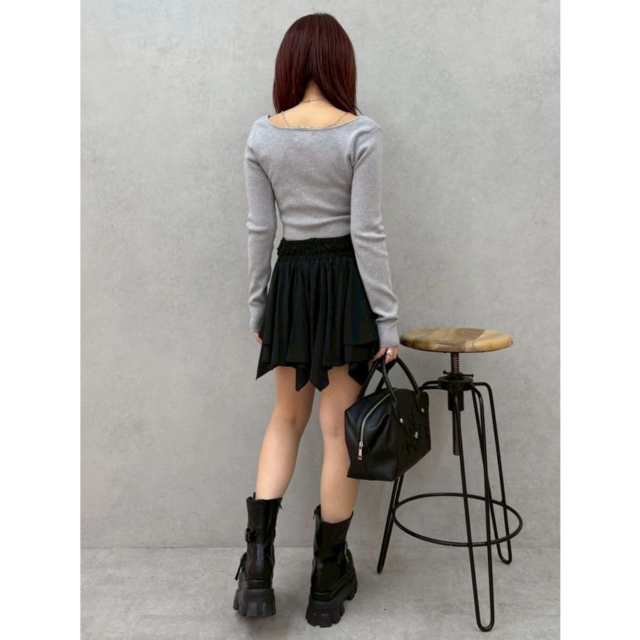 ■デザイン イレヘムデザインが今年らしい、トレンド感のあるミニスカートです。 インナーショートパンツ付きで安心して着用できます。ウエスト後ろ部分はゴムの仕様になっており、着脱も楽ちん◎ フロントのウエスト部分にはドロストできる平紐をつけておりギャザーの調整が可能になっています。 ■スタイリング カジュアルなトップスやごつめブーツなどとスタイリングすると今っぽい「甘×辛MIXスタイル」でおすすめです。 短めトップスとの相性も良いですしオーバーサイズのトップスからスカートの裾をチラ見せして着るのもかわいいです。-------------- 透け感:なし 裏地:あり 生地の厚み:薄め伸縮性:なし--------------