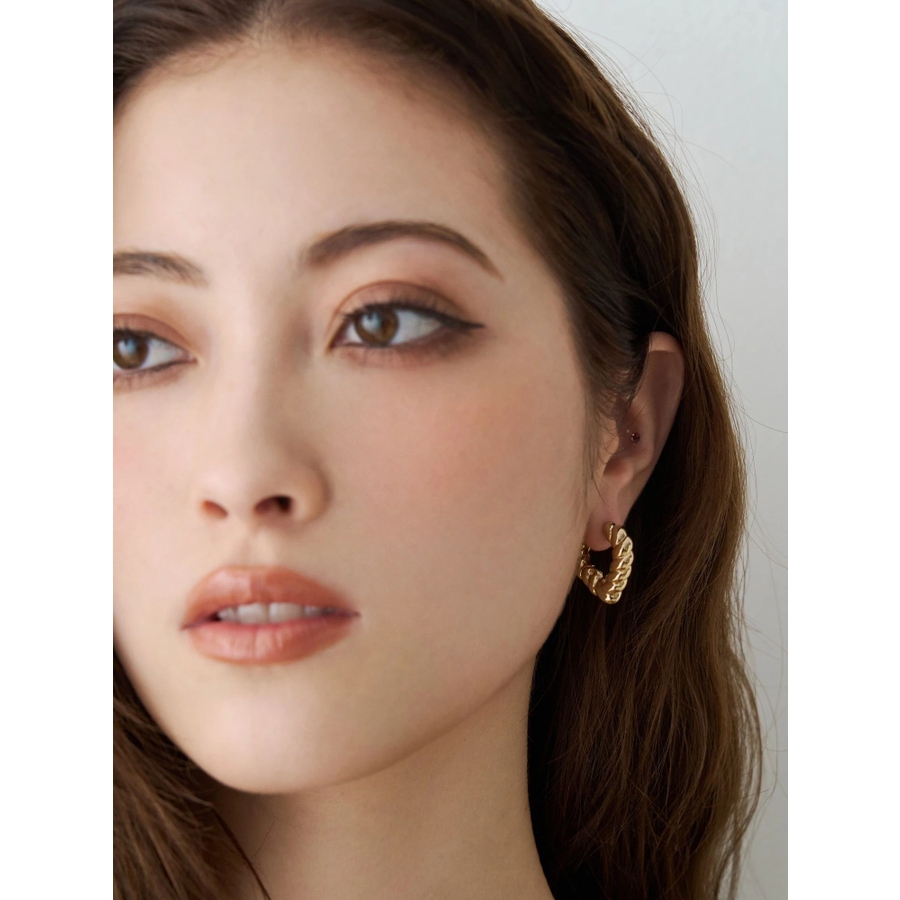 コンパクトなハート型ピアスです。ツイストデザインの表面で光さりげなく輝きシンプルながら個性のあるデザインです。コーディネートに可愛らしいアクセントを添えてくれます。