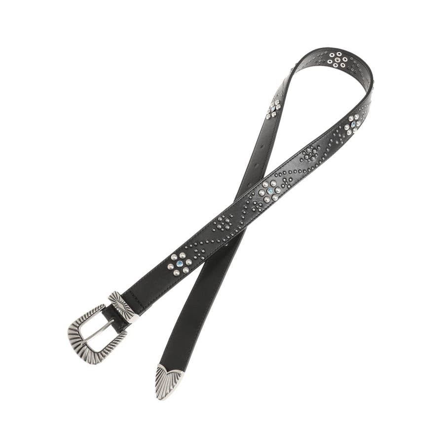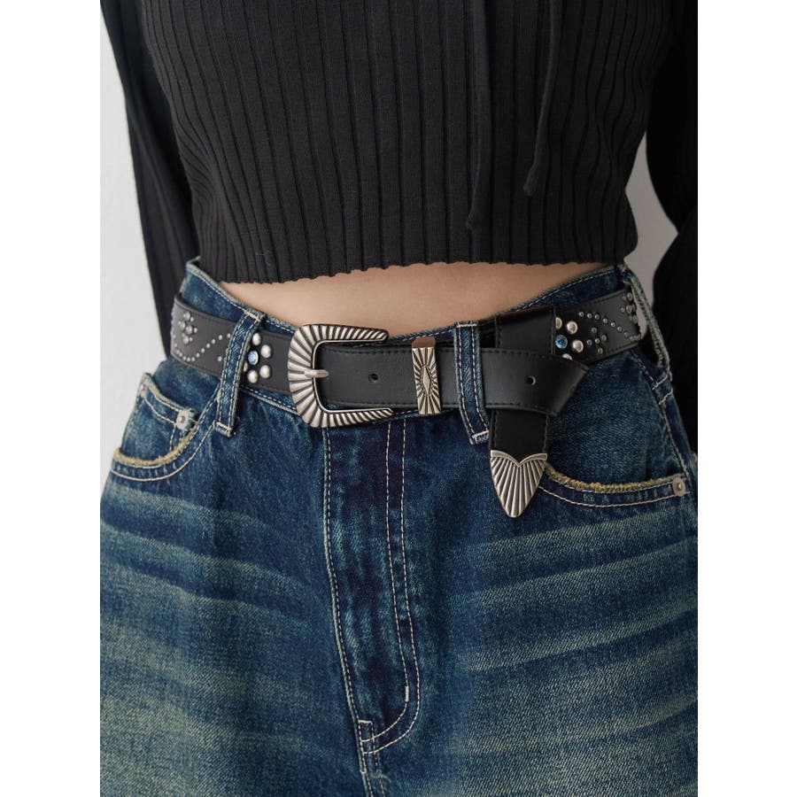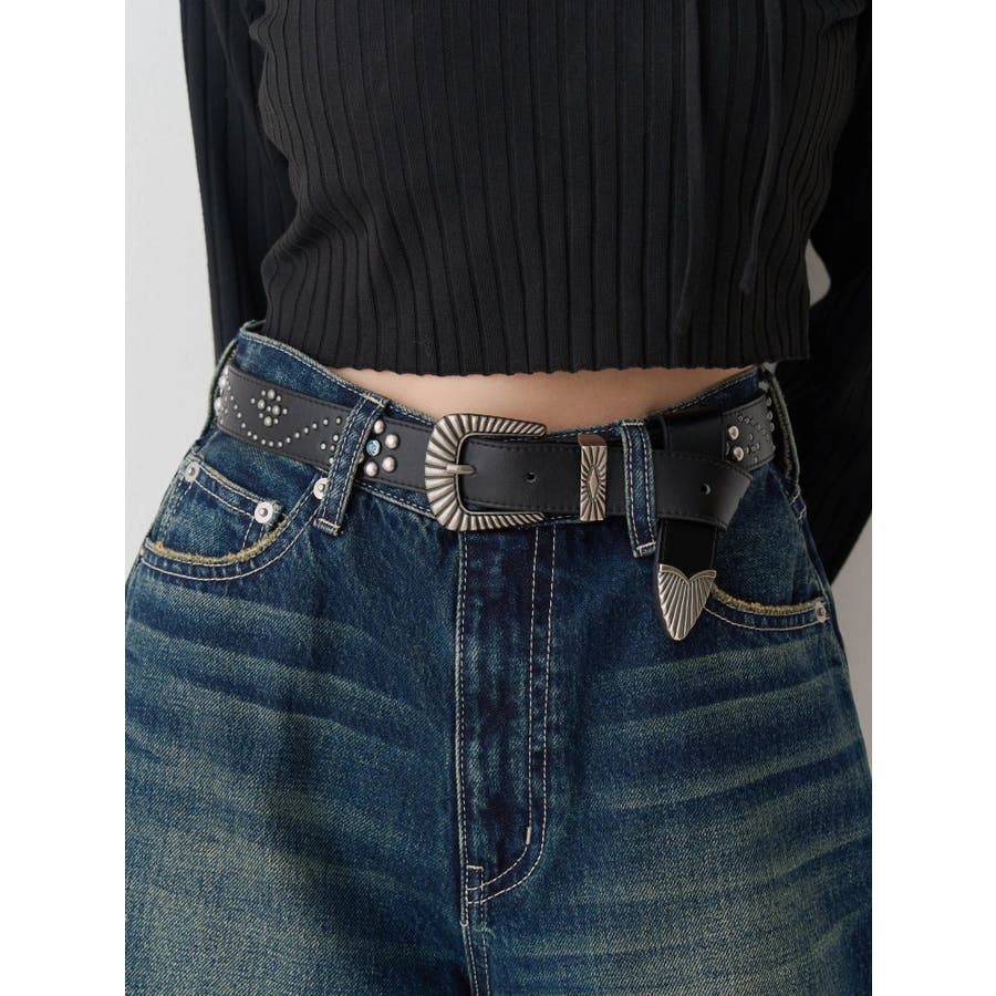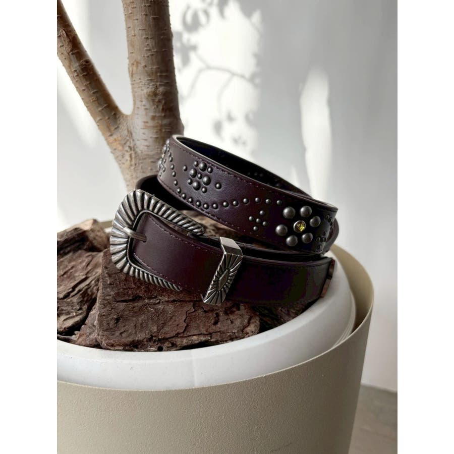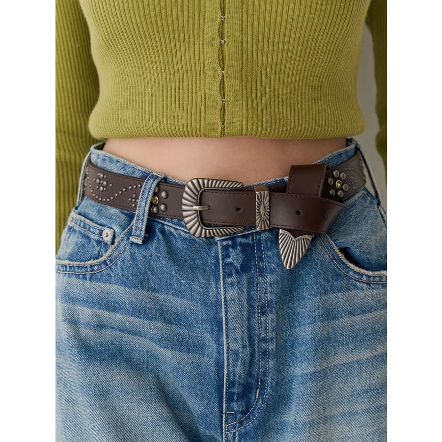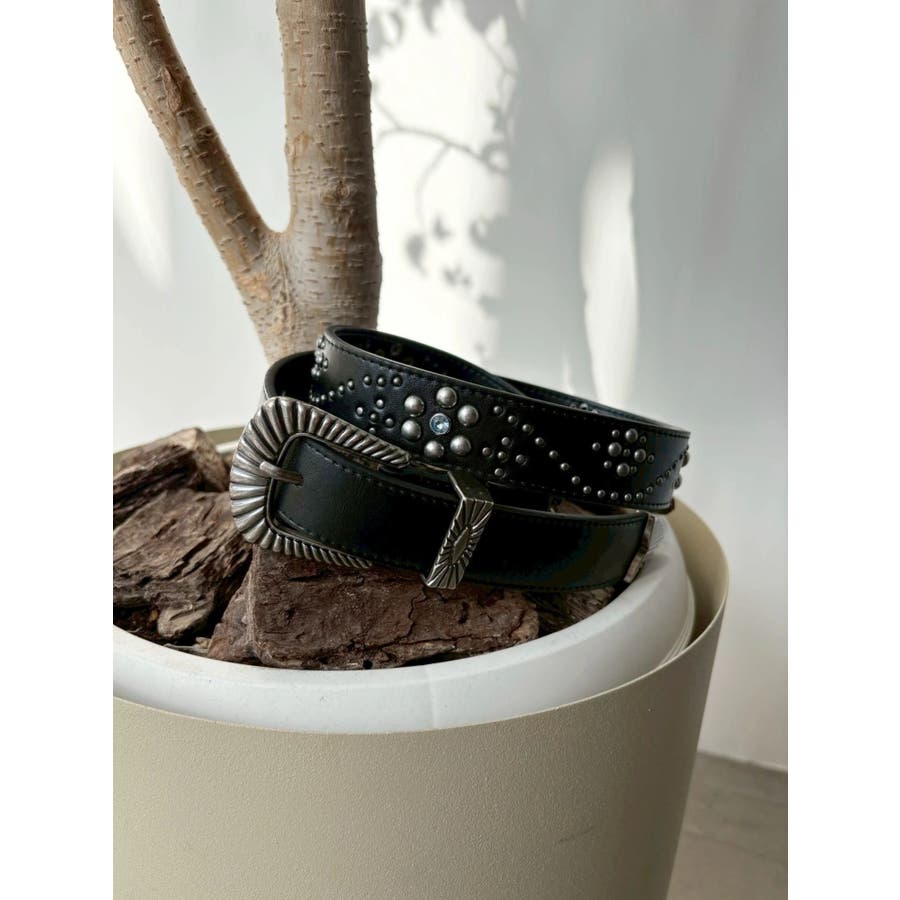 EVRIS(エヴリス)定番で人気のバックルベルトのアップデートデザイン。フェイクレザー部分にオリジナルのスタッズ模様をあしらった今期のコンセプトBOHOに合うデザインがポイントです。コーデのアクセントになる存在感と、ウエストマークでスタイルアップも叶うアイテムで、デニムやワンピースなど、幅広いスタイリングに合わせやすい1本です。