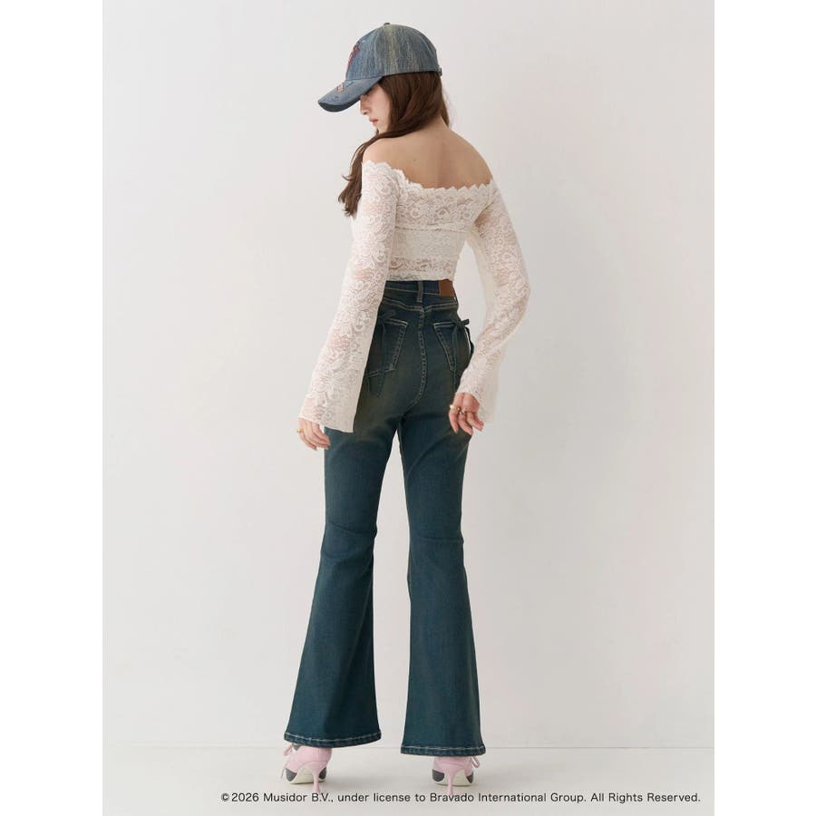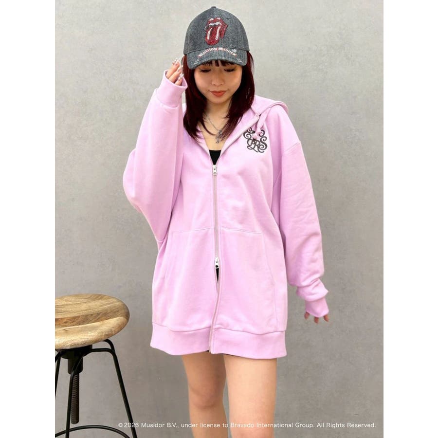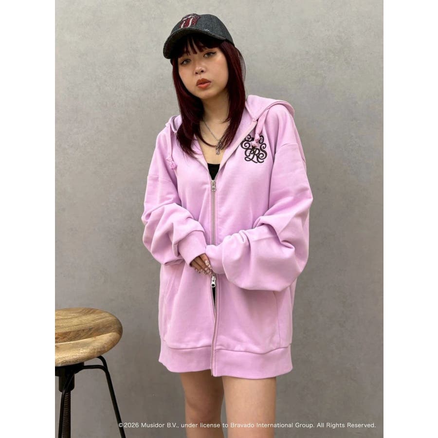 フロントのキャッチーなロゴはラインストーンと刺繍で入れており