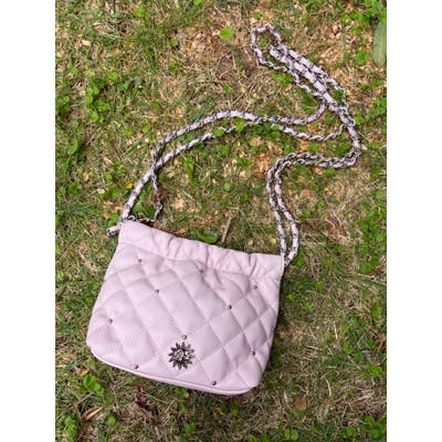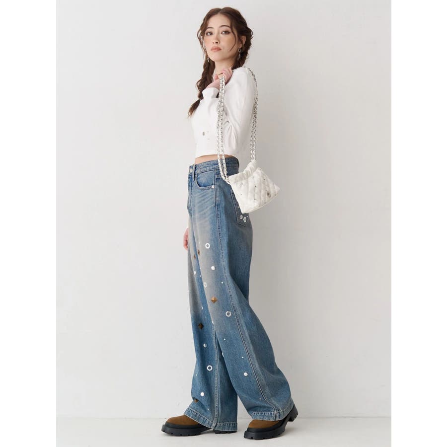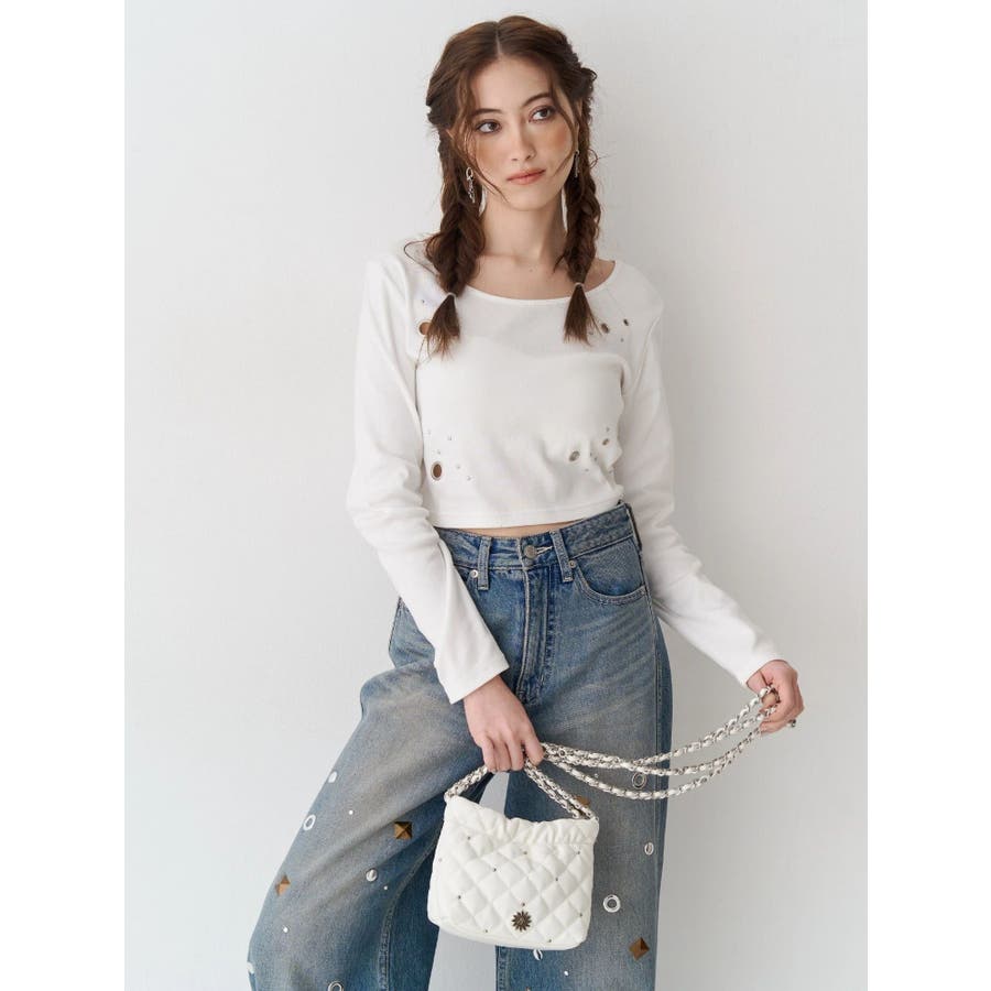 \毎回大人気のBAGから新デザイン登場/ ■デザイン EVRISで大人気のチェーンミニショルダーバッグ。今季のシーズンテーマにあわせたボーホースタイルとマッチするスタッズデザイン。主張しすぎない小さめスタッズにキルティングデザインで女性らしさもプラス?サニーモチーフ付きで、チェーンも2本使用しており肩がけしたときも華やかな印象になります。