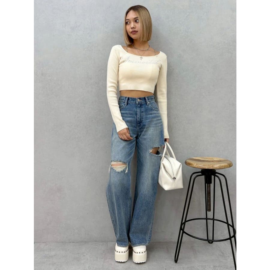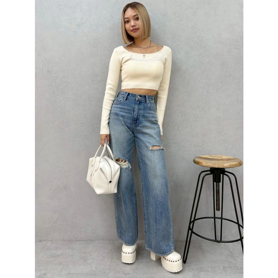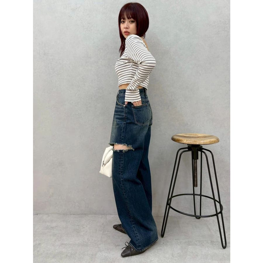 カットアウトワイドデニムパンツ【セットアップ着用可能】