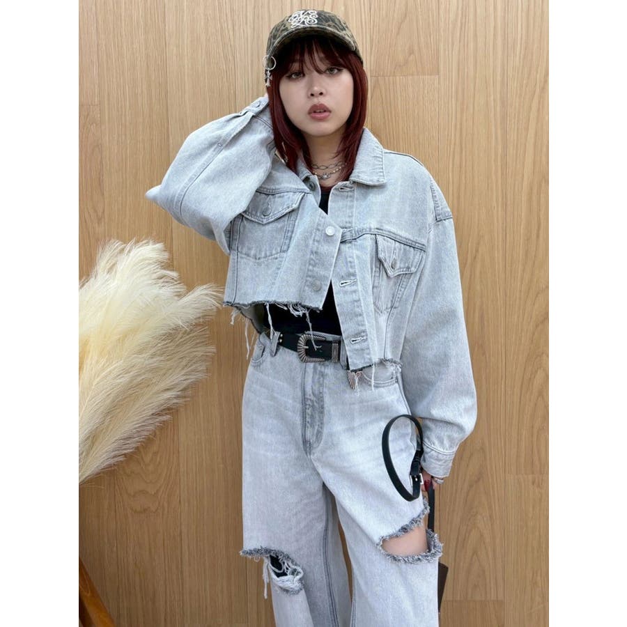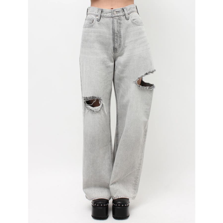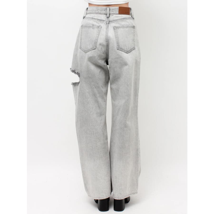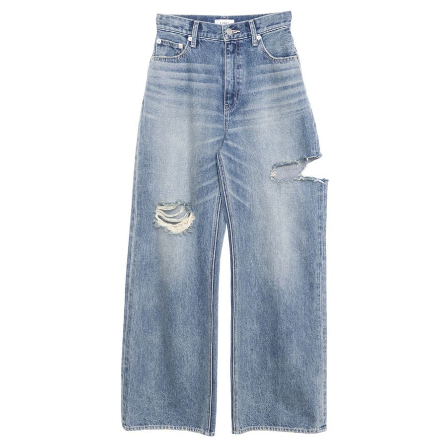 ■デザイン 毎年定番のデニムセットアップシリーズのワイドデニムパンツ。今季は人気シルエットに左側の大胆スリットと右膝上のダメージがポイントです。やりすぎない肌見せで、幅広い方に着こなしていただける1枚です。新色で、色を落とした(抜いた)薄いグレーを用意しておりこれまでにない軽やかな印象の春らしいカラー展開にしています。■スタイリング同素材のデニムブルゾンとのセットアップスタイリングがおすすめ。もちろんどんなコーディネートにもあわせやすいデニムです。■セットアップアイテム>>ヴィンテージライクカラーデニムブルゾン-------------- 透け感:なし 裏地:なし 生地の厚み:普通 伸縮性:なし --------------
