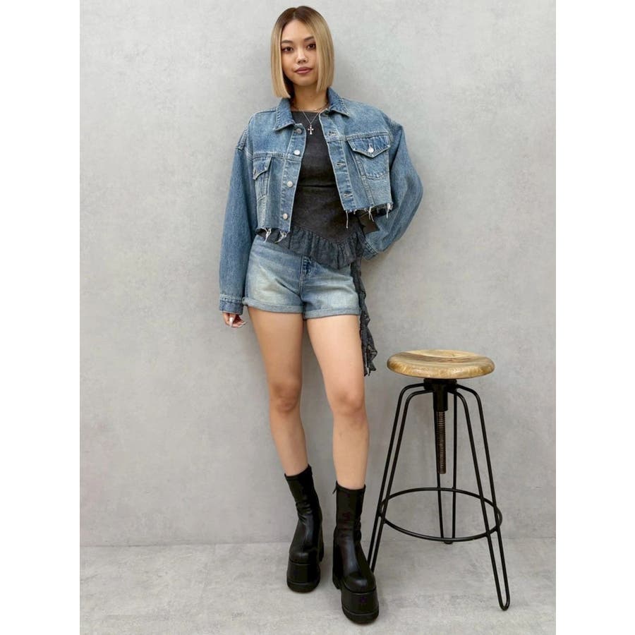 ヴィンテージライクカラーショートデニムパンツ【セットアップ着用可能】