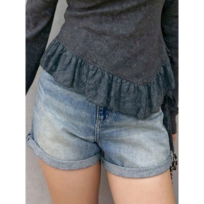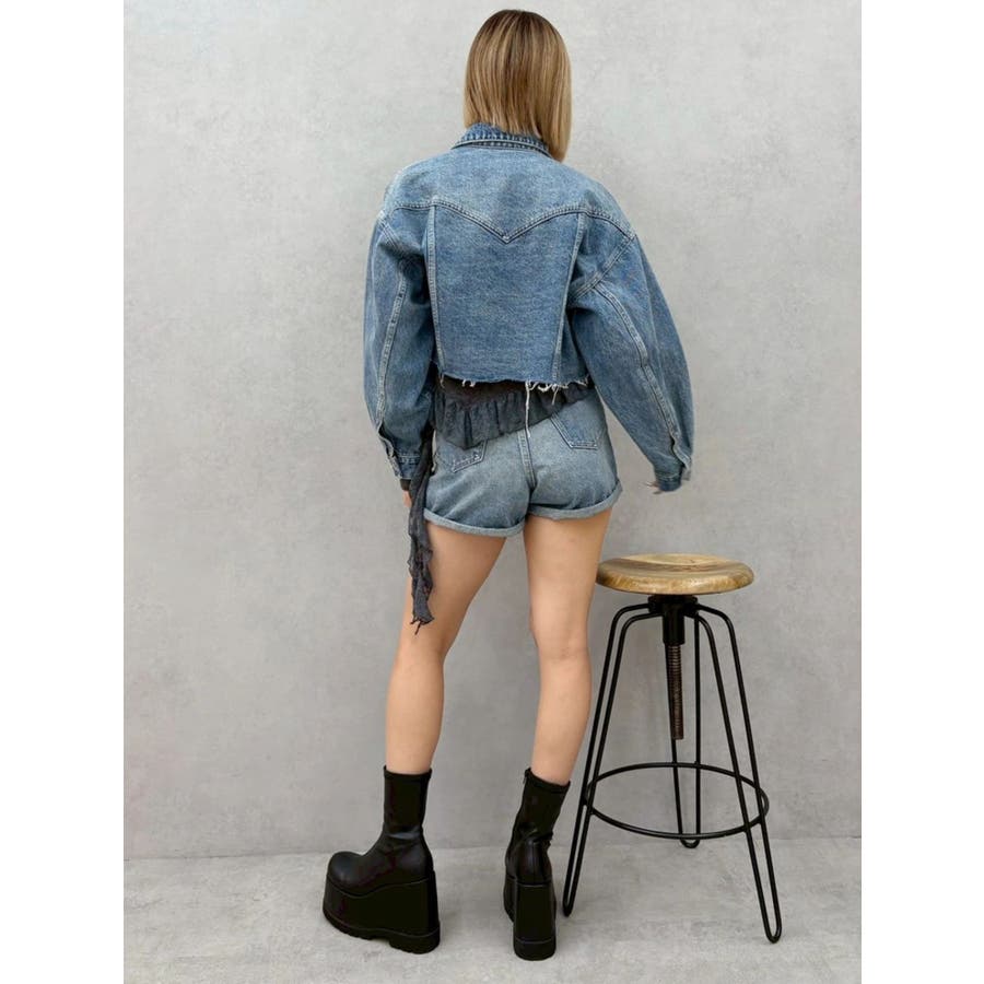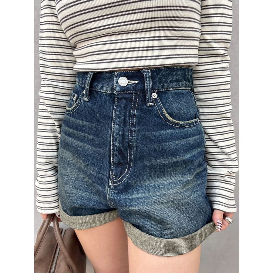 ■デザイン毎年定番のデニムセットアップシリーズのショートパンツ。ショートパンツはダメージなどなく裾がロールアップされているシンプルなデザインです。ハイウエストなので脚長効果抜群です。裾幅も広めなので脚が細見えするシルエットになっています。■スタイリング同素材のデニムブルゾンとのセットアップ着用がおすすめですがトップスを選ばず、単品でも着回しやすいアイテムです。 ■セットアップアイテム>>ヴィンテージライクカラーデニムブルゾン --------------透け感:なし裏地:なし生地の厚み:普通伸縮性:なし--------------