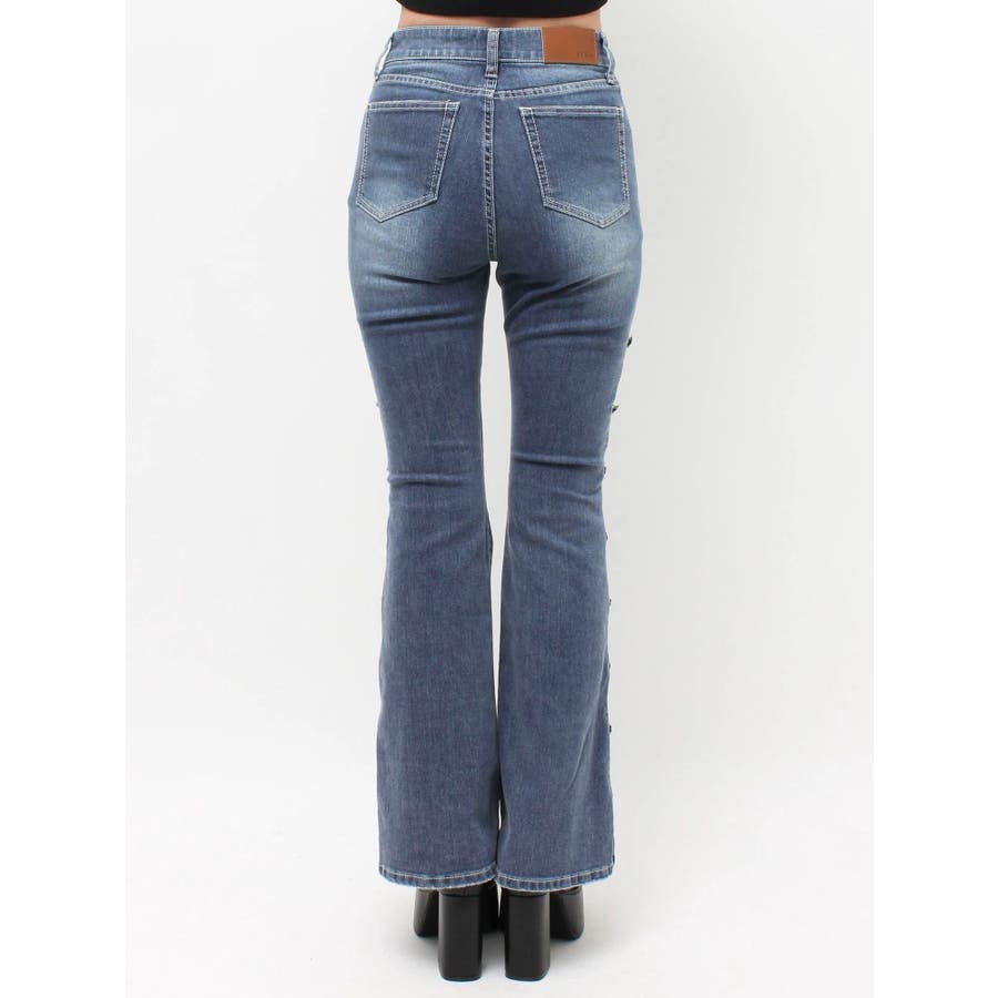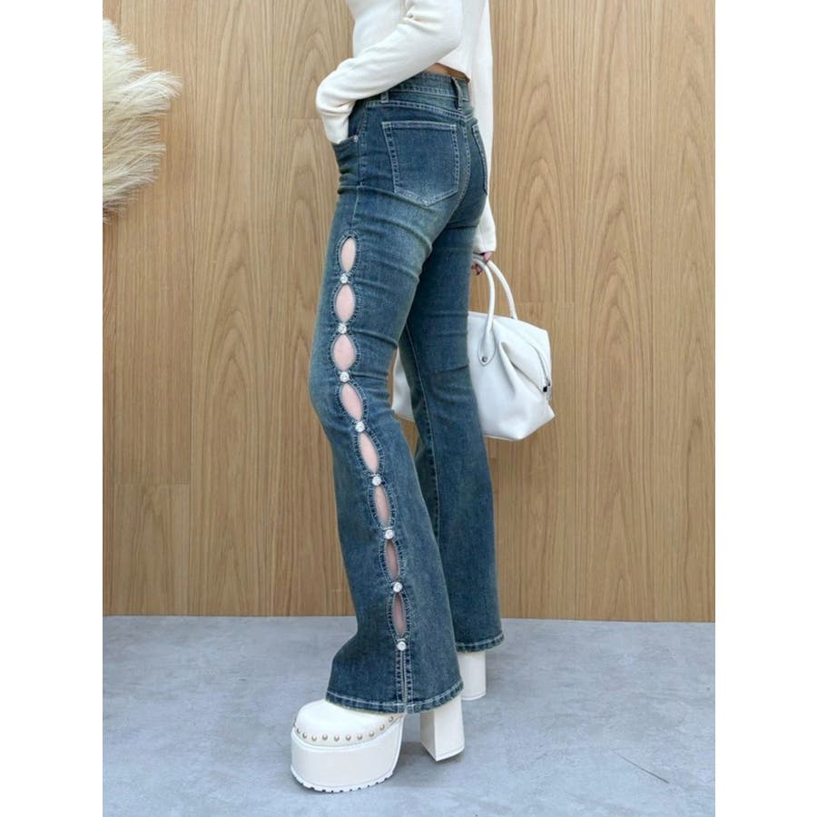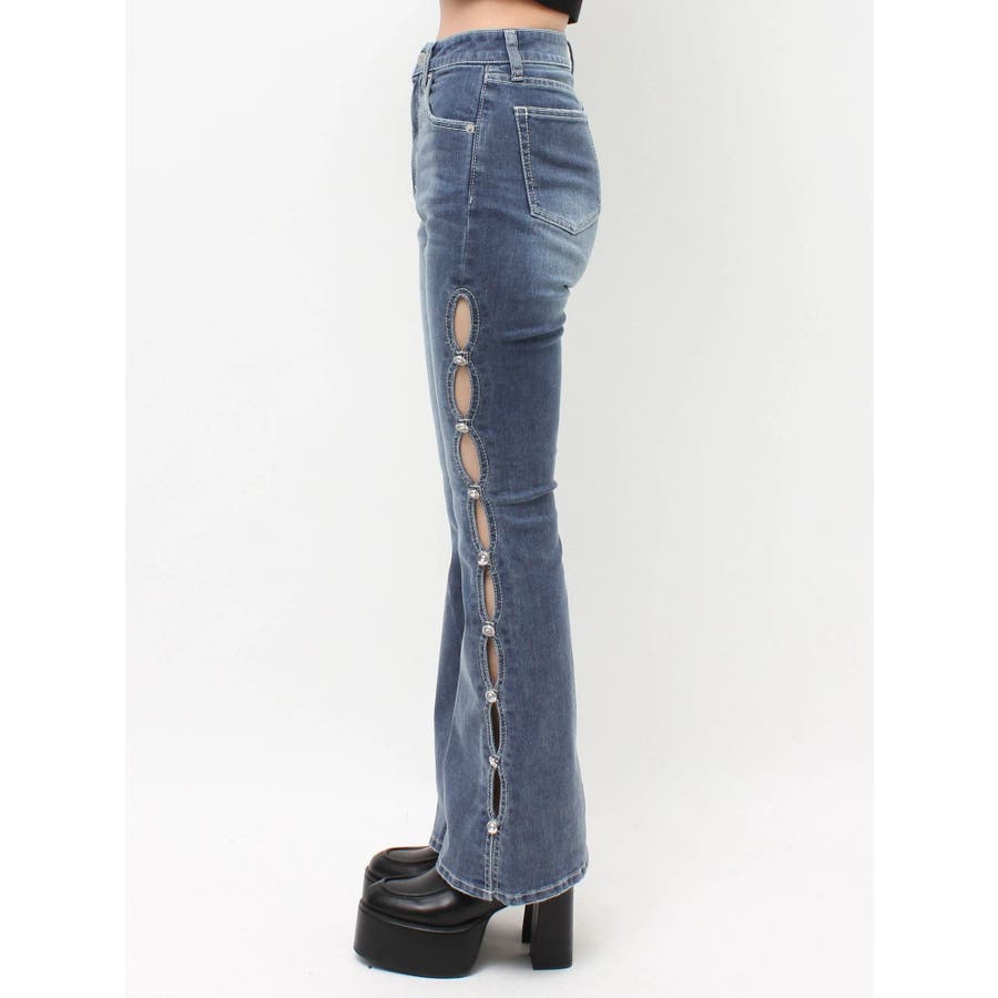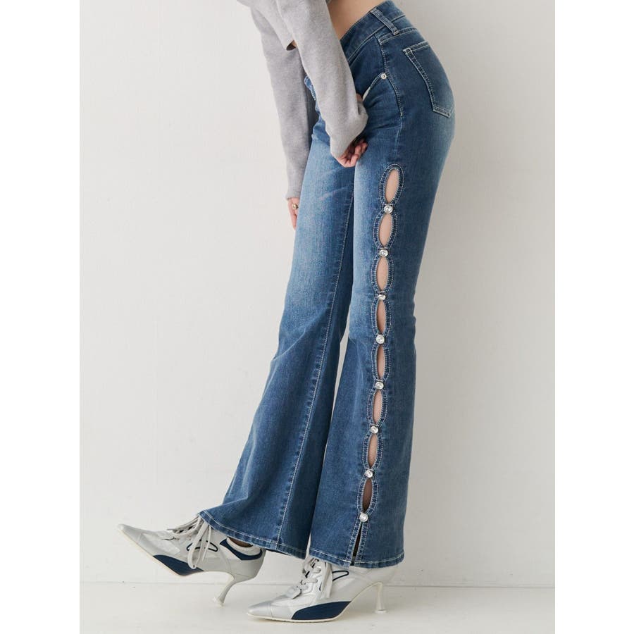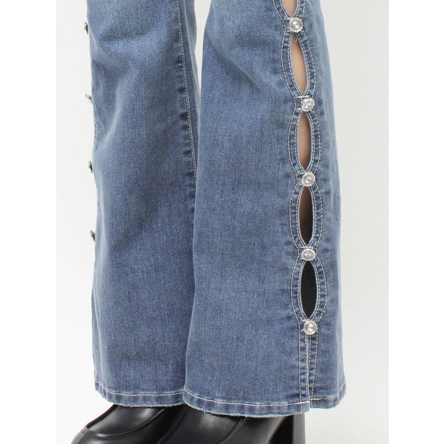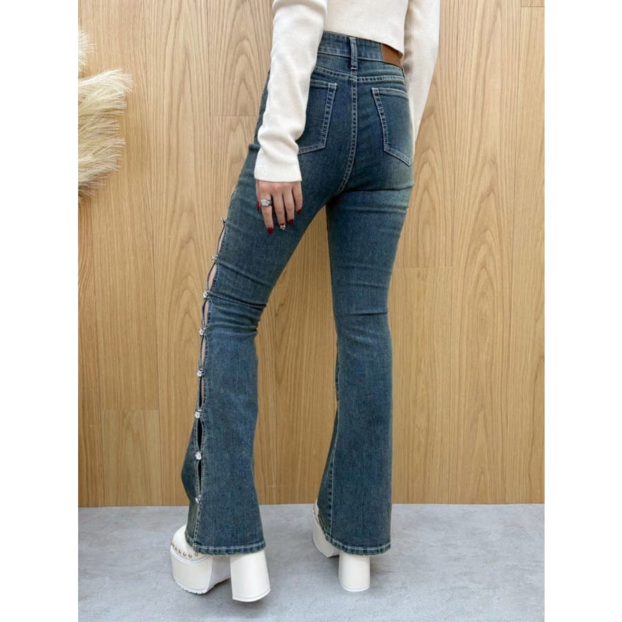 サイドビジューフレアデニムパンツ