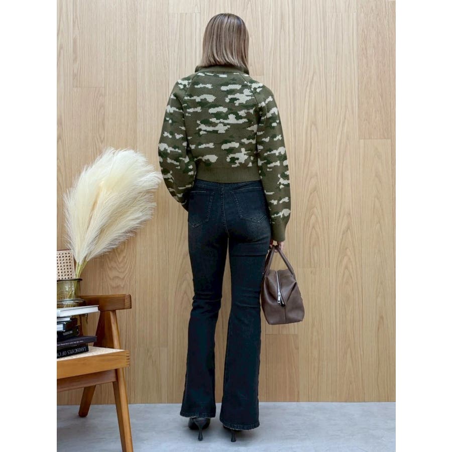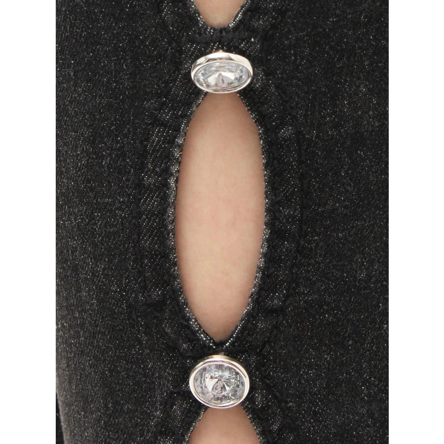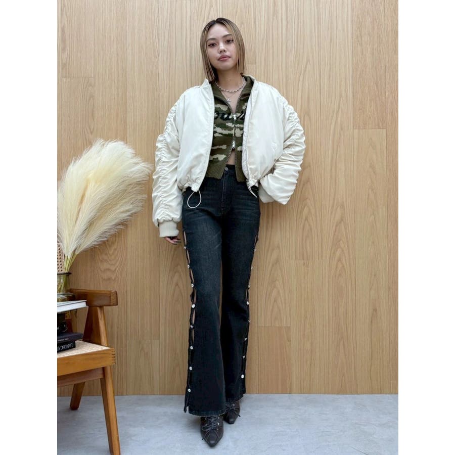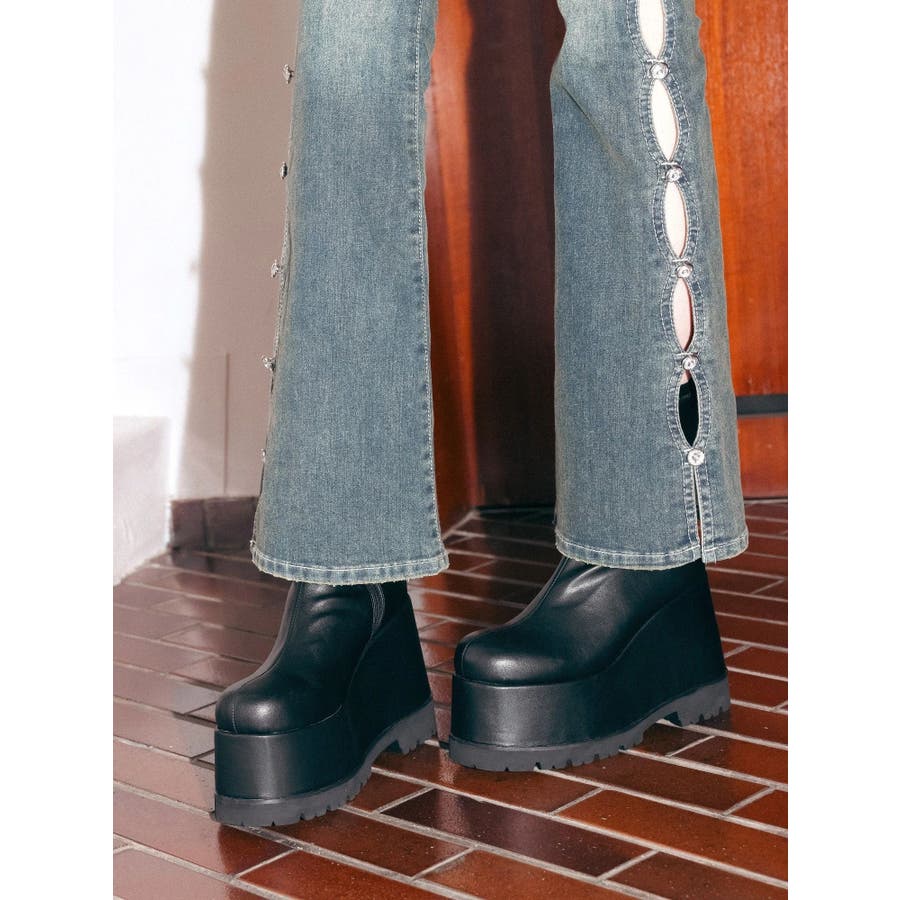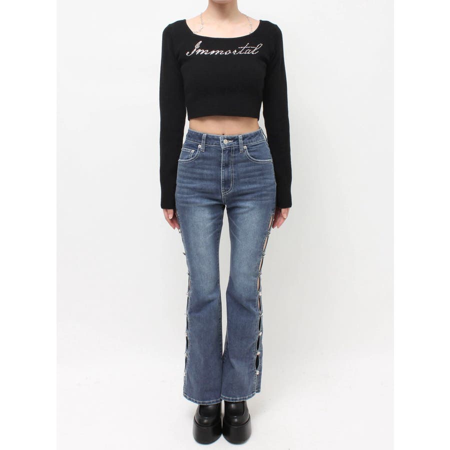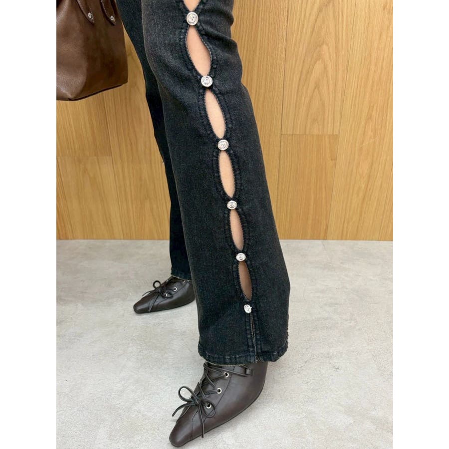 サイドビジューフレアデニムパンツ