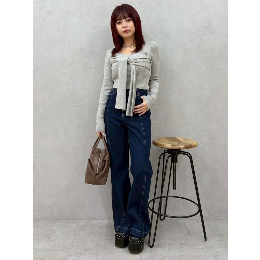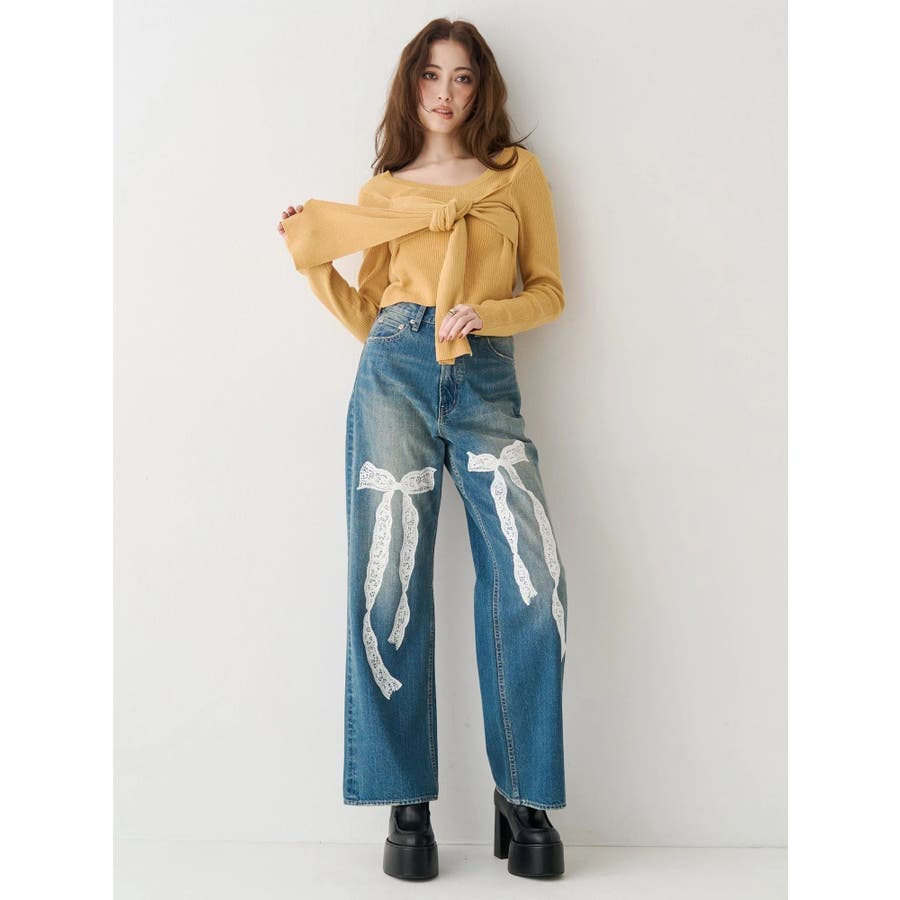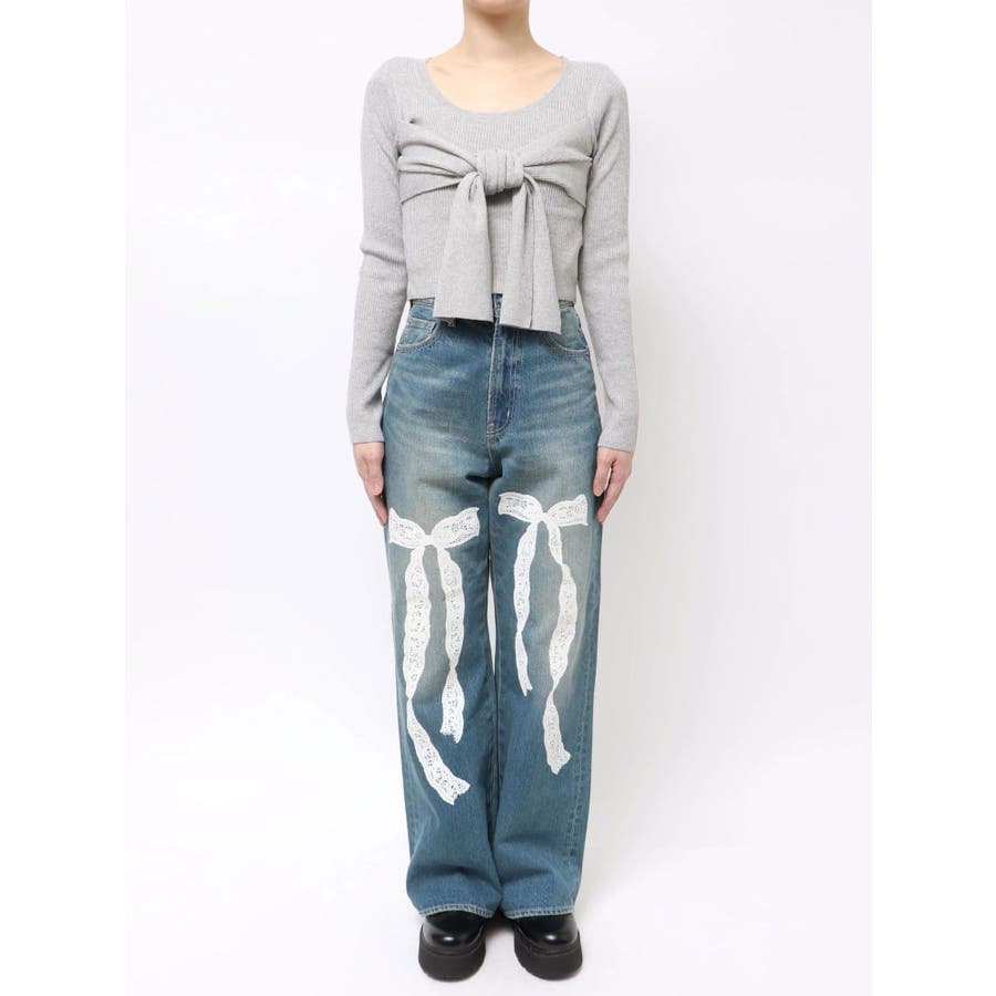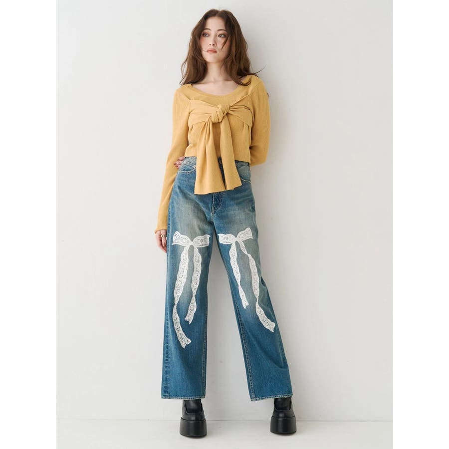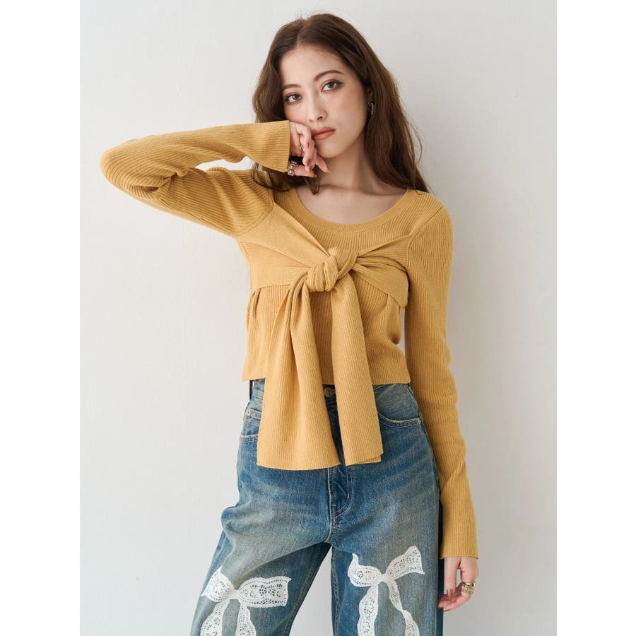 リボンデザインニットトップス