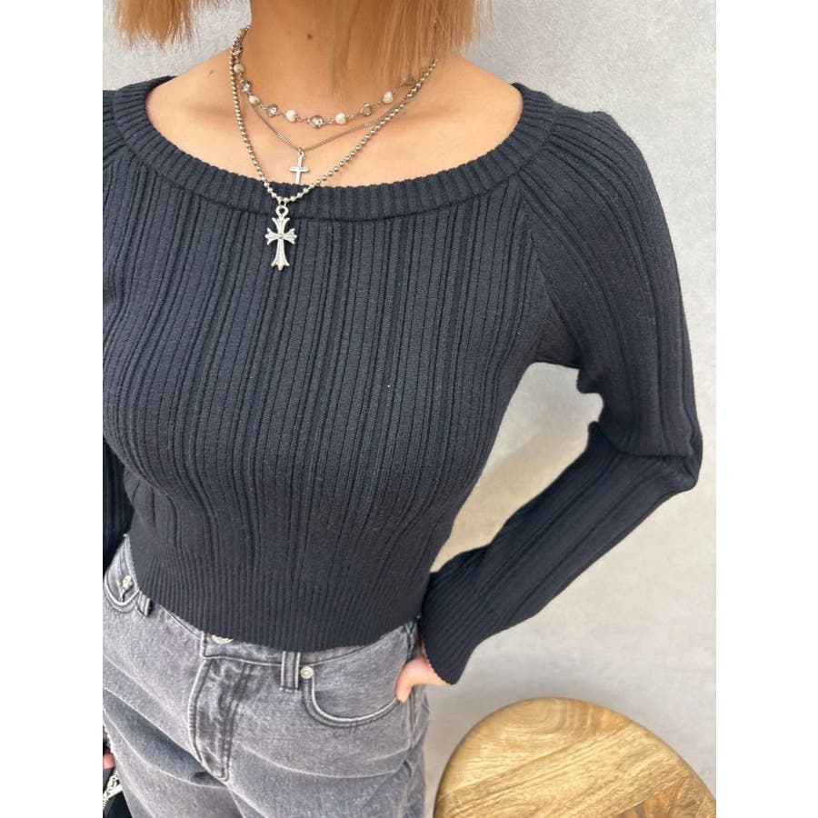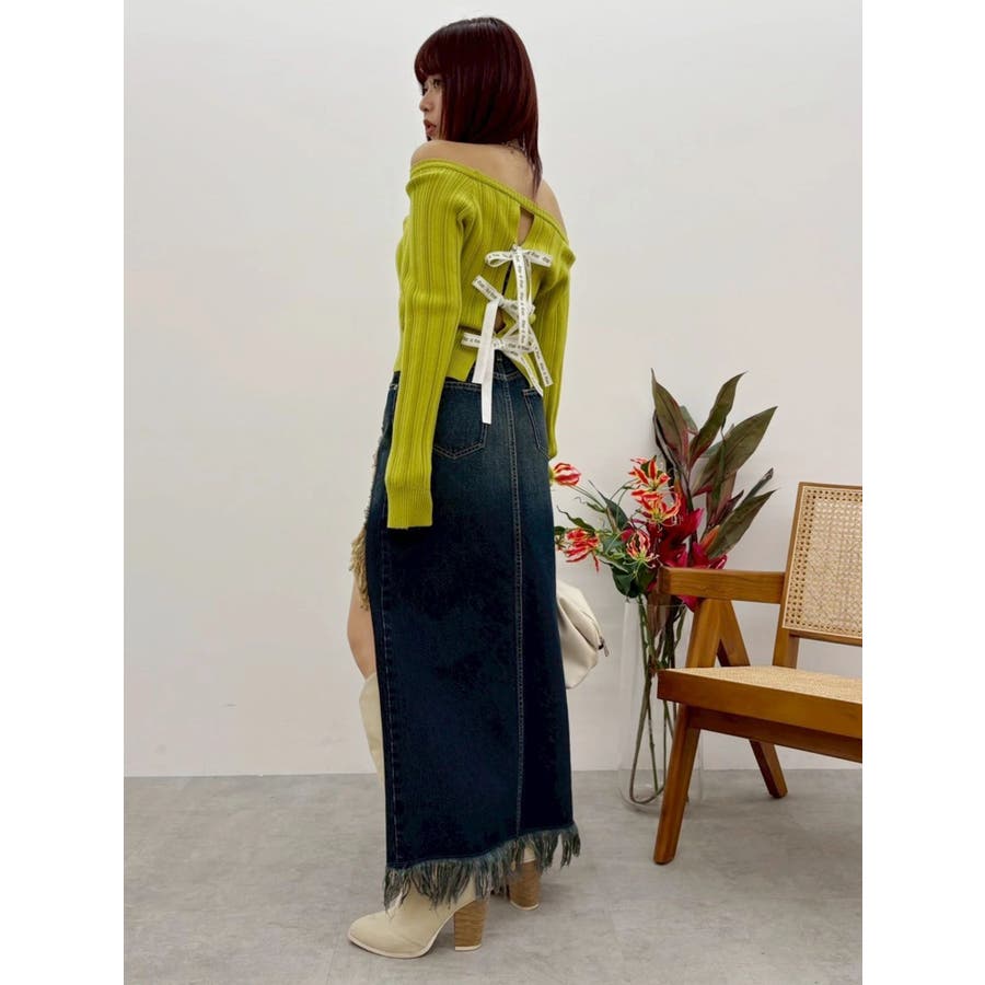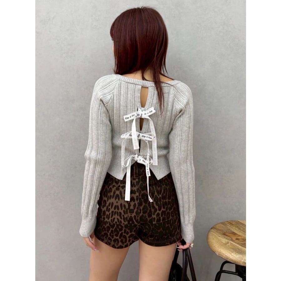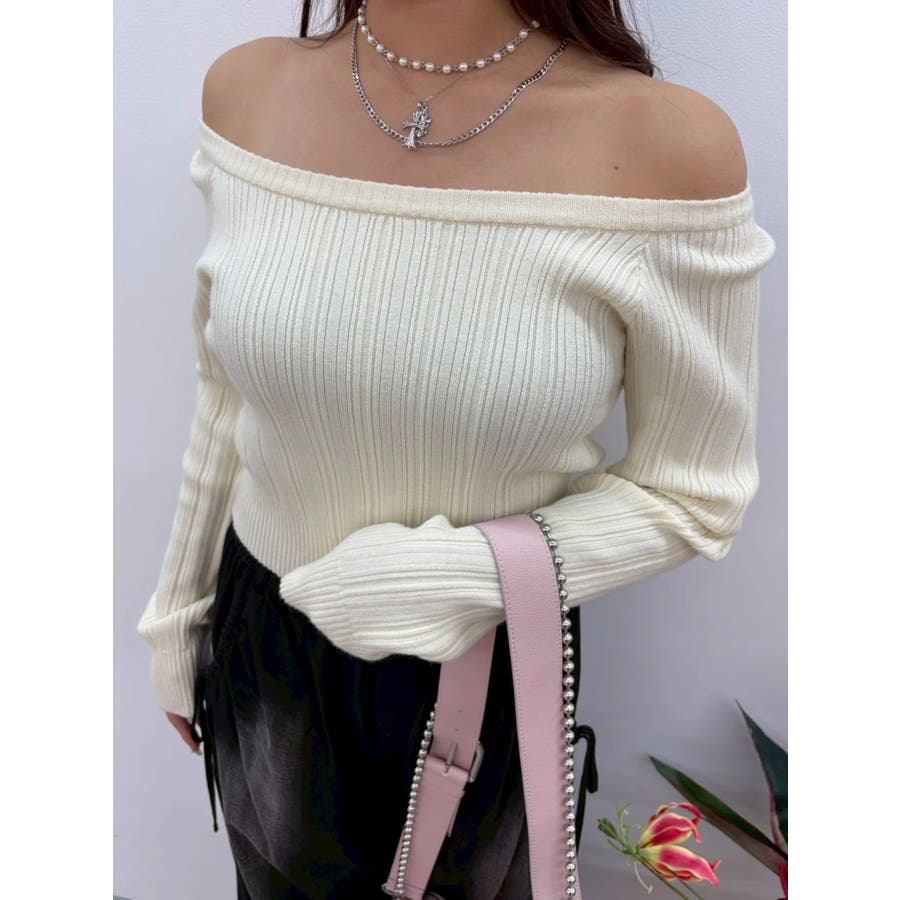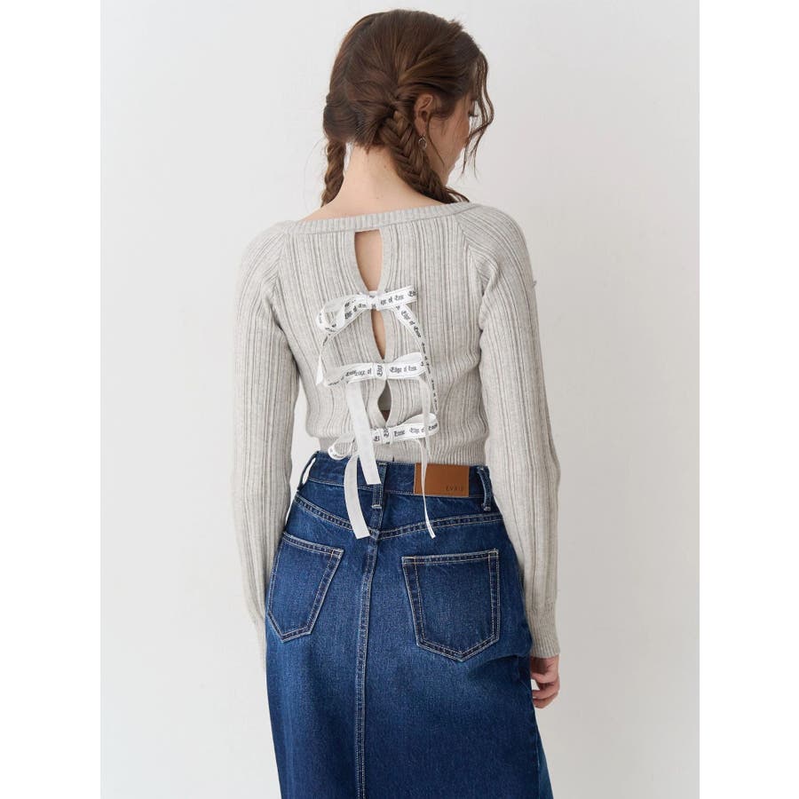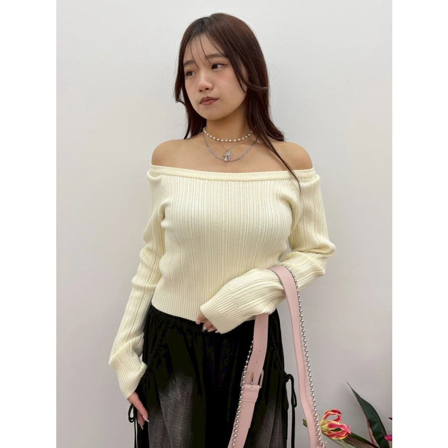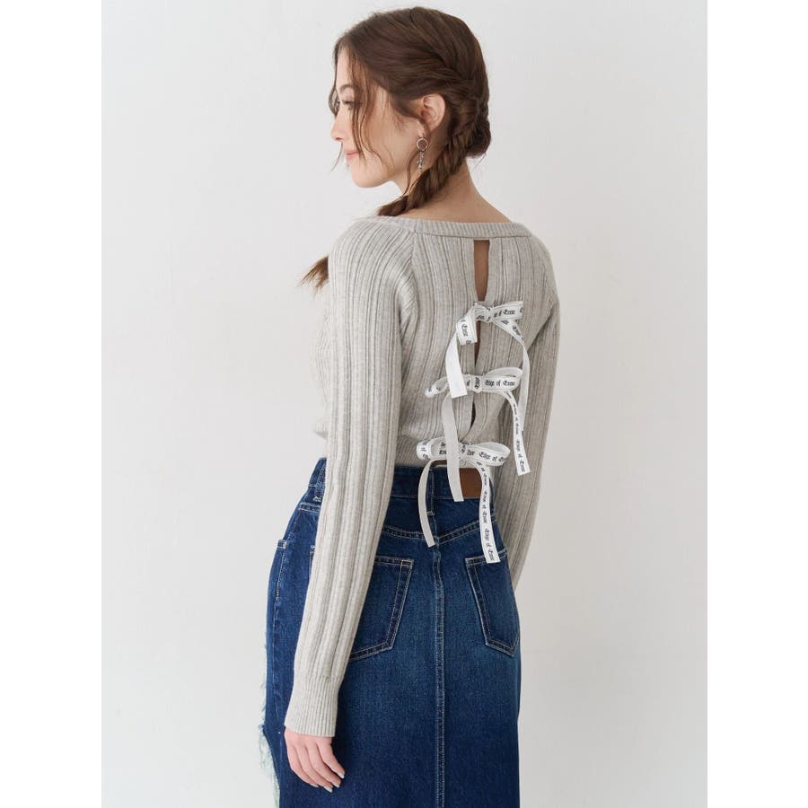 ■デザイン大人気のバックリボンニットのNEWバージョン!春らしいカラー展開と少し軽やかな素材になりました。 伸縮性のある素材なのでオフショルでも着用できる、2WAYデザインです。リボンのグラフィックは今季のシーズンコンセプト「Edge of Ease」をプリントしたオリジナルデザイン。■スタイリング程よい背中見せのデザインでカジュアルなボトムに合わせても女性らしいスタイリングが楽しめます。--------------透け感:なし裏地:なし生地の厚み:普通伸縮性:あり--------------