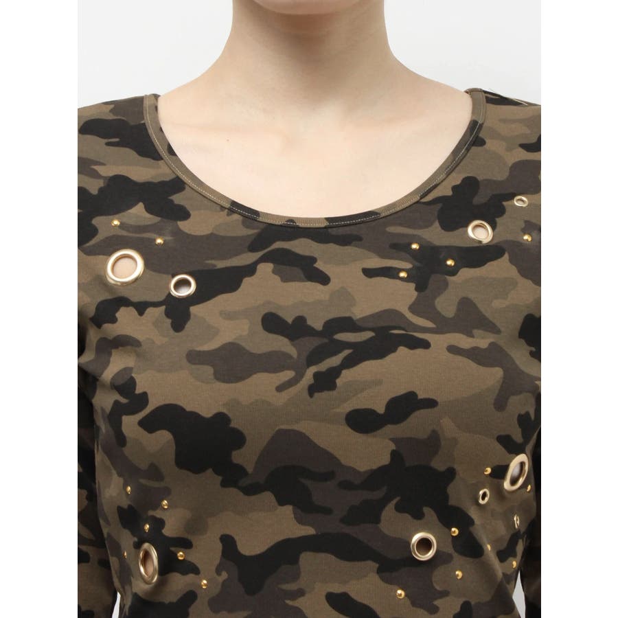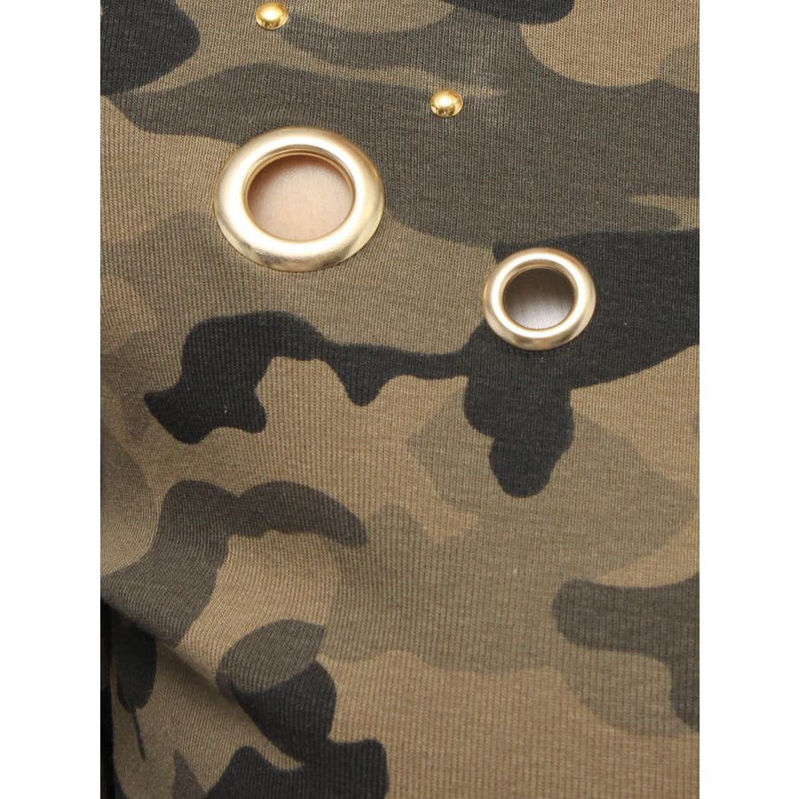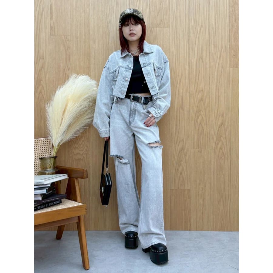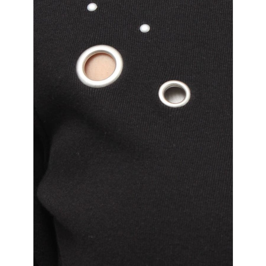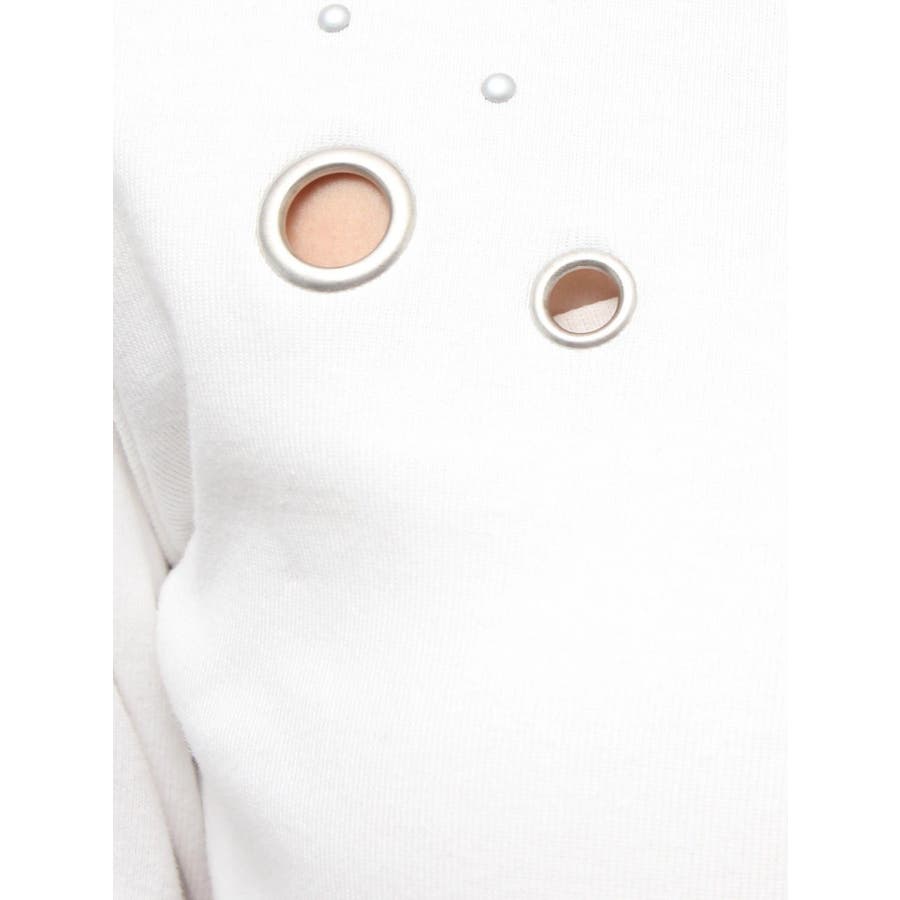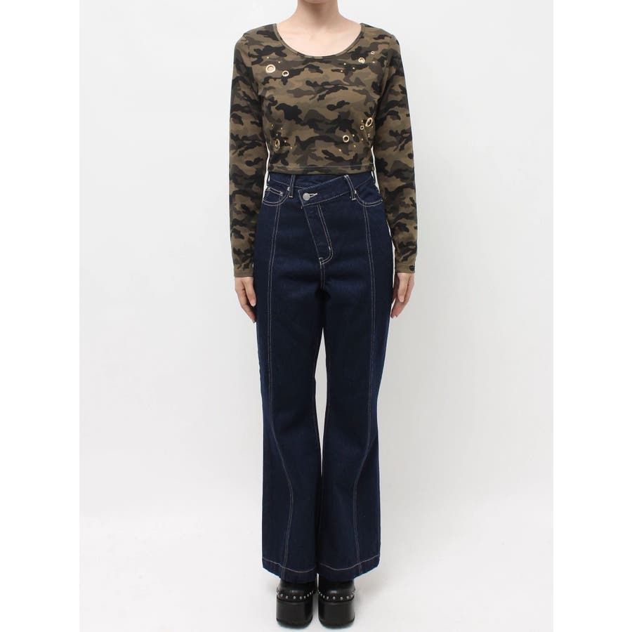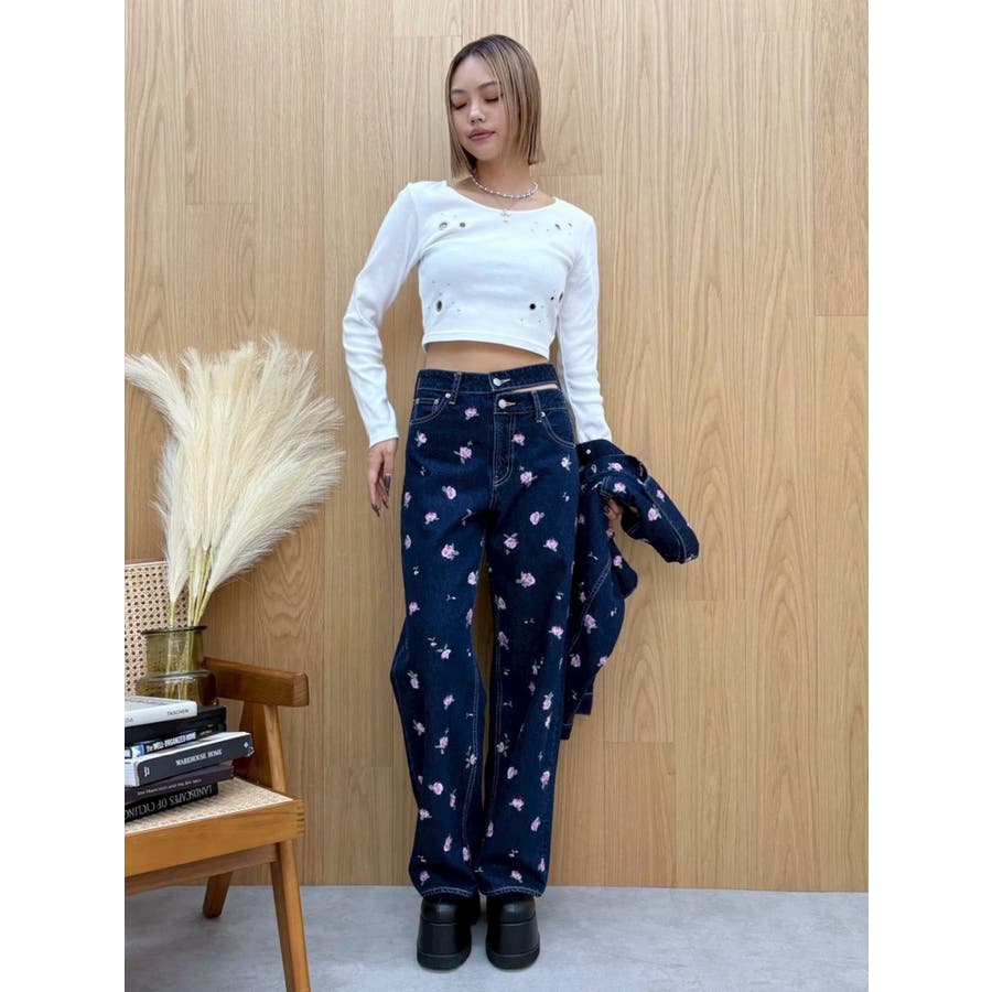 トレンドのアイレットデザインを落とし込んだクロップドロンTです。伸縮性のあるフライスを使用しており、着心地の良い1枚です。数種類のアイレットやスタッズを散りばめており、程よく肌見せスタイルが楽しめます。インナーが見えにくい位置にアイレットをつけているため安心して着用できます。