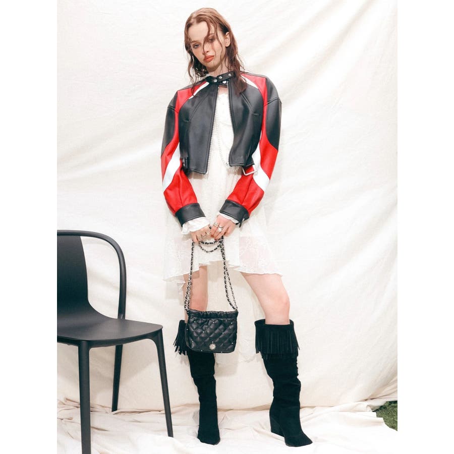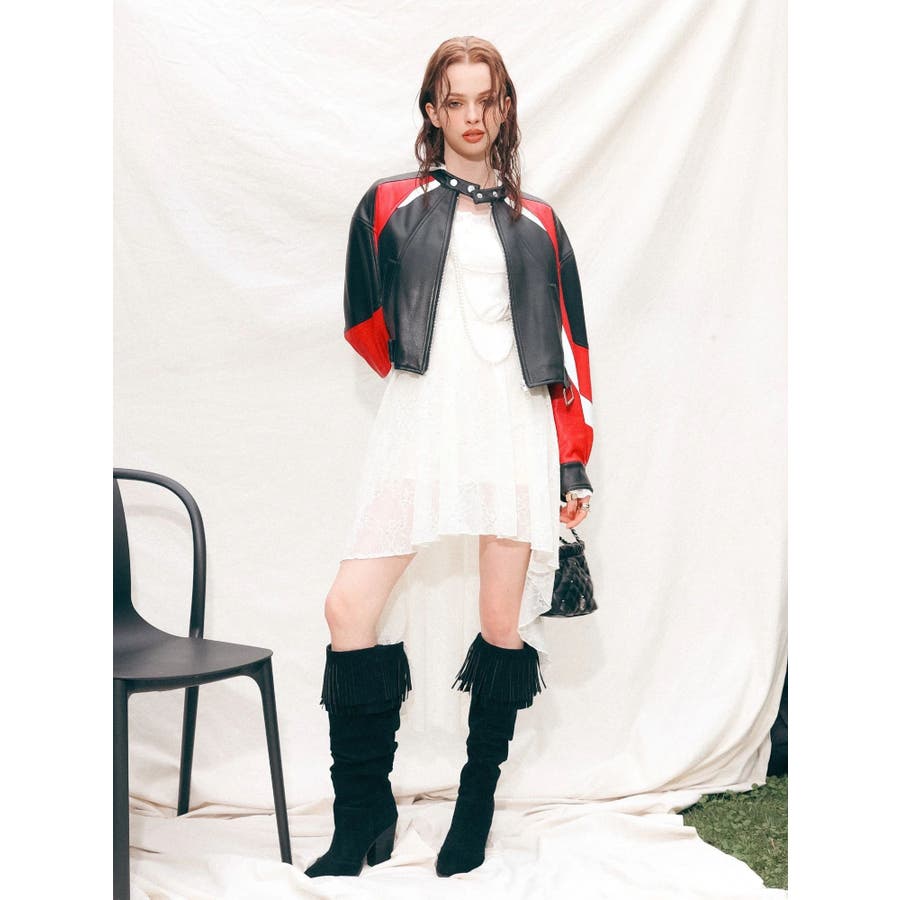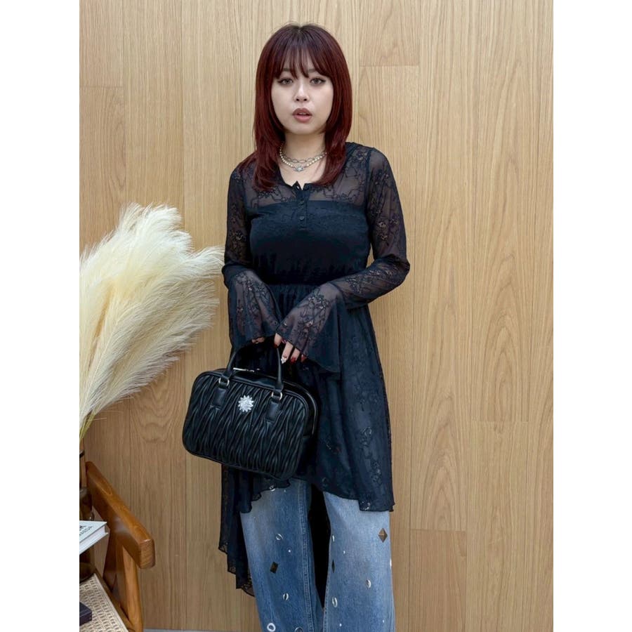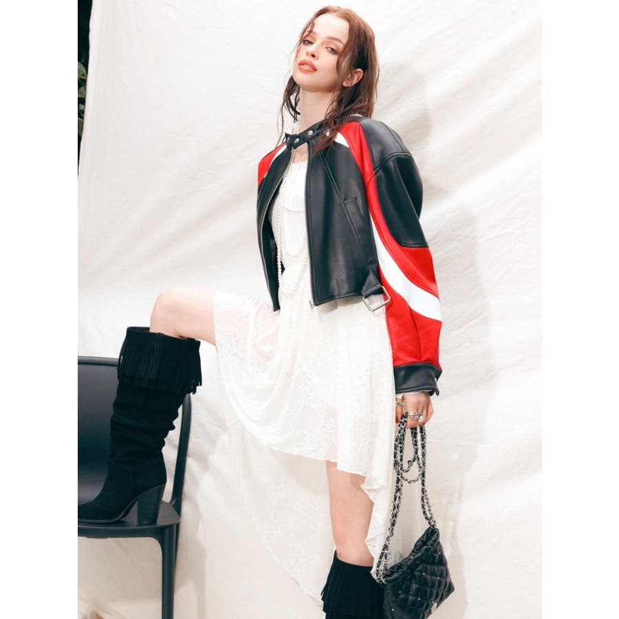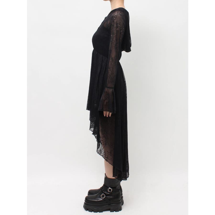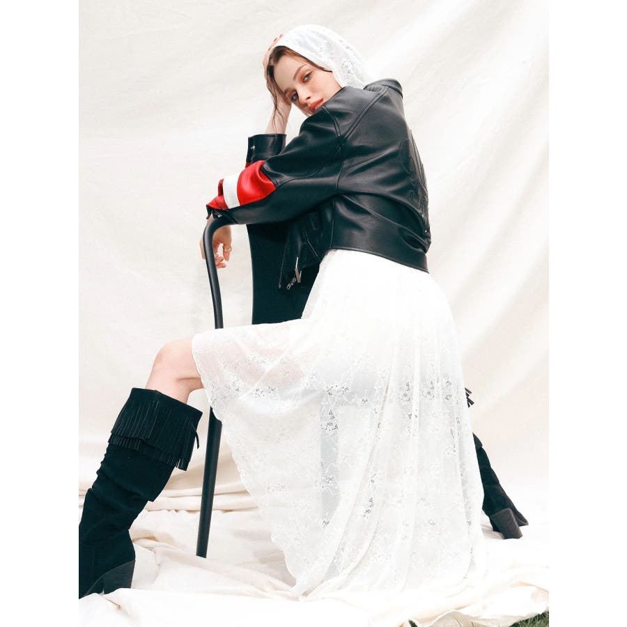 トレンドのフーディデザインのレースワンピースです。イレヘムになっており、後ろ側が長いデザインなので、スタイルアップ効果があります。インナーにベアワンピが付いており、1枚ではワンピース風に着用可能ですし、インナーにキャミソールやデニムをレイヤードしたスタイリングなども楽しめます。甘目のワンピースはエッジの効いたアウターやブーツなどと合わせるスタイリングがおすすめです。