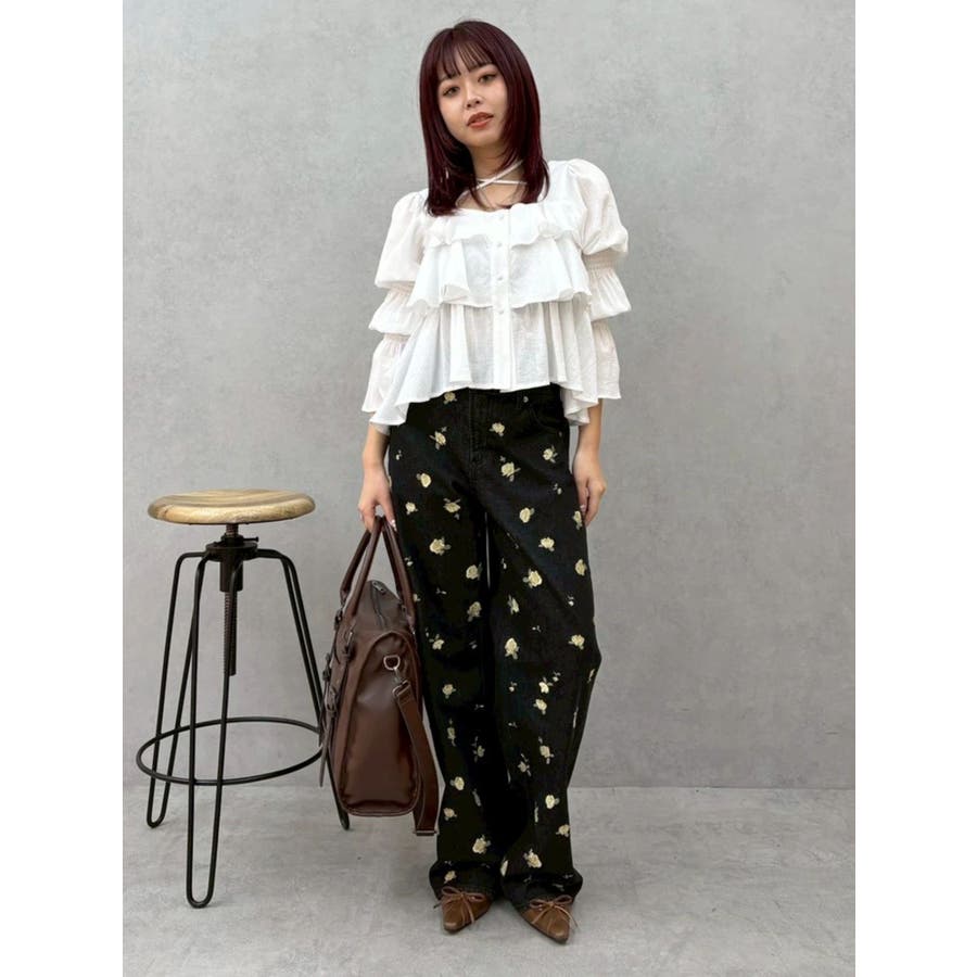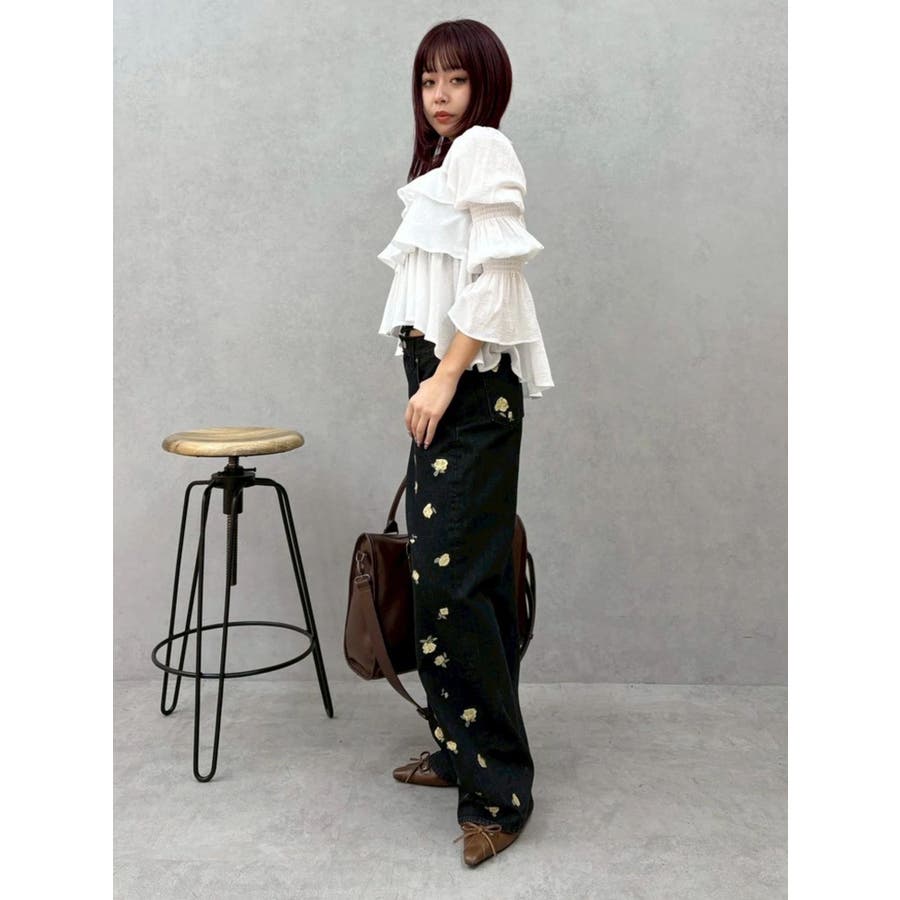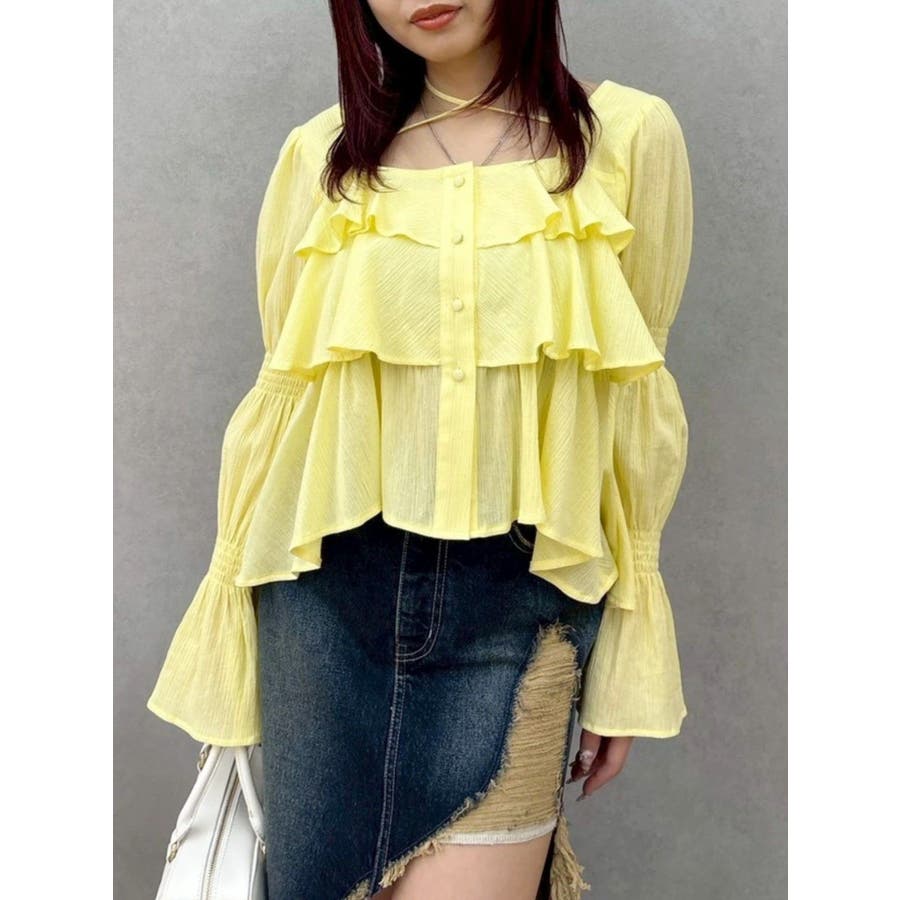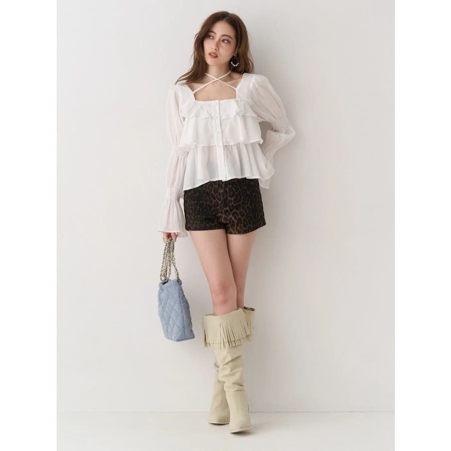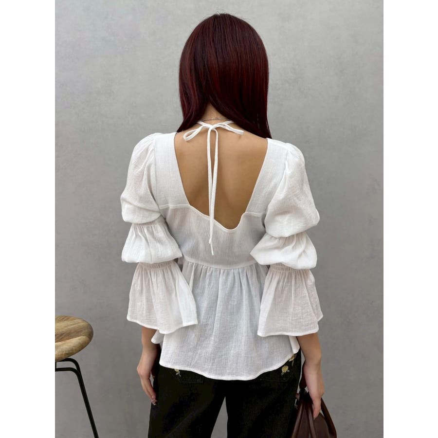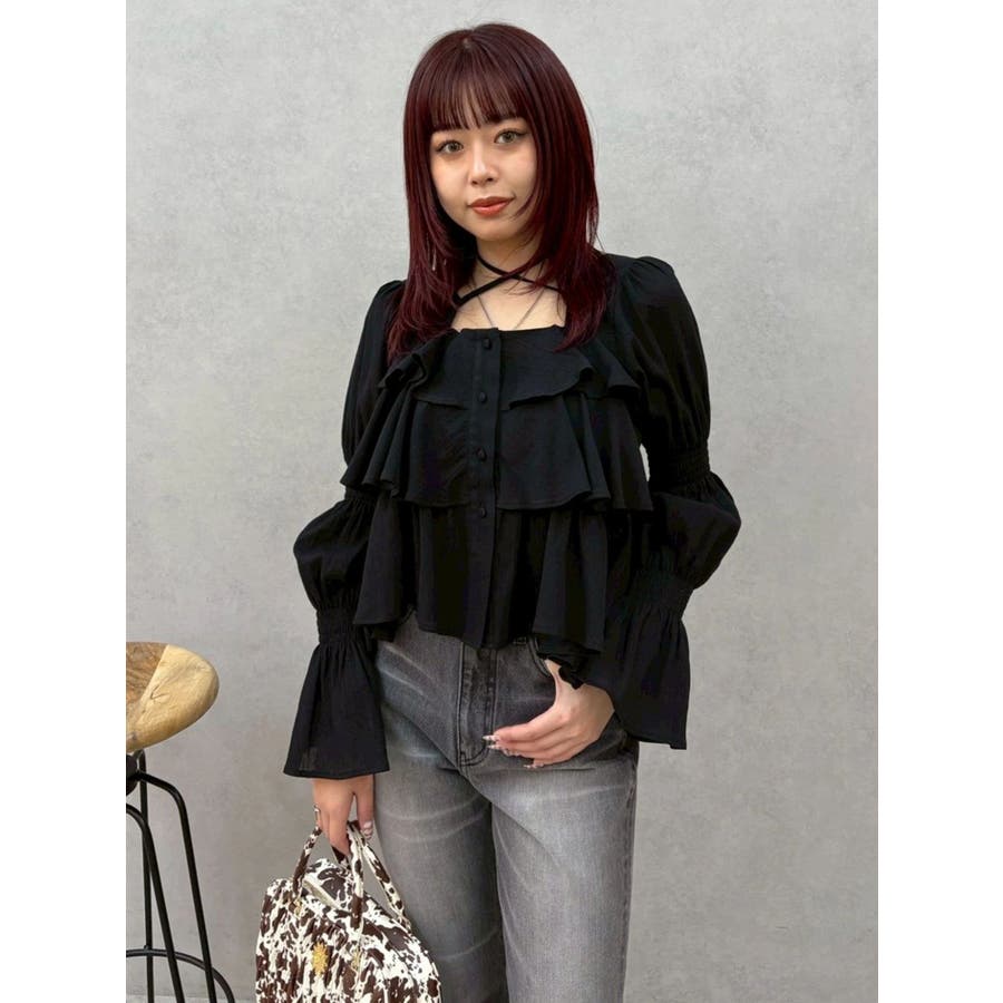 今季トレンドのBOHOスタイルにはかかせない甘めブラウスです。ラッフルとキャンディースリーブでガーリーデザインに仕上がっています。EVRISらしくホルターネックデザインを取り入れ、キャッチーな印象に仕上げています。デコルテ周りも広めに開いているので抜け感がありどんなボトムにも合わせやすいです。ミニボトム×ブーツのスタイリングが今季おすすめのスタイリングです。※サイズ感はYLWのサンプルが正しいです。