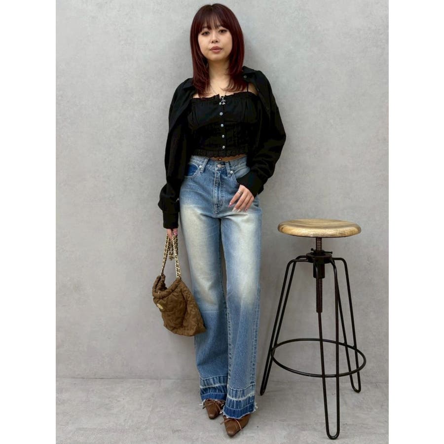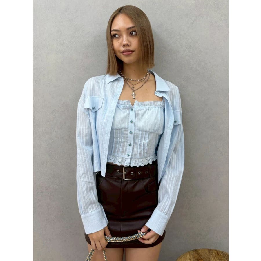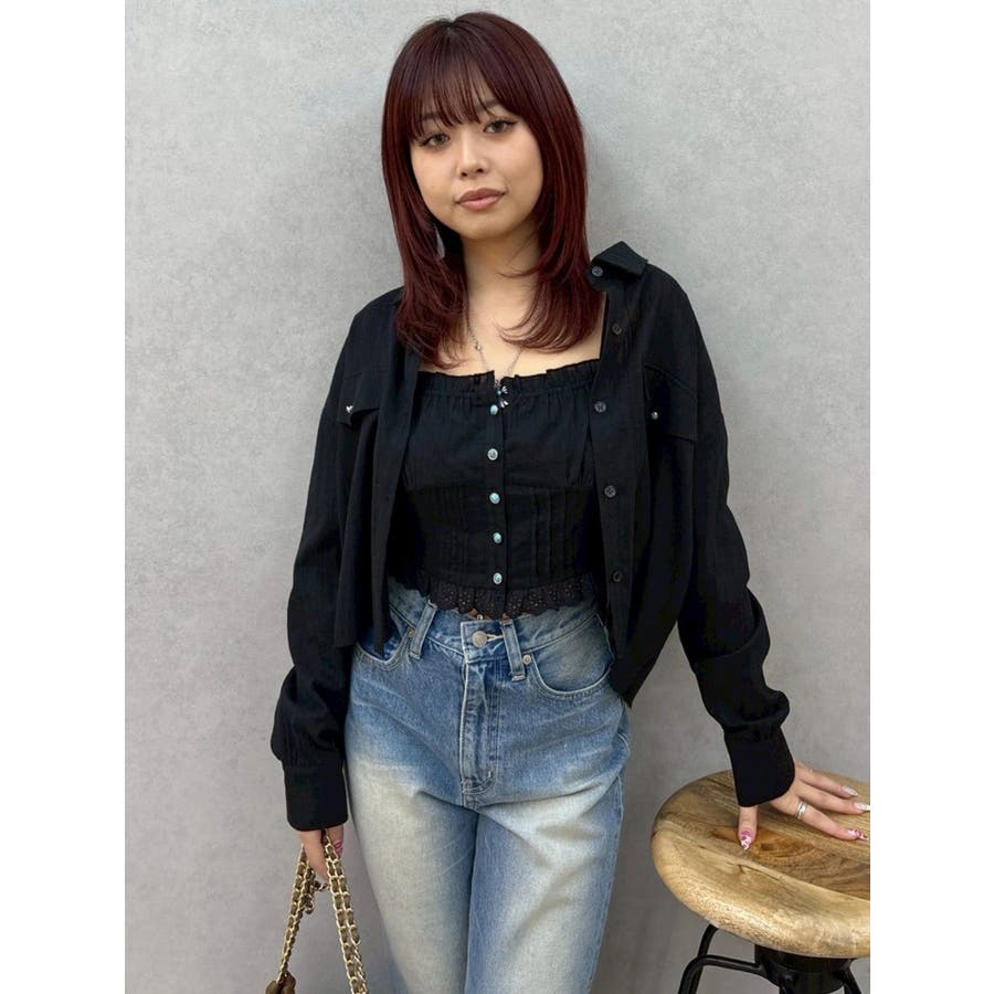 F: バスト[シャツ]116、[ビスチェ]最小78 最大110cm/着丈[シャツ]最小46 最大51、[ビスチェ]25cm/袖丈[シャツ]53cm/肩幅[シャツ]33cm