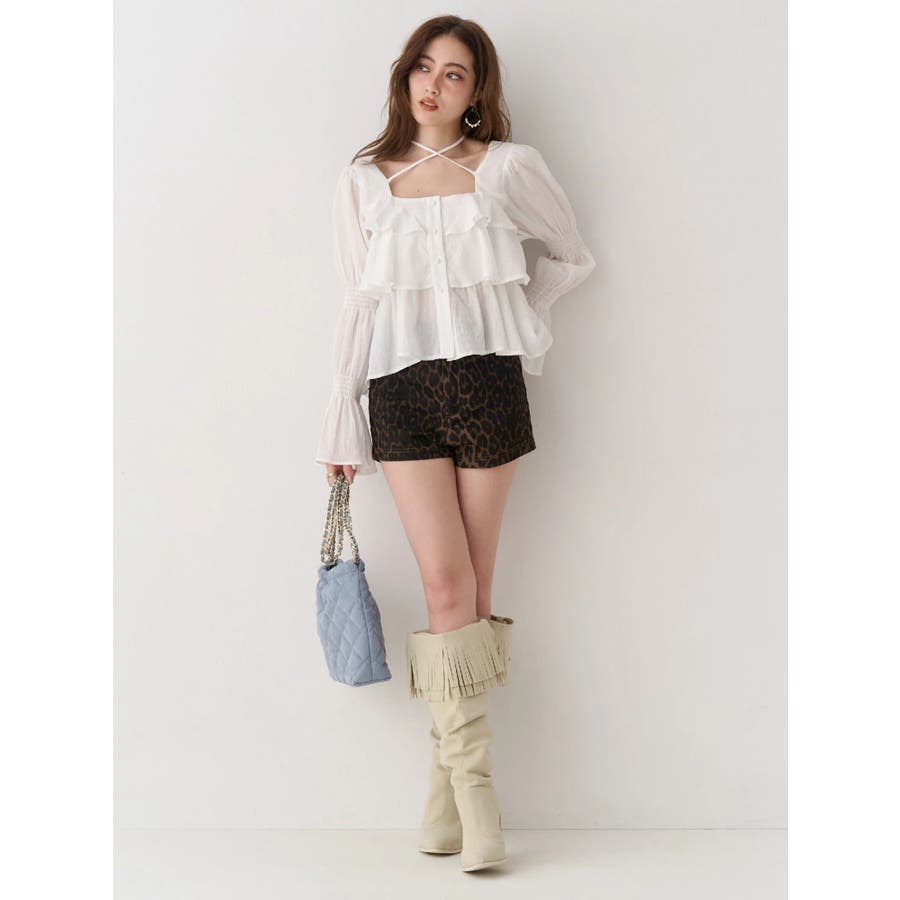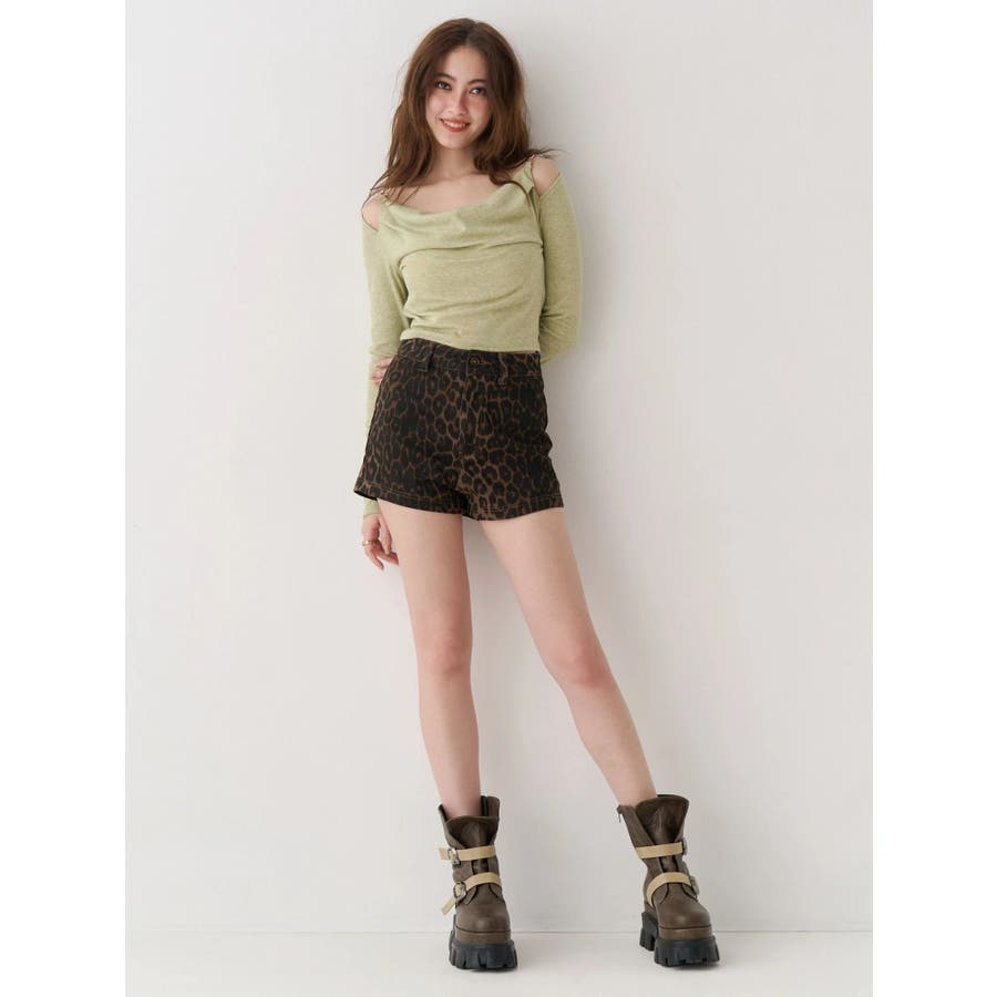 ストレッチ性のあるツイル生地を使用した、マイクロミニのショートパンツです。トレンドのマイクロミニは1枚着るだけでぐっと今っぽい雰囲気に仕上がります。あえて甘めのブラウスなどと合わせるスタイリングが今季おすすめのスタイルです。ミックスはレオパード柄の生地を使用しています。