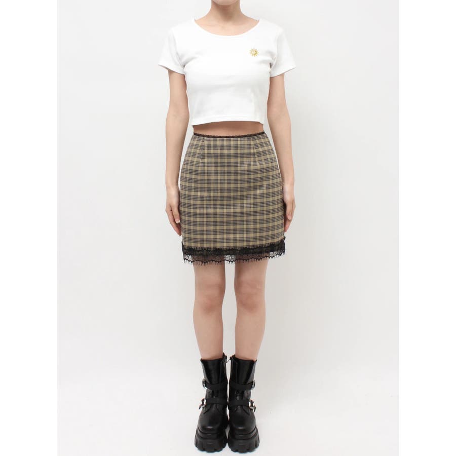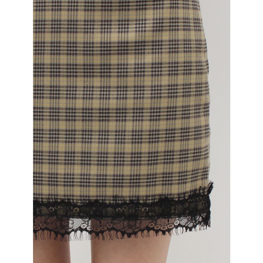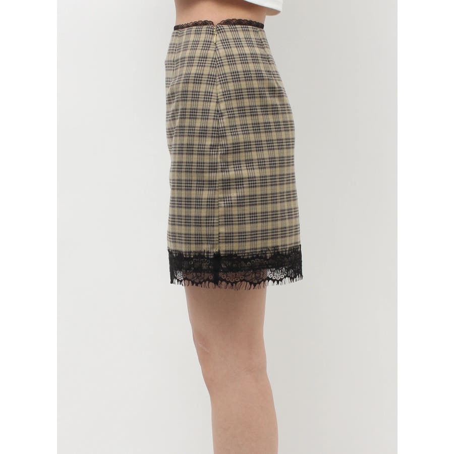 クラシックなチェック柄にレースディテールを効かせたミニスカート。ウエスト部分と裾にあしらった繊細なブラックレースが、甘すぎずエッジのあるアクセントに。セットアップ対応の同素材ビスチェとのコーディネートもおすすめ。コンパクトな丈感で、カジュアルにもモードにも振れる着回し力の高いアイテムです。