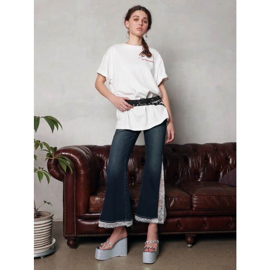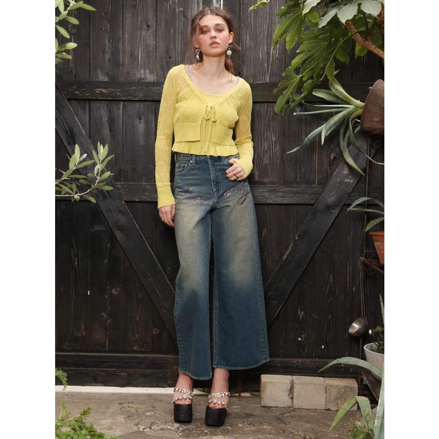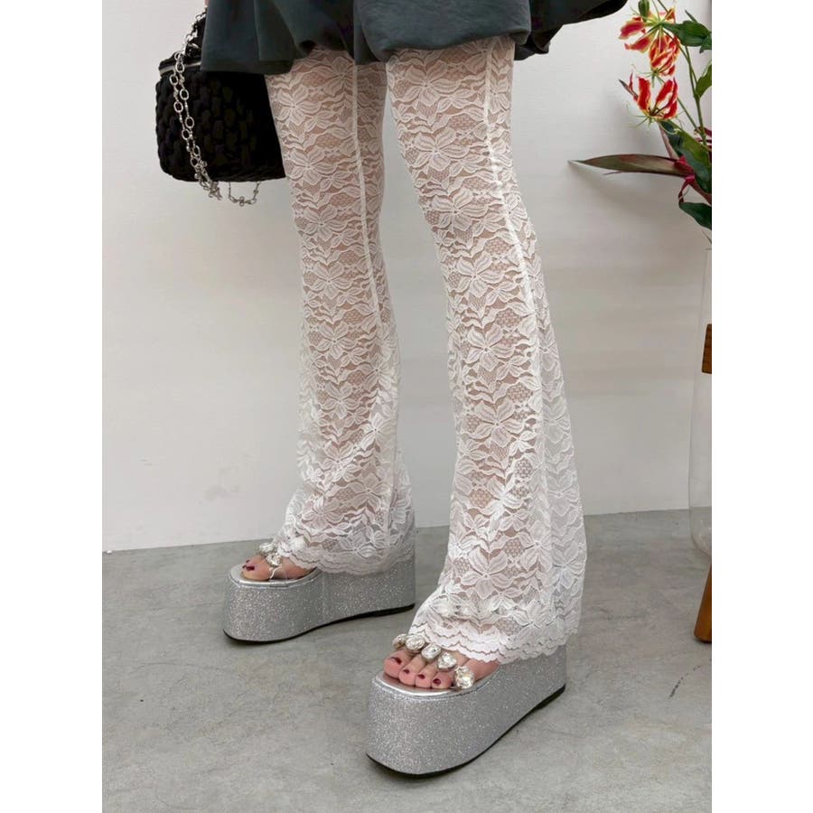 裾からビジューをチラ見せするだけでも印象的な足元に◎