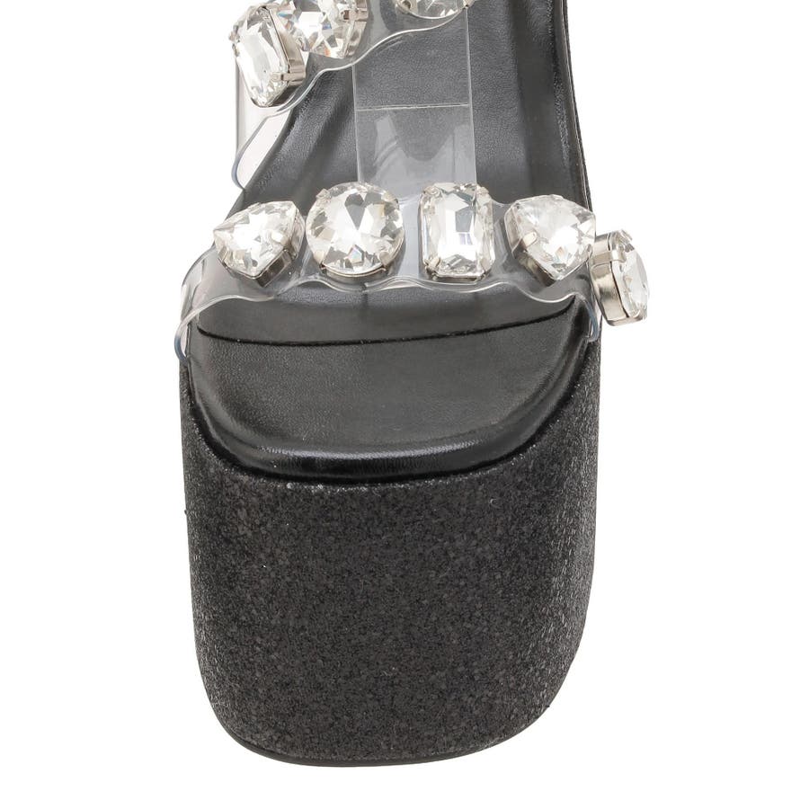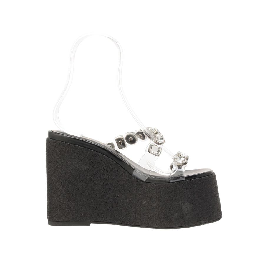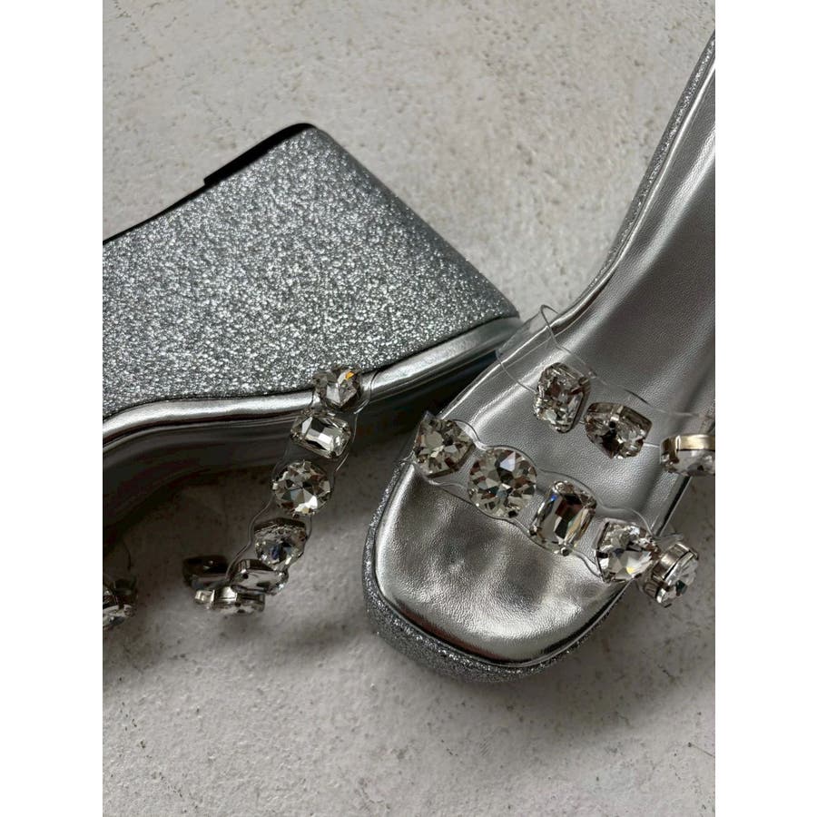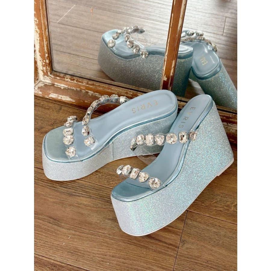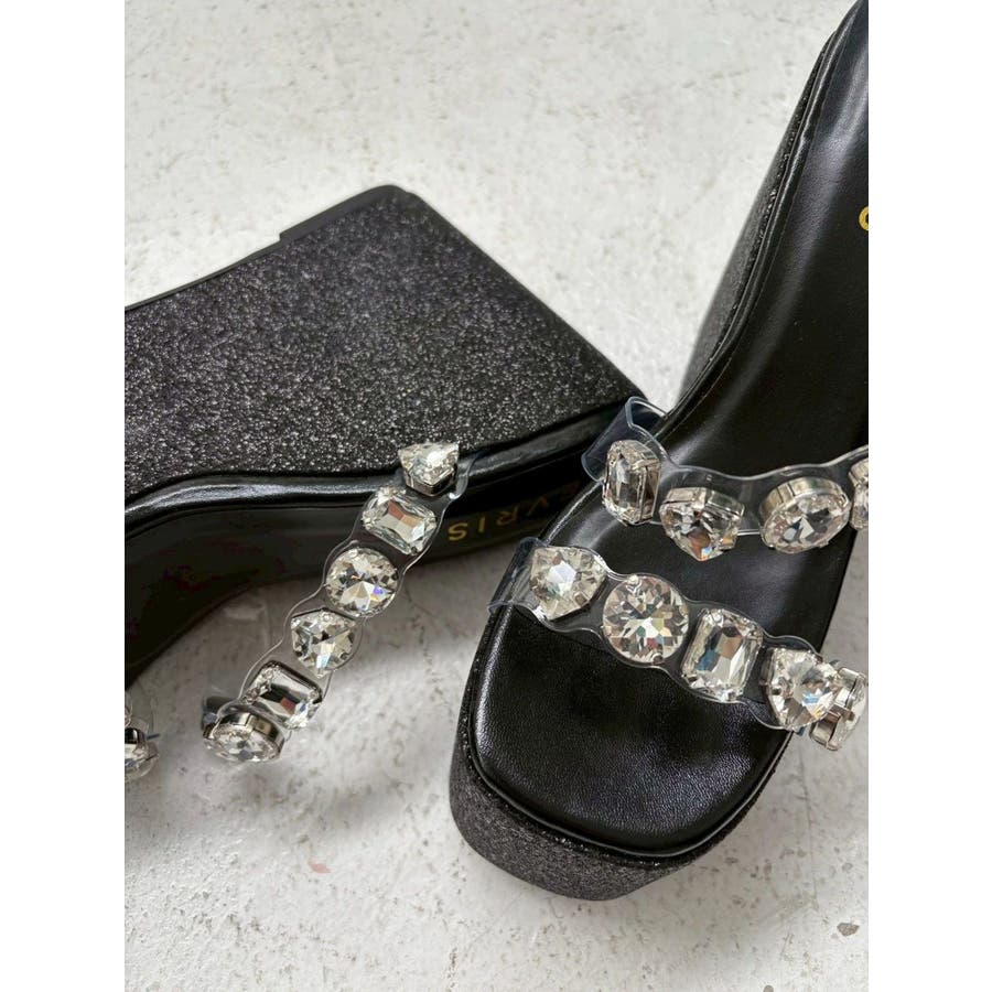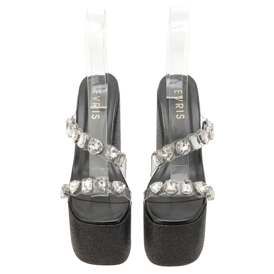 大粒のビジューとラメの素材でインパクト大なEVRISにしかないデザインのサンダルです。