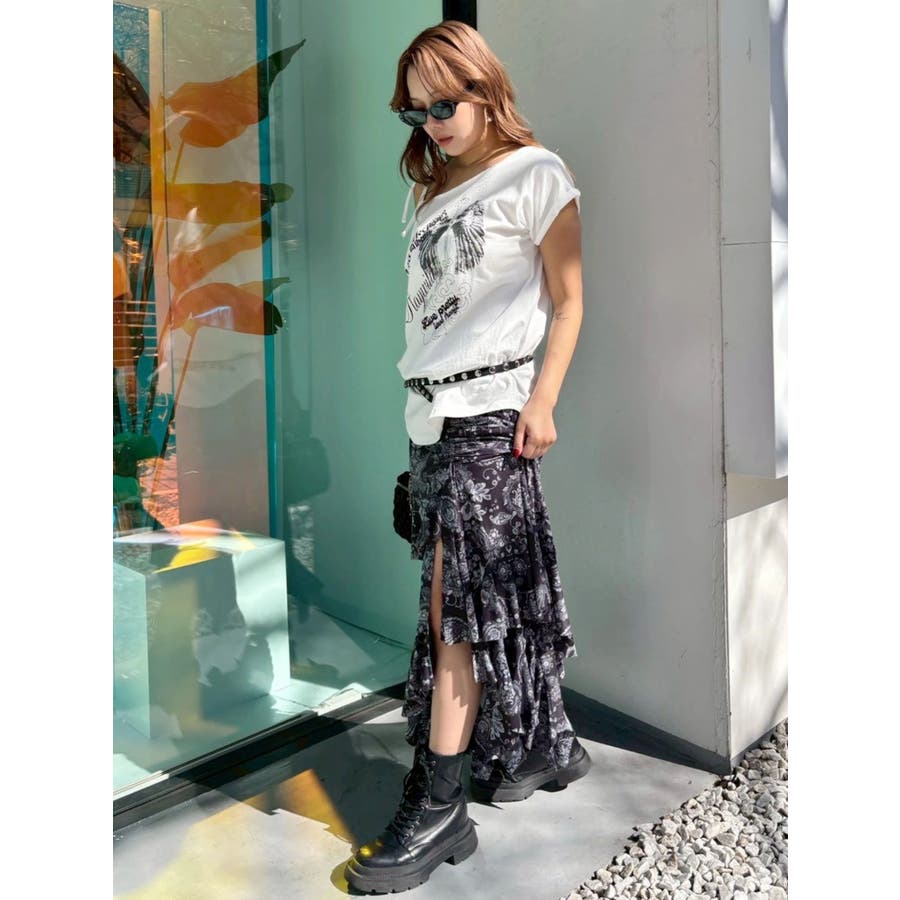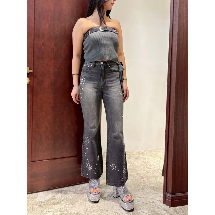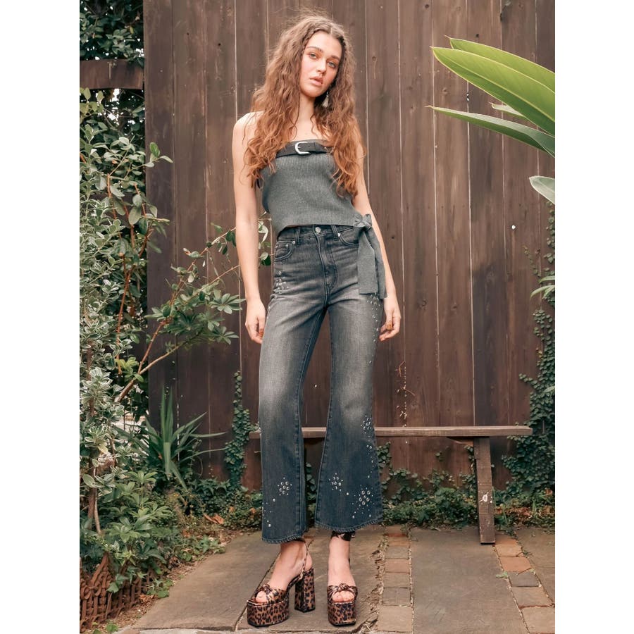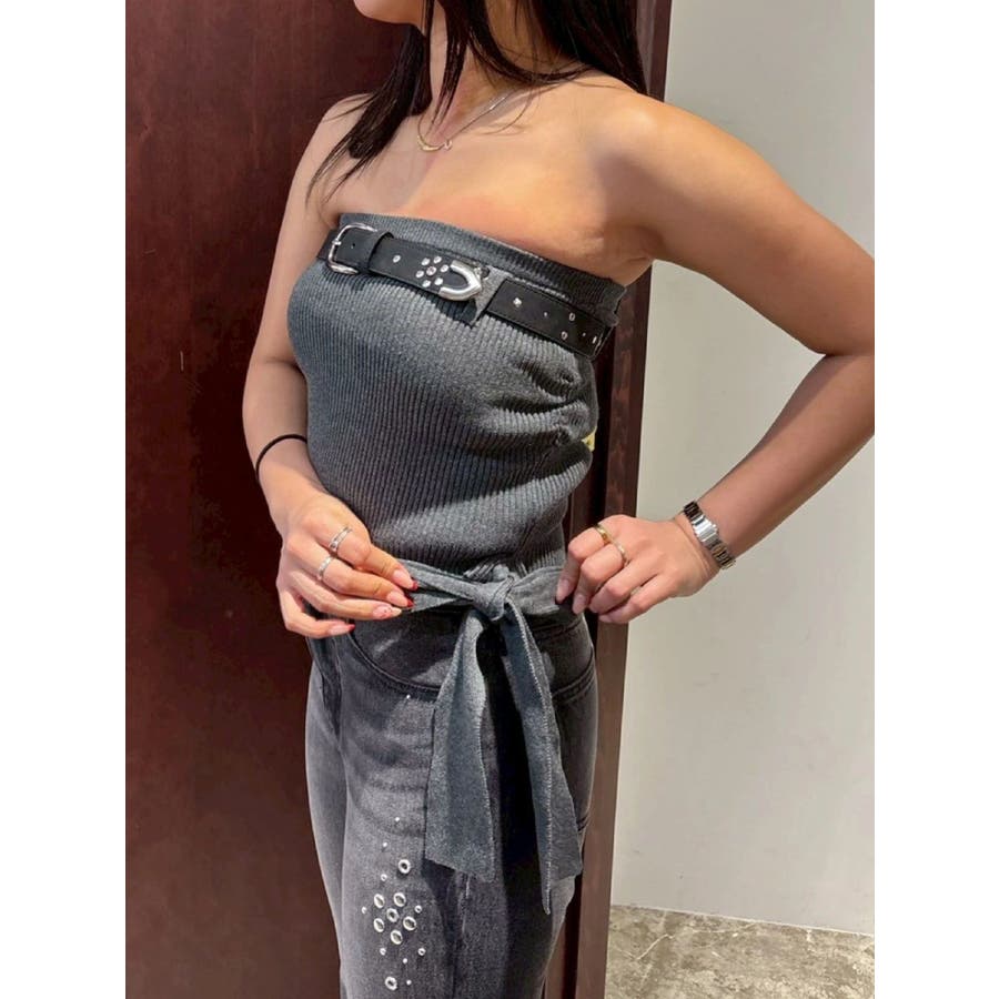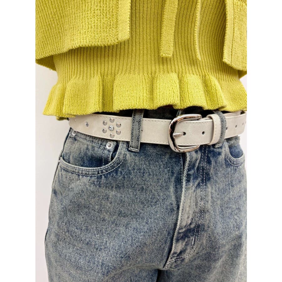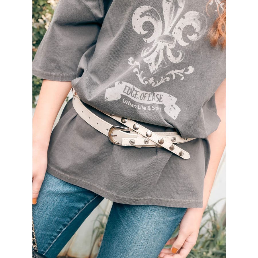 細身ベルトと通常幅ベルトの2本セットのオリジナルデザインのベルトです。スタッズはすべて手打ちによるハンドメイド仕様で1点1点表情のある仕上がりです。太幅ベルトはデザインからスタッズ配置までこだわったスタイリングのアクセントとして活躍するベルト。ウエスト使いはもちろん、ベアトップやデニムオールインワンなどバスト位置に着用する新しいスタイリングもおすすめです。