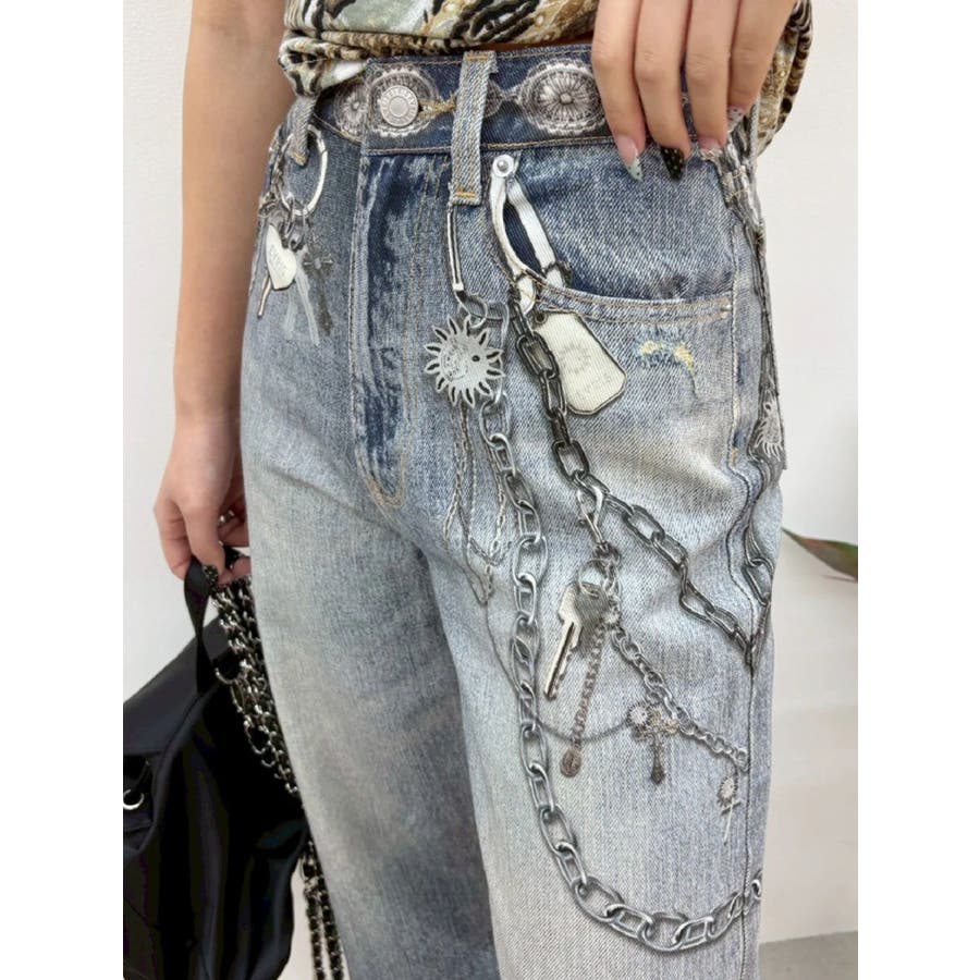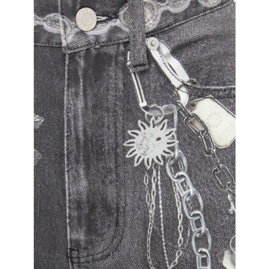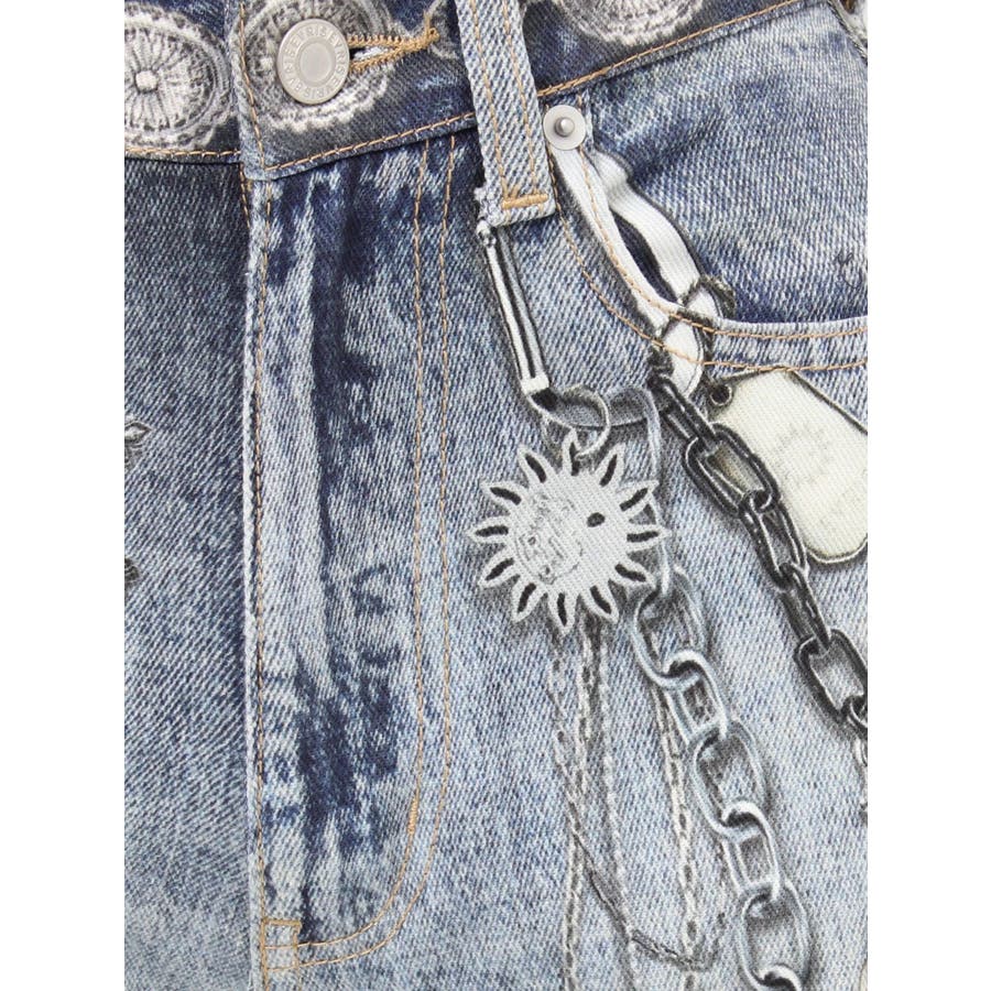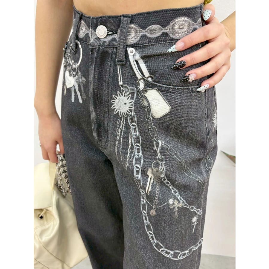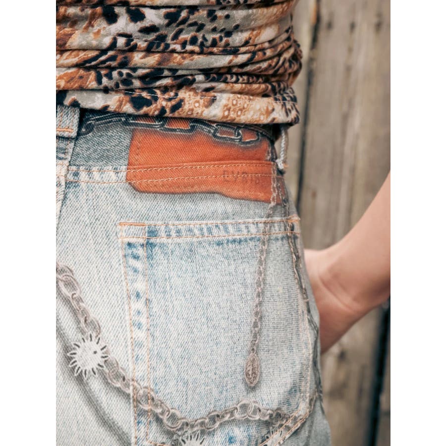 ■デザイン デニム風のプリントを施したインパクトのあるワイドパンツ。デニムやチャームなど全てEVRISオリジナルのグラフィックを入れているため他にはない1枚に仕上がっています。プリントの色はデニムのカラーごとに変えているのもポイント。デニム素材ではないため、軽めの素材で夏にも履きやすい生地感です。■スタイリング シンプルなトップスを合わせるだけでも主役級に仕上がるボトム。柄物やカラーアイテムとの相性も抜群でオシャレな格上げコーディネートが完成します。-------------- 透け感:なし 裏地:なし 生地の厚み:普通 伸縮性:なし --------------