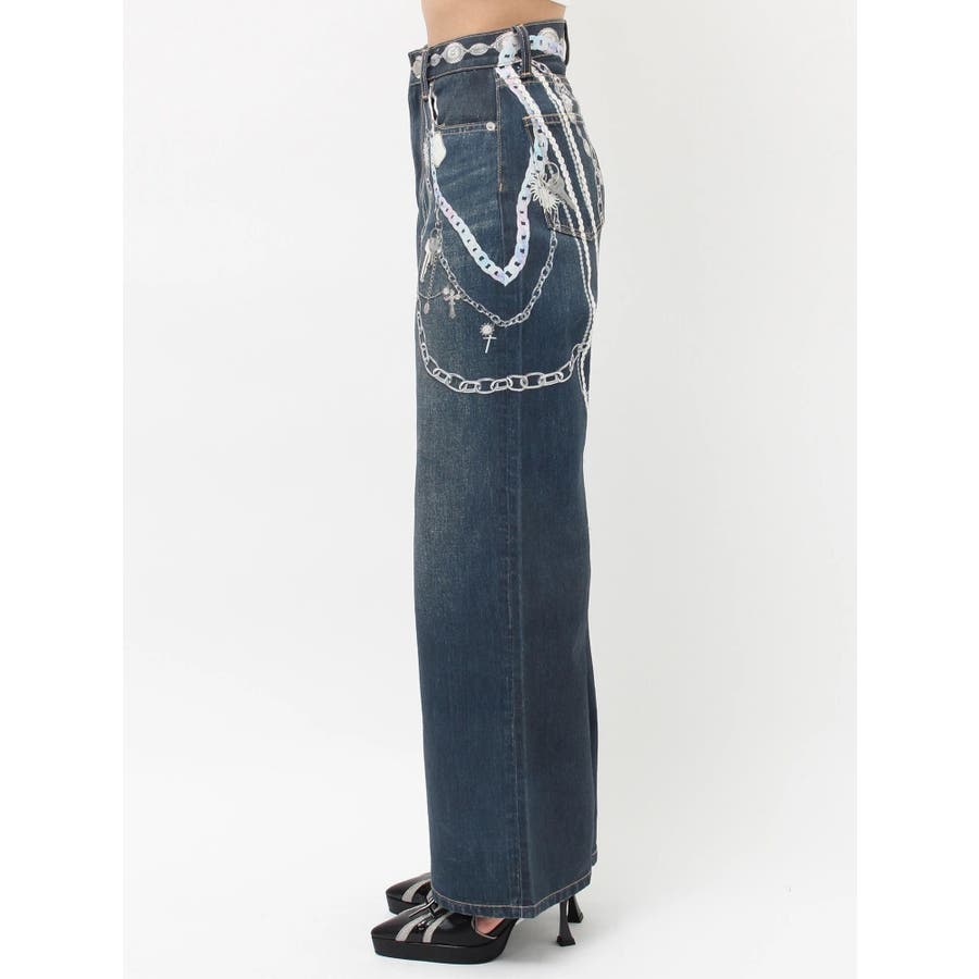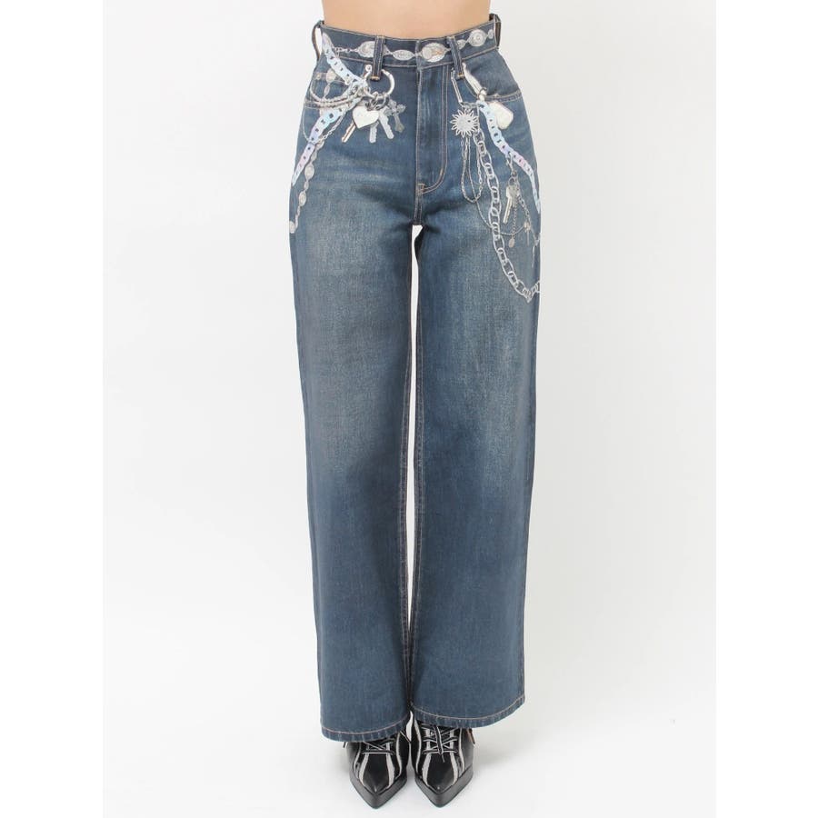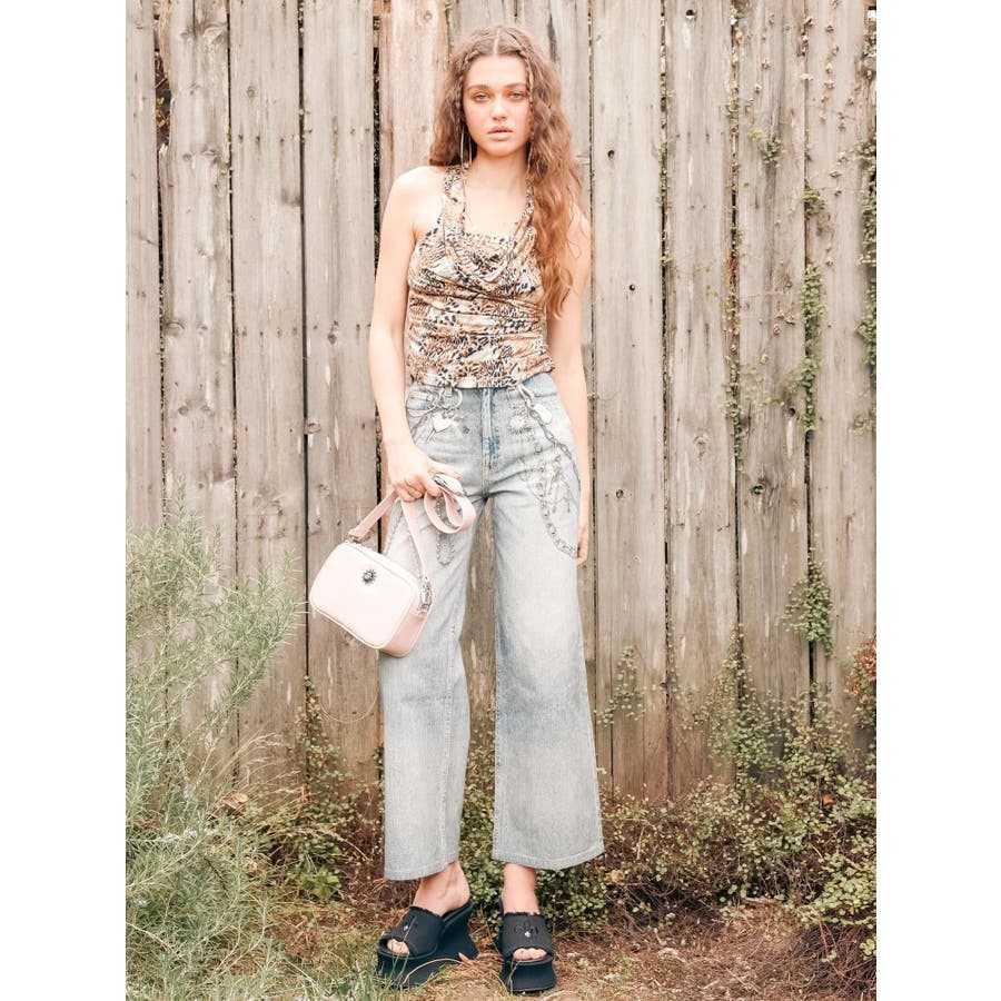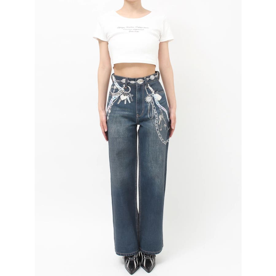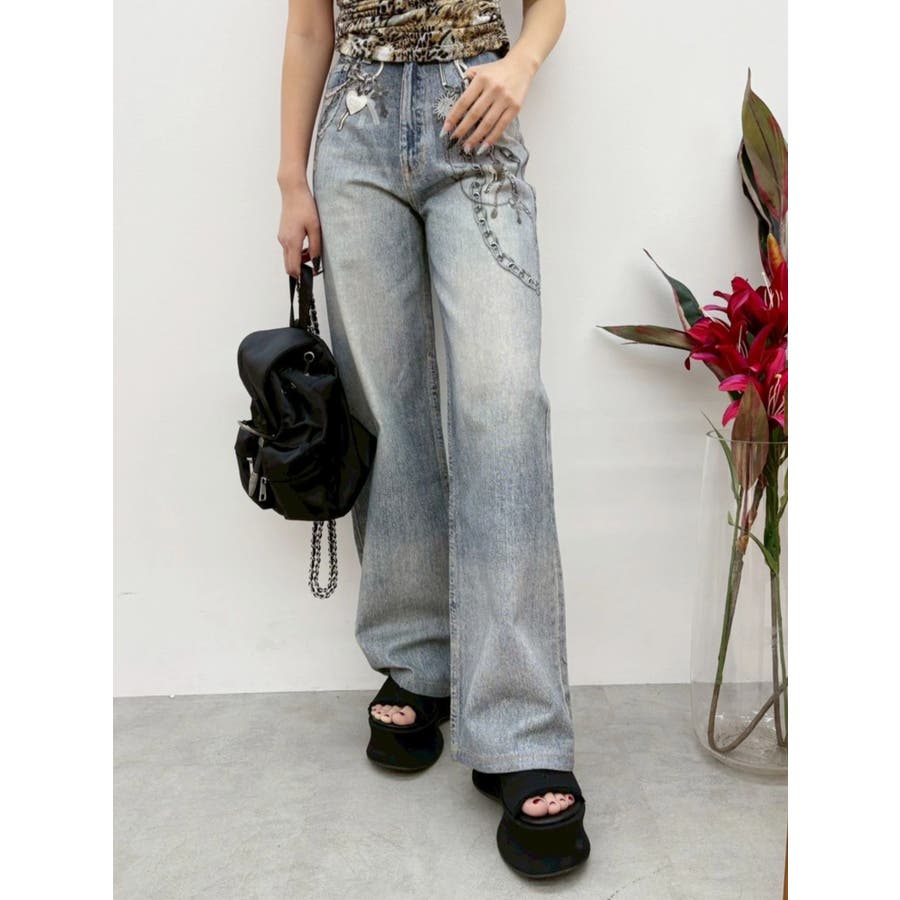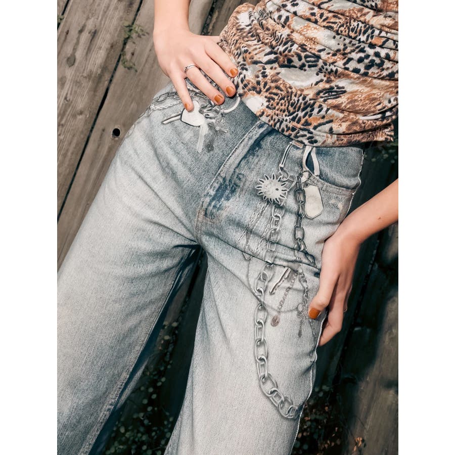 ■デザイン デニム風のプリントを施したインパクトのあるワイドパンツ。デニムやチャームなど全てEVRISオリジナルのグラフィックを入れているため他にはない1枚に仕上がっています。プリントの色はデニムのカラーごとに変えているのもポイント。デニム素材ではないため、軽めの素材で夏にも履きやすい生地感です。■スタイリング シンプルなトップスを合わせるだけでも主役級に仕上がるボトム。柄物やカラーアイテムとの相性も抜群でオシャレな格上げコーディネートが完成します。-------------- 透け感:なし 裏地:なし 生地の厚み:普通 伸縮性:なし --------------