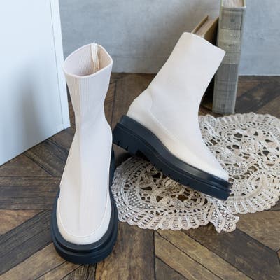 【タンクソールニットショートブーツ】