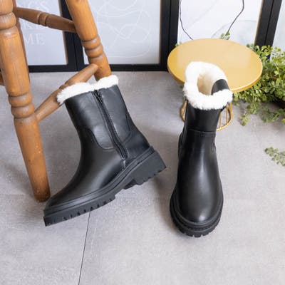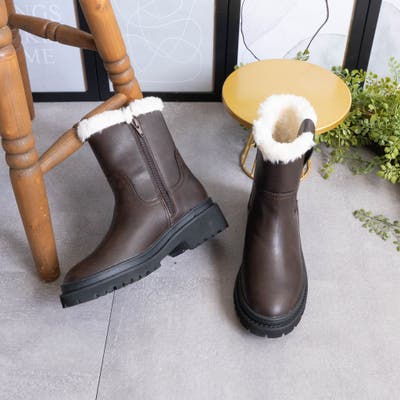 履き口の内側にふんわりボアをあしらった、あたたかさとすっきり感を兼ね備えたショートブーツ。