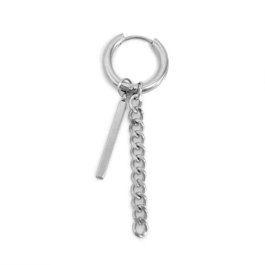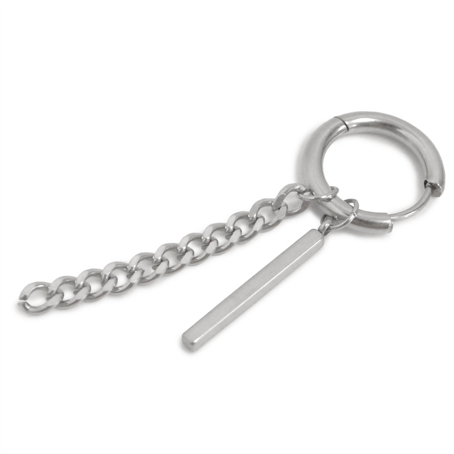片耳メタルバーチェーンステンレスピアス フープ シルバー