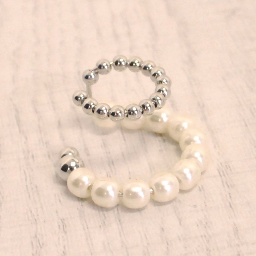 片耳用パールメタルダブルリングイヤーカフ ノンホールピアス イヤリング