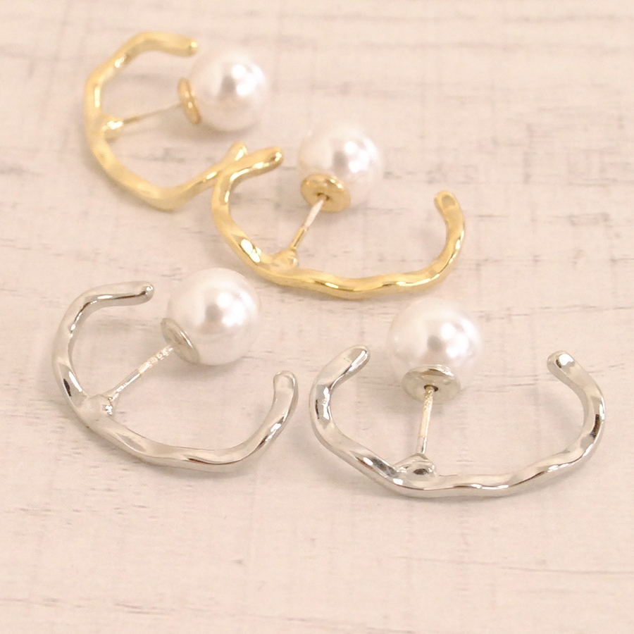 艶のあるバックキャッチパールをあしらったモード感あるデザインは、フォーマルなスタイルからカジュアルなスタイルにまで幅広くマッチしてくれます★