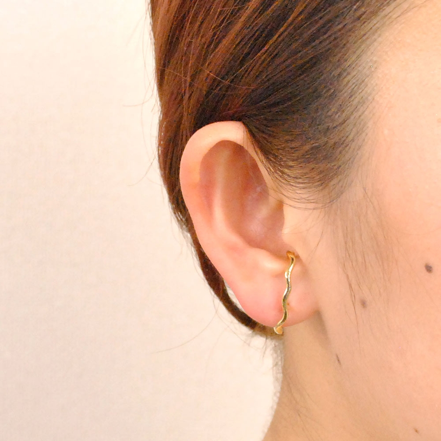 イヤーカフ風変形メタルラインピアス シルバー ゴールド