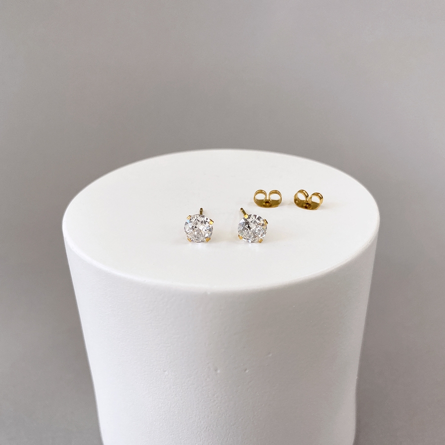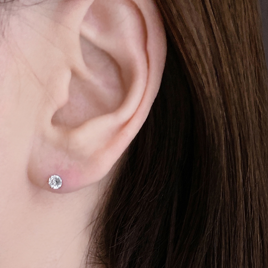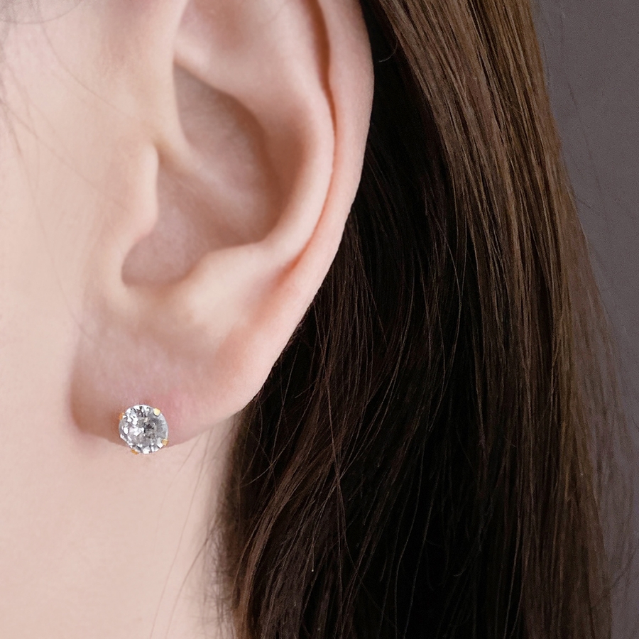 繊細かつ上品な輝きが顔周りを華やかに彩る一粒ジルコニアピアス♪