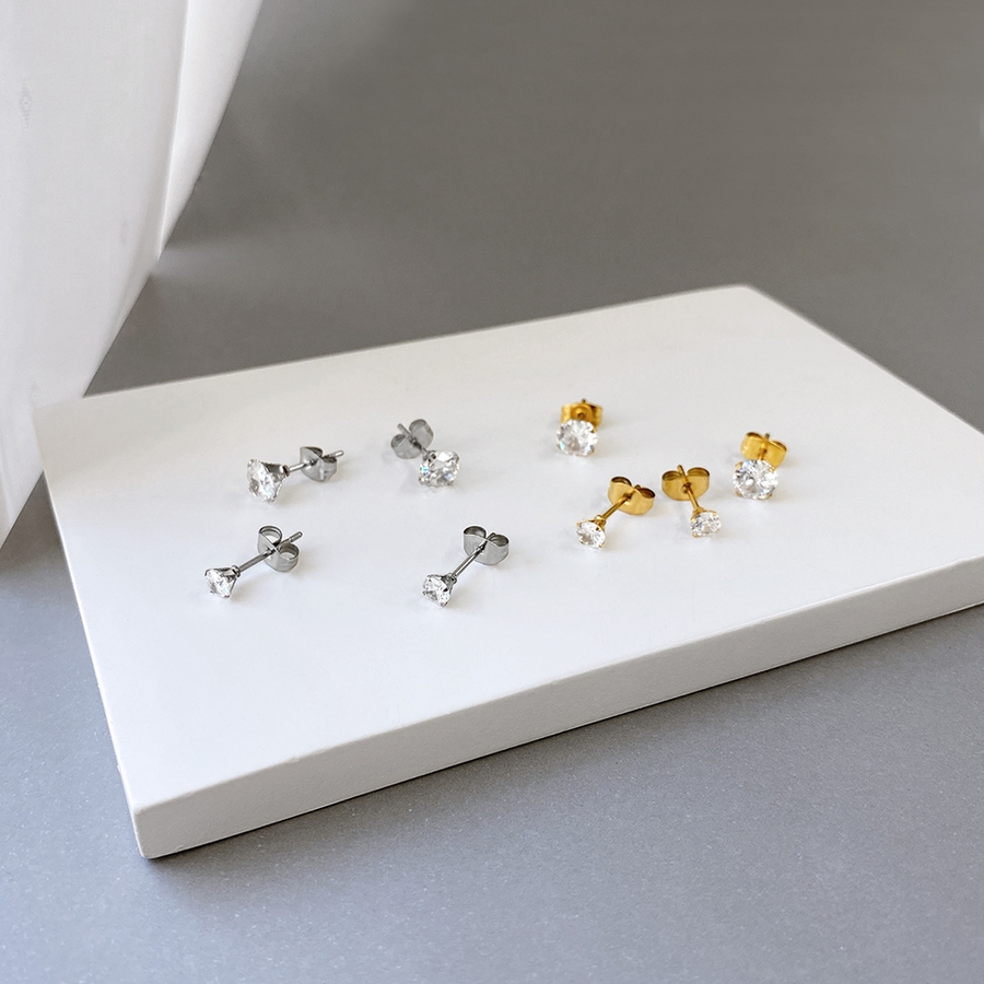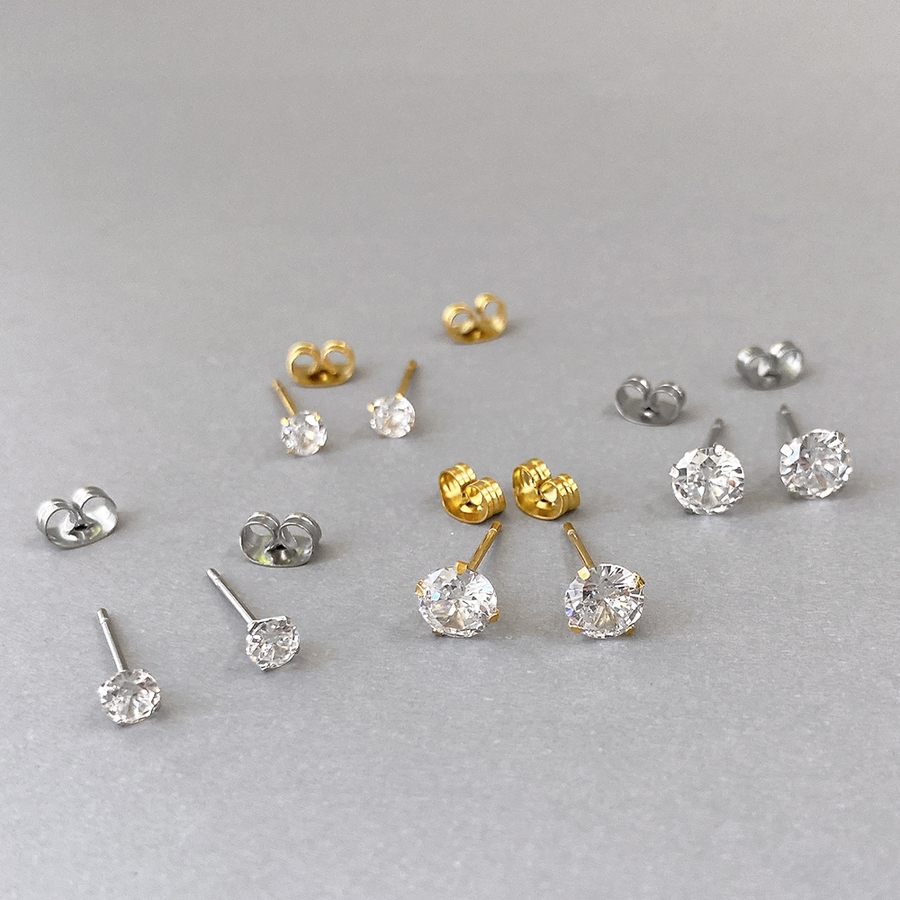 1粒キュービックジルコニアステンレスピアス SUS316Lアレルギーフリープチプ…