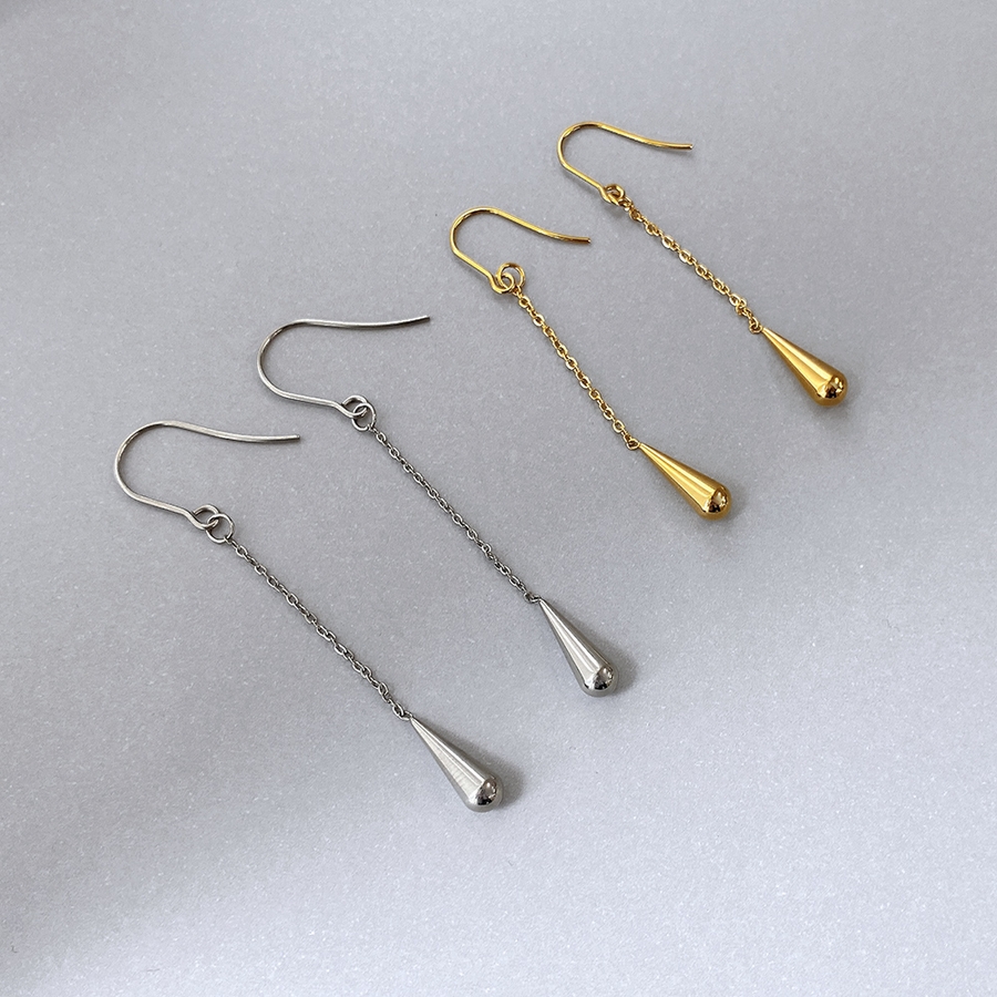 ゆらゆら揺れる、ドロップフォルムのアメリカンチェーンピアス◎