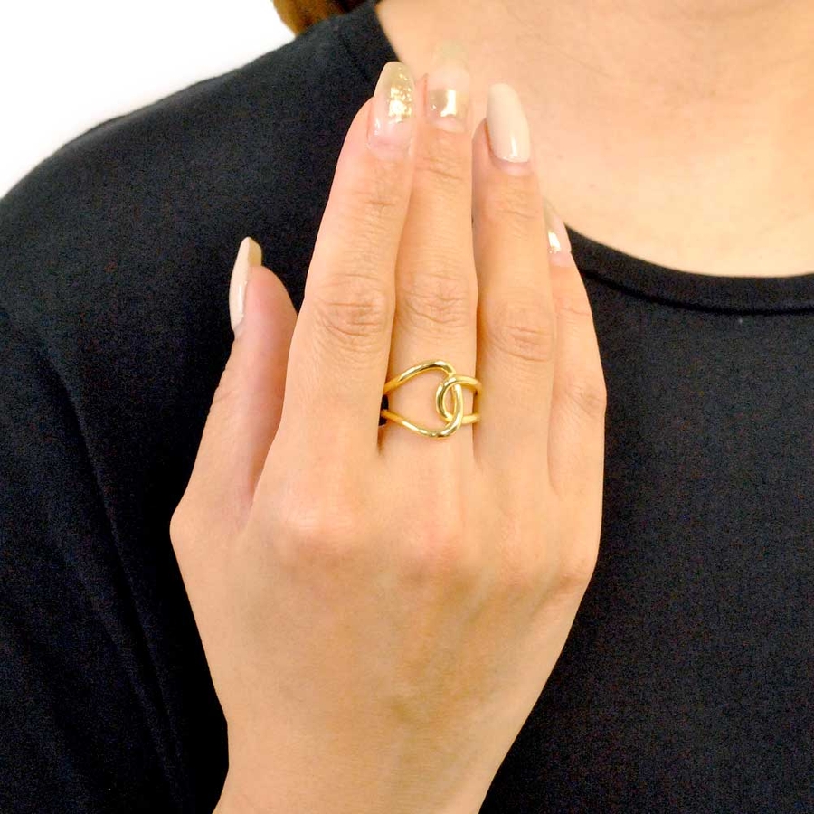 交差し合うアシンメトリーのメタルフォルムがこなれ感のあるニュアンスリング♪