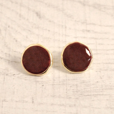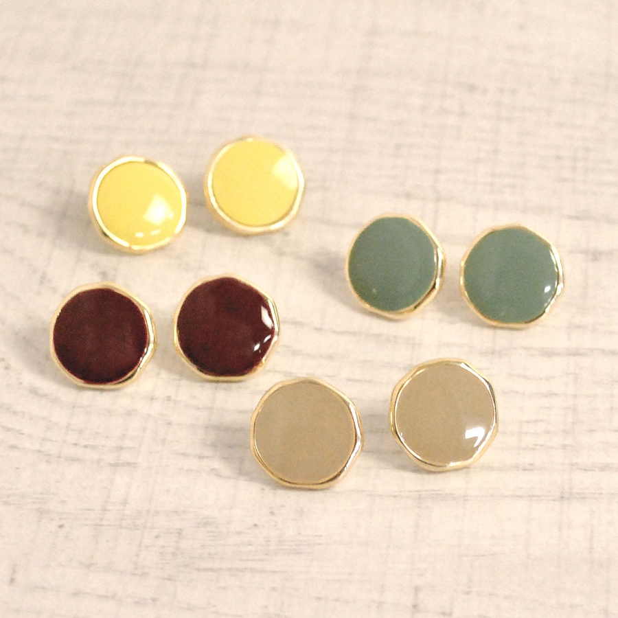 肌馴染みの良い落ち着いたカラーのエナメルプレートピアス♪