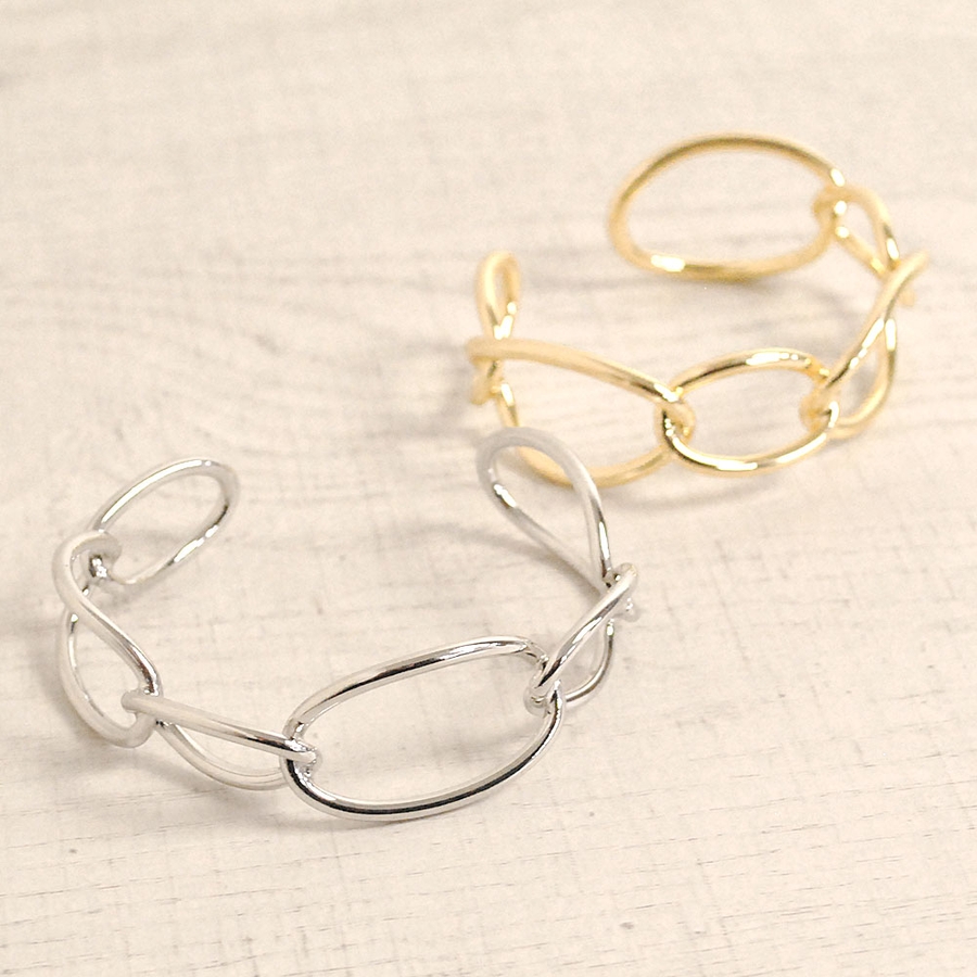 オーバルチェーンカフバングルブレスレット シルバーゴールドメタル ブレス