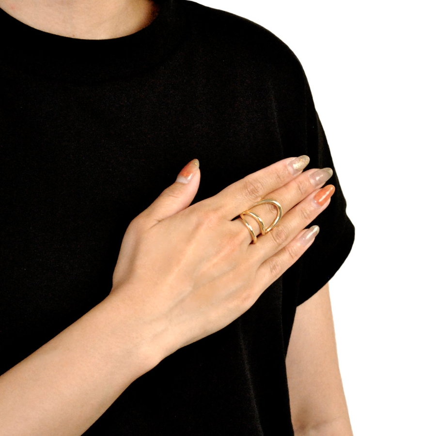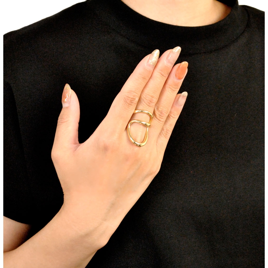 ニュアンスループラインメタルリング 指輪 シルバーゴールド変形個性的