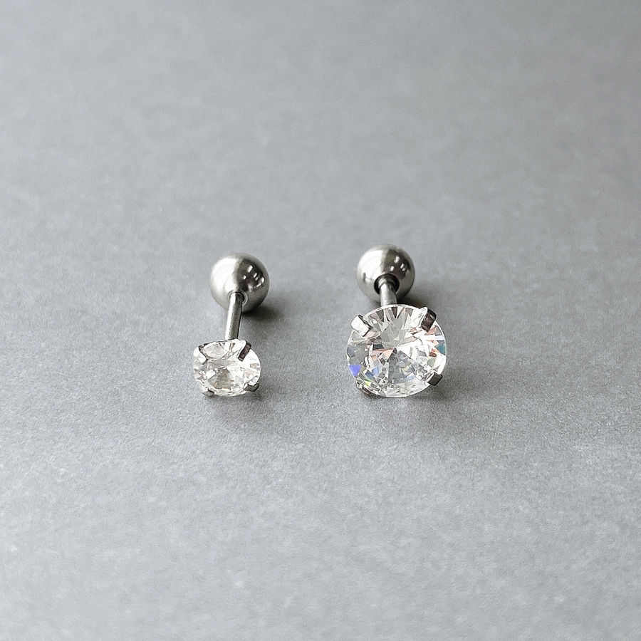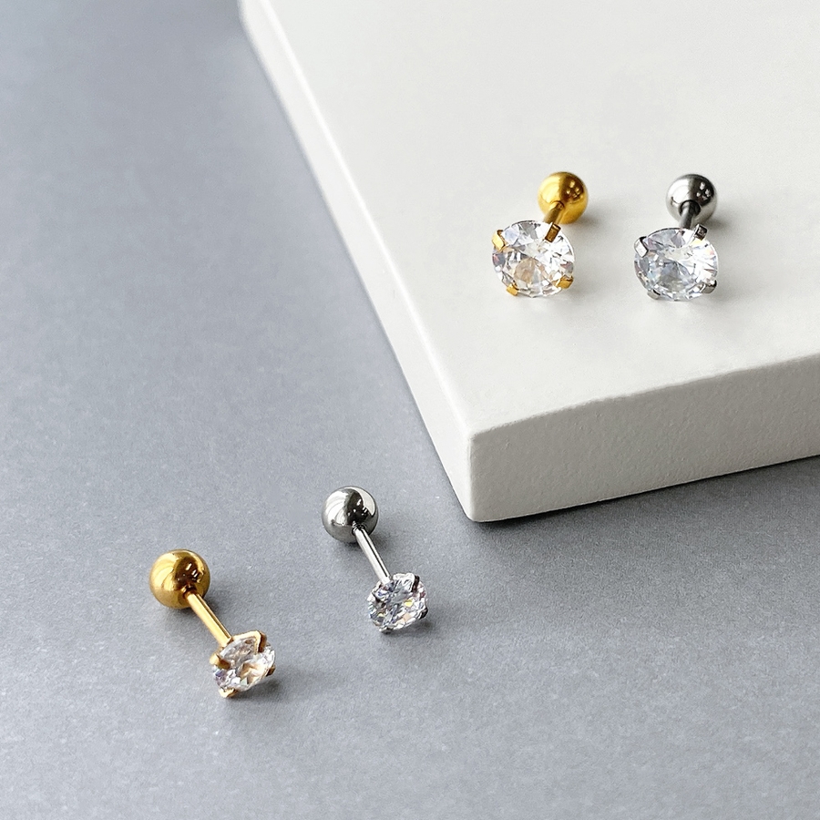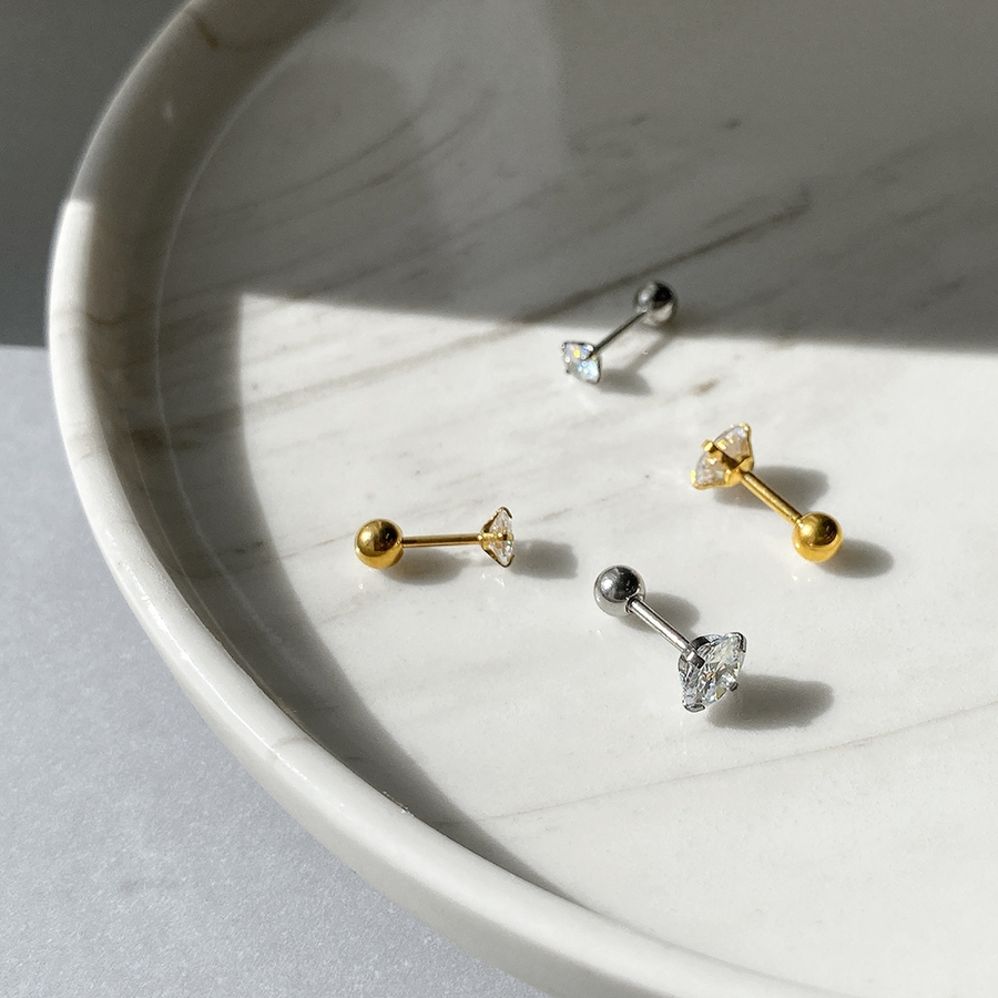 ステンレスCZバーベルボディピアス 軟骨ピアス 片耳用