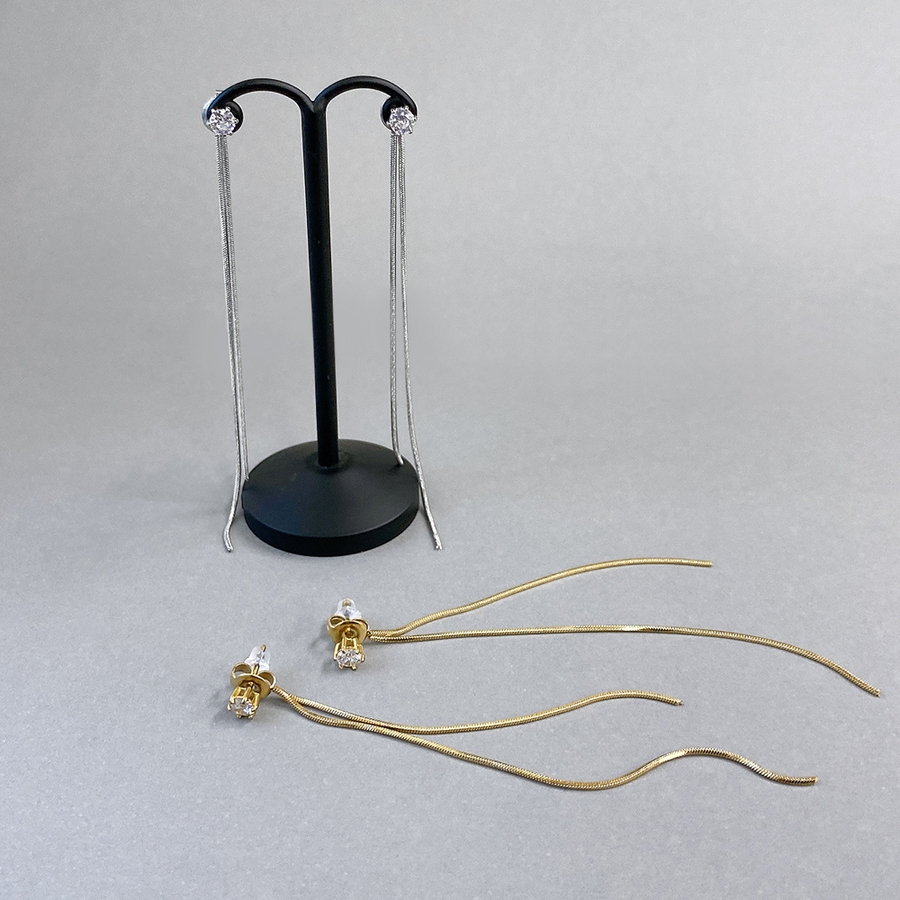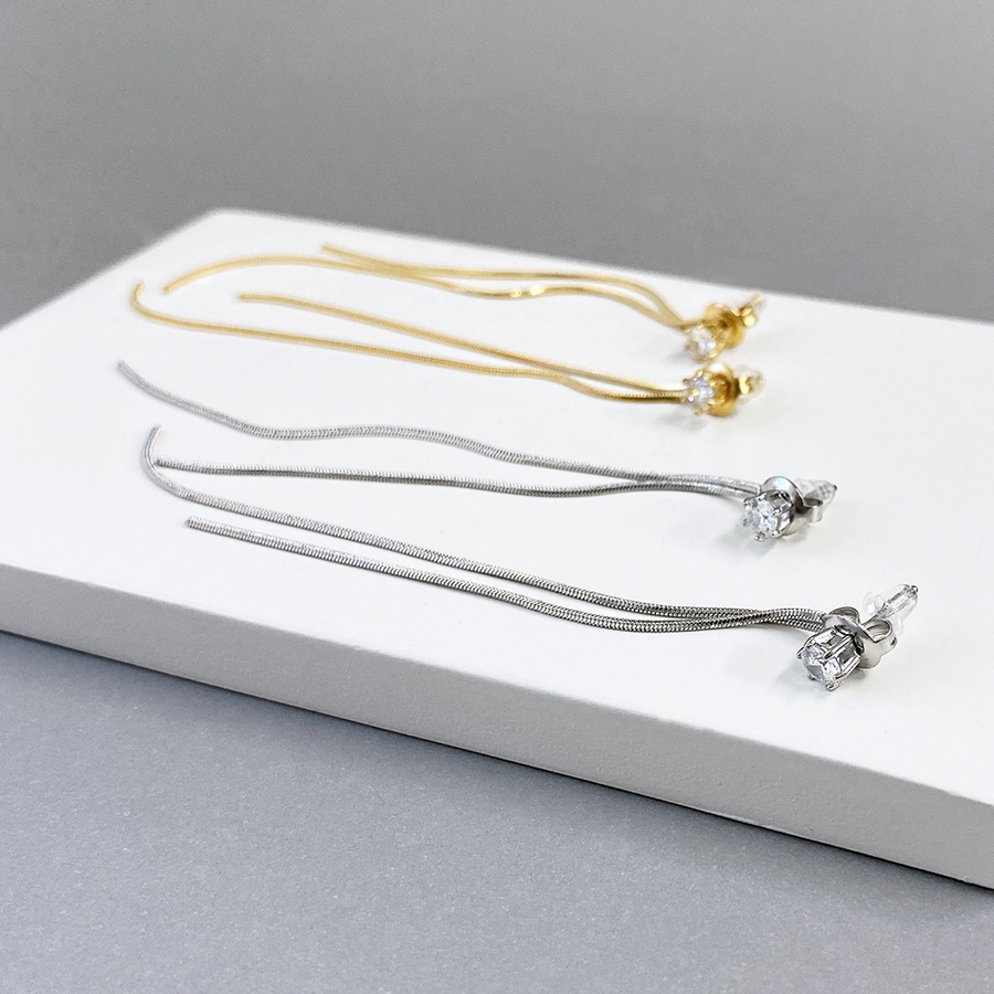 上品な輝きのジルコニアストーンをあしらったラインチェーンピアス☆