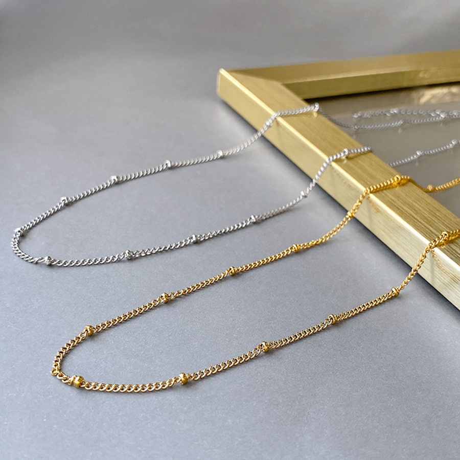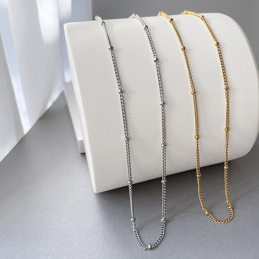 等間隔に丸玉メタルを施したデザインが特徴のスリムショートチェーンネックレス♪