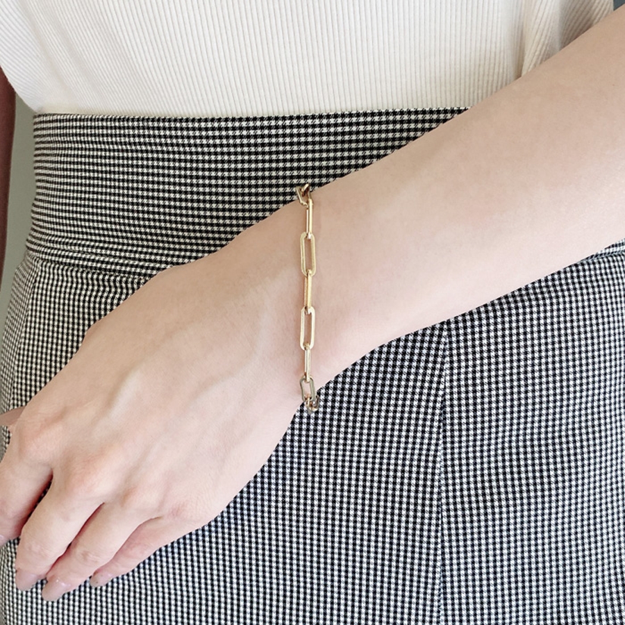 縦長の輪っかデザインが特徴的なレオンチェーンブレスレット♪