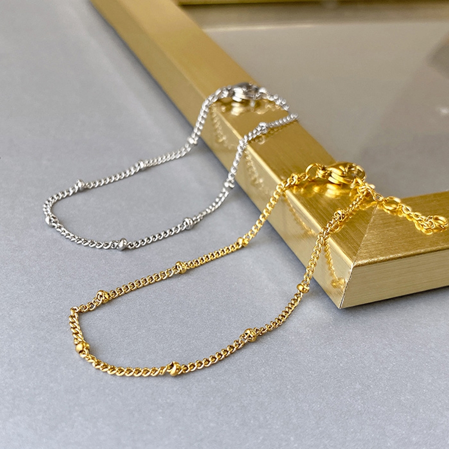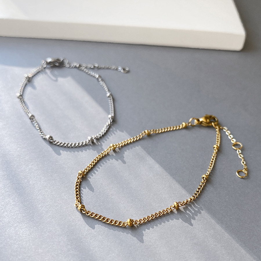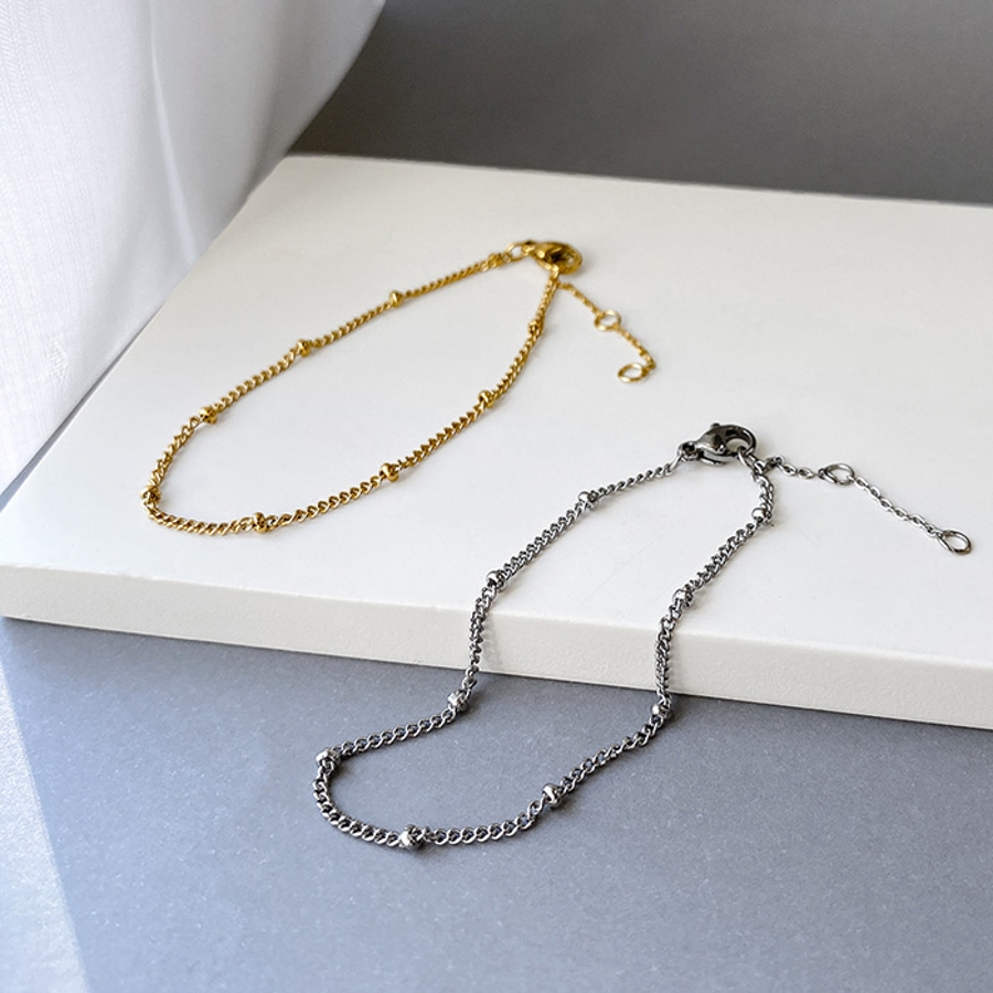 等間隔に丸玉メタルを施したデザインが特徴のスリムチェーンブレスレット♪